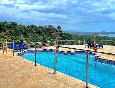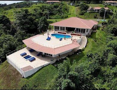 Villa Papagayo, Morrillo Pacific Heights, Veraguas, Panama. Premier luxury estate with 180° Pacific Ocean and sunset views. Titled property (4693.76 m² / +1 acre). Total construction: 1250 m² (13,454 sq.ft). The Estate: Features a massive Main House and three fully independent Luxury Guest Suite Apartments (1-bedroom, full kitchen/bath), ideal for high-yield rental income. Main House Luxury: 390.31 m² (4,200 sq.ft) enclosed, air-conditioned living space. Grand double-high entrance. Gourmet kitchen with granite and top-tier appliances. Massive covered outdoor dining (seats 20+), elevated for perfect ocean views. Large main pool with coraline deck. Primary Suite (45.5 m²) with custom mahogany closet, luxury tub. Large enclosed automatic garage. Income Suites: Share a dedicated plunge pool and deck overlooking the ocean. Location: Gated community with security. Excellent paved road access from Santiago. Close to Mata Oscura (turtle nesting) and Morrillo Beach (surfing). Low HOA ($105/mo). Property Tax Exonerated. Fiber Optic Internet, backup Generac generator, communal spring water ($10/mo). Contact: Jon Hanna WhatsApp: +507 6672-0089 Email: jon.hanna@kwpanama.comFeatures