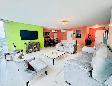 Furnished Apartment for Rent in Costa del Este - PH Costa View: Apartment located in PH Costa View, ideal for those seeking a quiet life in one of Panama's best areas, Costa del Este. It features: 148m2, 3 bedrooms, 2 bathrooms, maid's quarters, 2 parking spaces, and is fully furnished. The building offers excellent social areas: a pool, gym, event room, park, and children's area, perfect for the whole family to enjoy. Rental price: $1,700 per month. Contact us for more information or to schedule a showing!Features