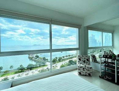 This 95 m2 apartment features a spacious layout and beautiful ocean views from the living room, dining room, kitchen, and master bedroom. Centrally located in the most exclusive area of Avenida Balboa, just steps from restaurants, cafes, a pharmacy, banks, and more.Features