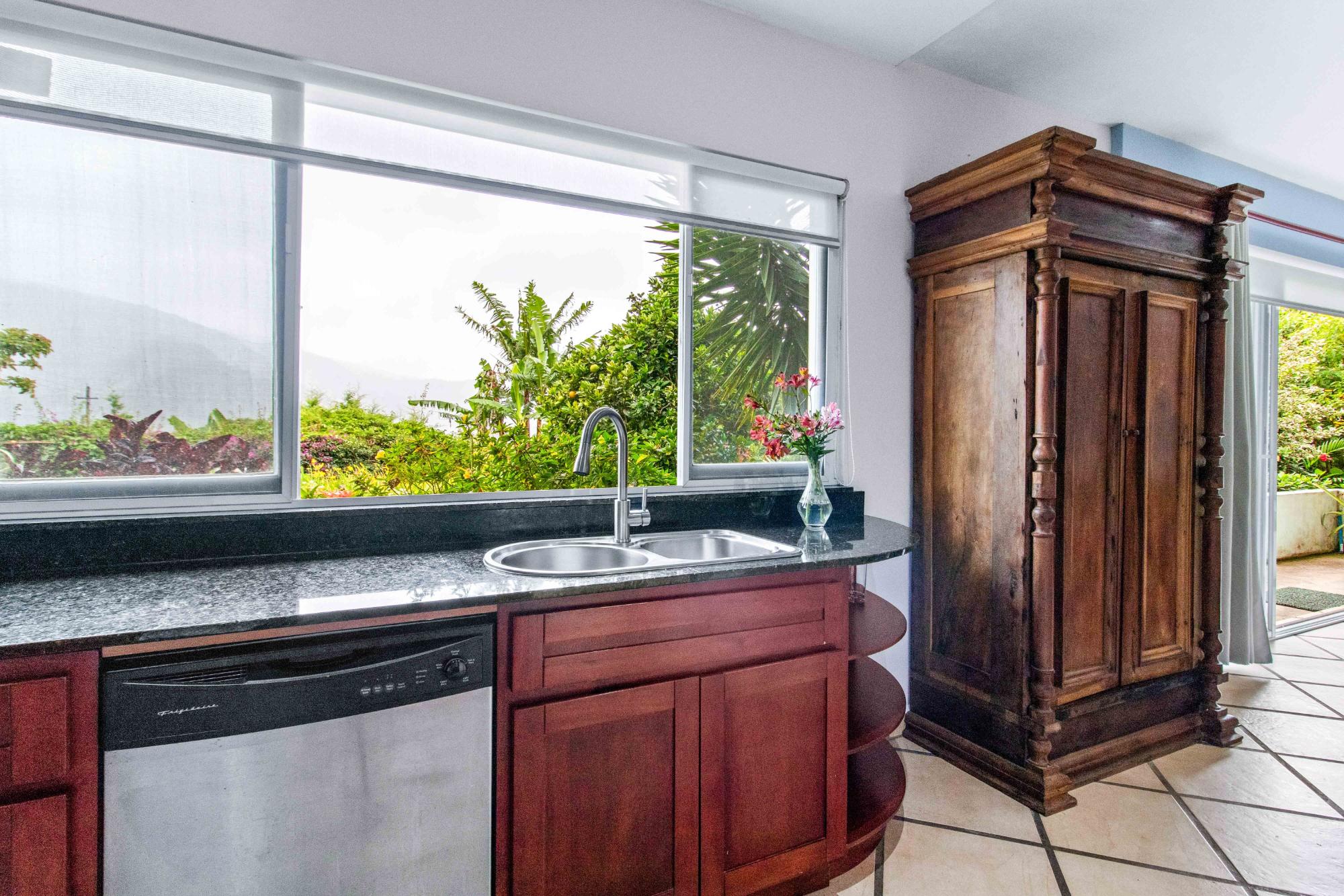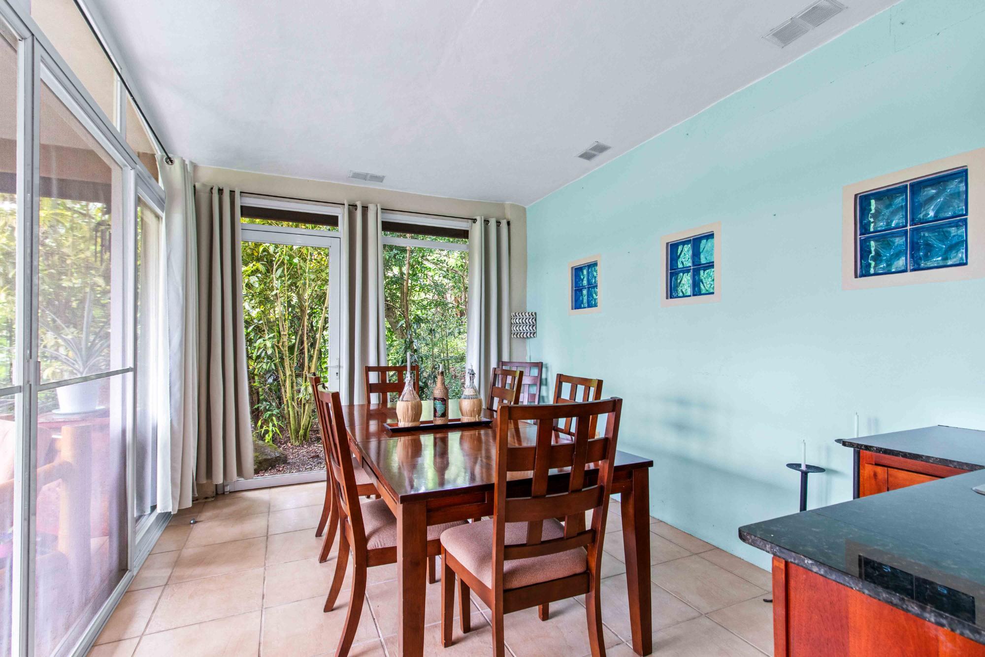 Furnished ground-floor condo in Alto Lino, Boquete, located in Monte Verde, a private six-unit residence. The home offers 97 m² (1,044 sq ft) of living space within a total of 162 m² (1,744 sq ft) of covered area, including a separate dining/entertainment room and covered parking for two cars. The condo features 2 bedrooms, each with an en-suite bathroom, a bright living area with garden and mountain views, a functional kitchen, and a covered terrace ideal for relaxing or entertaining. The separate dining room can also be used as a home office, and the unit is fully furnished and move-in ready. Built in 2012, the property includes a 7-year tax exemption and an HOA fee of $125 per month. Located in the sought-after Alto Lino area, known for its cooler climate, greenery, and peaceful setting, while still close to downtown Boquete. From the kitchen window, enjoy stunning full double rainbows during the rainbow season, and let the soothing sounds of birdsong accompany your morning coffee on the patio. The separate dining room, with its cozy ambiance, comfortably hosts dinner parties for up to eight guests, featuring lovely views that transition into a warm and intimate setting after dark. For those who work from home, the dining area can easily be transformed into a functional office space, while the sofa bed makes hosting guests a breeze. The condo's covered terrace offers a private, quiet space perfect for barbecues, morning coffee, or simply unwinding with garden views. Enjoy sunrise and moonrise from the Jaramillo mountains through the front windows, with breathtaking full moons as a highlight.Features