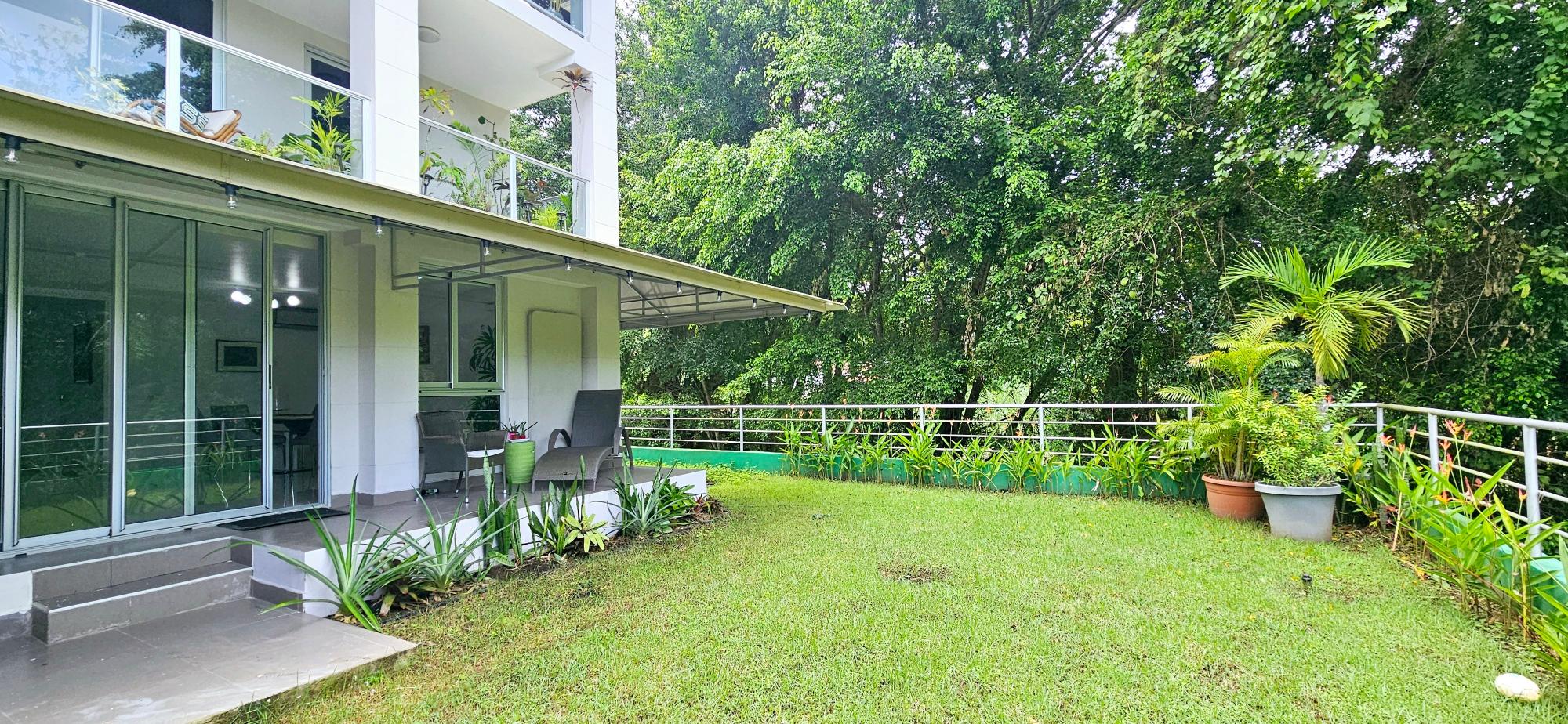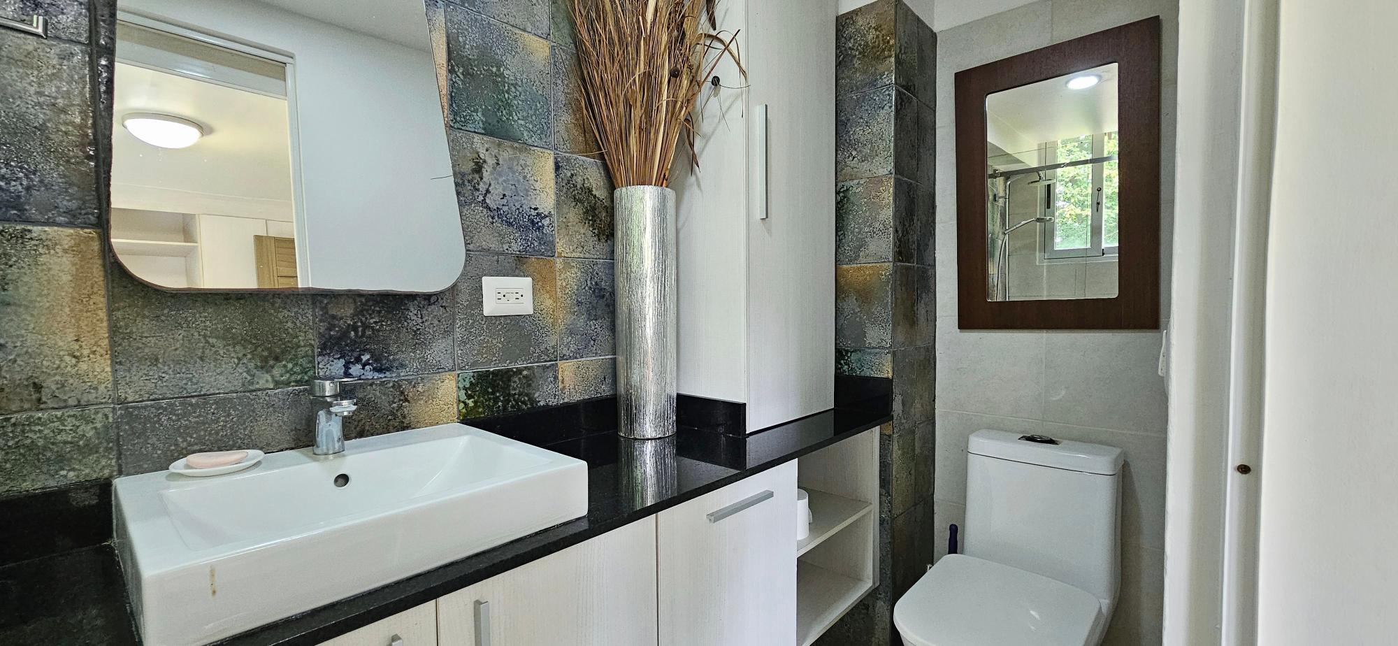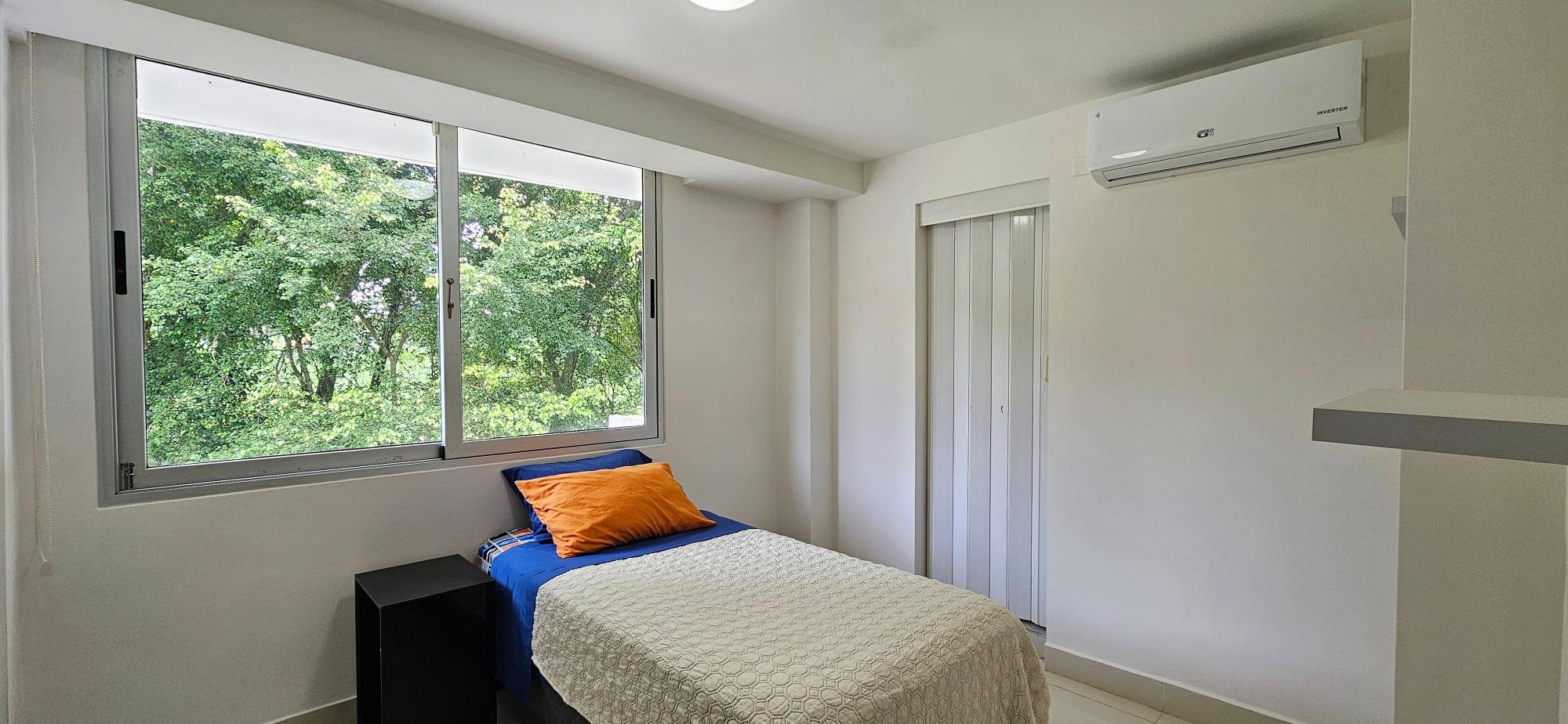 Modern ground-floor apartment with a bright living and dining room connected to a spectacular terrace surrounded by forest and mountain views, ideal for those who love nature and spending time outdoors. A custom-built open kitchen, equipped with appliances and granite finishes, 3 spacious bedrooms (each with an en-suite bathroom, the master bedroom and a secondary bedroom with a walk-in closet), a fourth bedroom with an external bathroom (or for guests or staff use), all with inverter split air conditioning, a laundry area, 3 covered parking spaces, and a good-sized storage room.Features