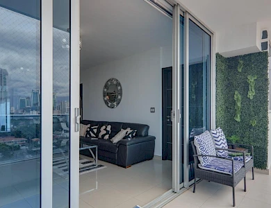 Step into this remodeled one-bedroom condo and enjoy open spaces with city views from every room. Renovation updates include new wooden floors and a modern open kitchen equipped with brand-new appliances, a dishwasher, and ample cabinet space. Panasonic inverter air conditioners keep every room cool and energy efficient. The open living and dining area offers flexibility, perfect for relaxing, entertaining, or setting up a small office corner for remote work. The large balcony is the perfect spot to unwind and enjoy the skyline. The bedroom includes an ensuite bathroom and a walk-in closet, while the laundry area next to the kitchen makes daily chores easier. This condo is ideal for individuals or couples who want great views, a prime location, and access to excellent building amenities. Harmony Tower Harmony Tower is a family-friendly building on Calle 73 in San Francisco, one of Panama City’s most desirable areas. Amenities include: Two swimming pools Fully equipped gym Party room Children’s playground BBQ area Basketball court Soccer court The building is also undergoing upgrades. The lobby renovation, which includes new furniture, is scheduled for December, and the façade will be repainted next year. Monthly maintenance fees remain low compared to similar buildings in the area. San Francisco San Francisco is one of Panama City’s most desirable and convenient neighborhoods. It’s a lively urban area with everything close by. Vía Israel and Corredor Sur are just minutes away, giving you quick access to Tocumen International Airport in about 20 minutes. You’ll find Parque Omar, Multiplaza Mall, supermarkets, cafés, and a local fruitFeatures