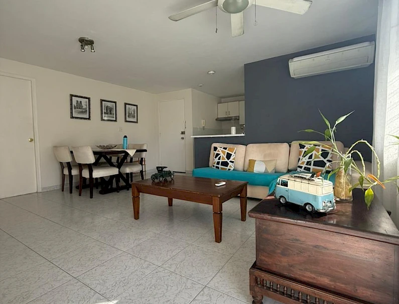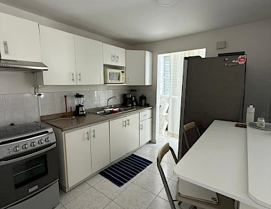 Ready-to-move-in, cozy, comfortable, with good ventilation and a small balcony. Basic furniture for comodity. A/C TV 2 Beds, Laundry Machine, Stove. No social area, security 24/7 - Close to Parque Omar, Supermarkets, Bank, Restaurants, Stores, Mall.Features