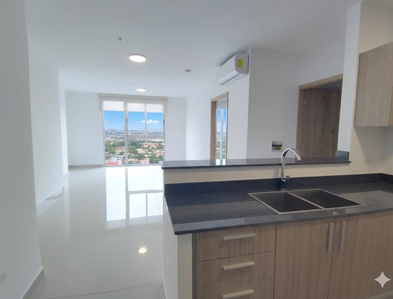 New apartment located at the highest point of Hato Pintado in the city center on a cul-de-sac, a few meters from 12 de Octubre Avenue, the Metro station, and numerous businesses such as Arrocha, Smart Fit, El Rey Supermarket, and Do It Center. The project features visitor parking, a luxurious lobby, a gym, a party room, a children's play area, a pet park, and a beautiful pool with city views. The apartment features an open kitchen, living/dining room, high ceilings, laundry room, two bedrooms, two full bathrooms, light fixtures, roller shades, appliances, Panasonic inverter air conditioners, 1 parking space (Level E300 No 4) and a storage unit (Level E300 - No. 307). It is ready for immediate occupancy with its electricity installed.Features