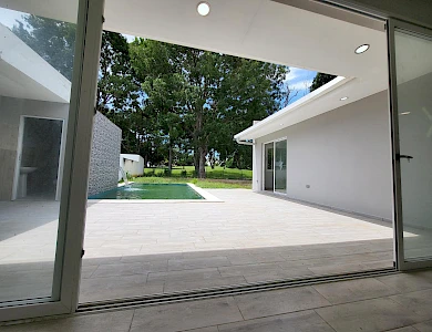 We operate from Coronado and specialize in Golf Club Homes and Beach Properties in the area. We provide payment options and mortgage loans. We offer several options. Our mission is to meet your expectations. New Home for Sale in Coronado, 370k, on a quiet, safe cul-de-sac with direct access to the golf course. Fully fenced, 320 m2 of construction, 151 m2 enclosed, and 170 m2 open with a pool, parking, barbecue grills, and 3 additional parking spaces with 2 covered spaces. Main door is 190 cm wide by 240 cm high, pivoting with panoramic windows. With 3 bedrooms and 3 bathrooms, one of which is located by the pool. Master bedroom with 2 closets; all closet and door work is cedar. The ensuite bathrooms feature modern hardware and tempered glass. The living room, dining room, and modern, open Italian-designed kitchen feature quartz countertops. The fully equipped kitchen includes a built-in stove and oven, extractor hood, double-door refrigerator, and high-end washer and dryer. Dishwasher and light fixtures are installed both inside and outside. The pool features a wall-lined waterfall with a large built-in splash pool. The bathroom in the pool area features an outdoor shower and covered barbecue area. Designed and built with the finest construction techniques, such as slab-on-ground reinforced concrete, and many others.Features