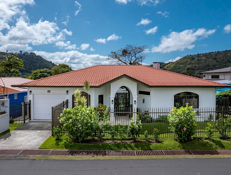 Nestled along the river in the heart of downtown Boquete, this pristine ranch-style home offers exceptional comfort, walkability, and low-maintenance living. Just steps from the new town park and moments from cafés, dining, shops, and services, the location is ideal for anyone seeking convenience without compromise. The bright, thoughtfully designed layout includes three bedrooms, two full bathrooms, and a one-car garage. Recent upgrades elevate the home throughout, including freshly painted interiors, beautifully updated kitchen and bathroom cabinetry, new quartz countertops, modernized master shower, under-cabinet kitchen lighting, recessed lighting, new ceiling fans, and tasteful motorized custom blinds. The home is sold fully furnished with newer appliances, a new stove, and includes a gas fireplace, kitchen island with bar sink, walk-in closet in the primary suite, and a Murphy bed in the guest room. A full inverter/backup battery system, five externally draining dehumidifiers, two on-demand hot water heaters, screens on all windows, and two labeled electrical panels add comfort and reliability. The fully fenced yard features attractive landscaping and built-in security features, while the small, easy-care lot offers effortless maintenance. Impeccably maintained and move-in ready, this riverfront property presents a rare opportunity to enjoy modern, convenient living in one of Boquete’s most desirable downtown locations.Features