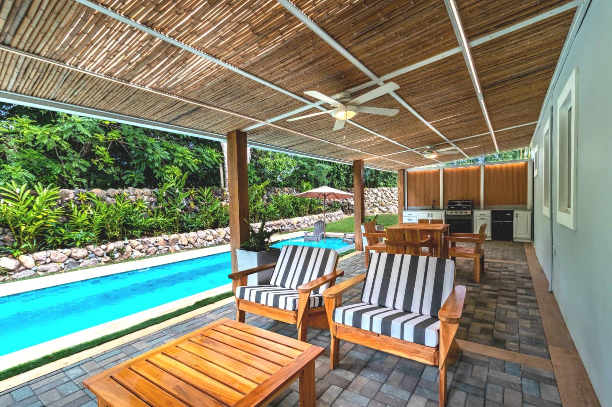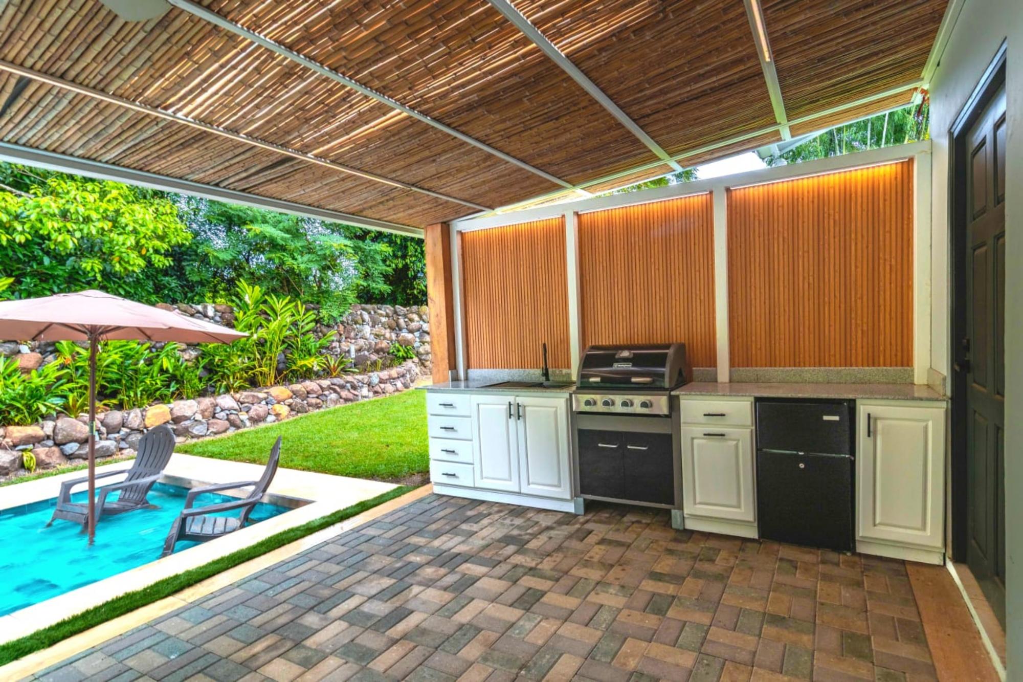 This beautiful 3-bedroom, 2-bathroom modern cottage-style house is designed for both comfort and entertaining. The home features a warm, inviting aesthetic with a perfect blend of rustic charm and sleek, contemporary design. The modern kitchen with stainless steel kitchen sink, marble countertops, making it a dream for both everyday living and cooking. The master bedroom is a tranquil retreat with an en-suite bath, featuring a luxurious walk-in shower and modern fixtures. The two additional bedrooms are versatile ideal for guests or a home office and share a stylish, well-appointed second bathroom. Step into your private backyard oasis featuring a saltwater pool, perfect for refreshing dips and low-maintenance enjoyment. Adjacent to the pool, a spacious terrace invites you to unwind or entertain in style, complete with a built-in outdoor kitchenette with bbq ideal for hosting family gatherings or summer cookouts. Surrounded by lush landscaping, this seamless indoor-outdoor space combines comfort, functionality, and a touch of luxury. Important note: Pool under construction Nestled in a peaceful and private expat gated community, this small enclave features just three beautifully designed homes, offering a sense of exclusivity and tranquility. Located in Dolega, Chiriquí, the community provides a serene rural atmosphere while still being conveniently close to a variety of local amenities.Features