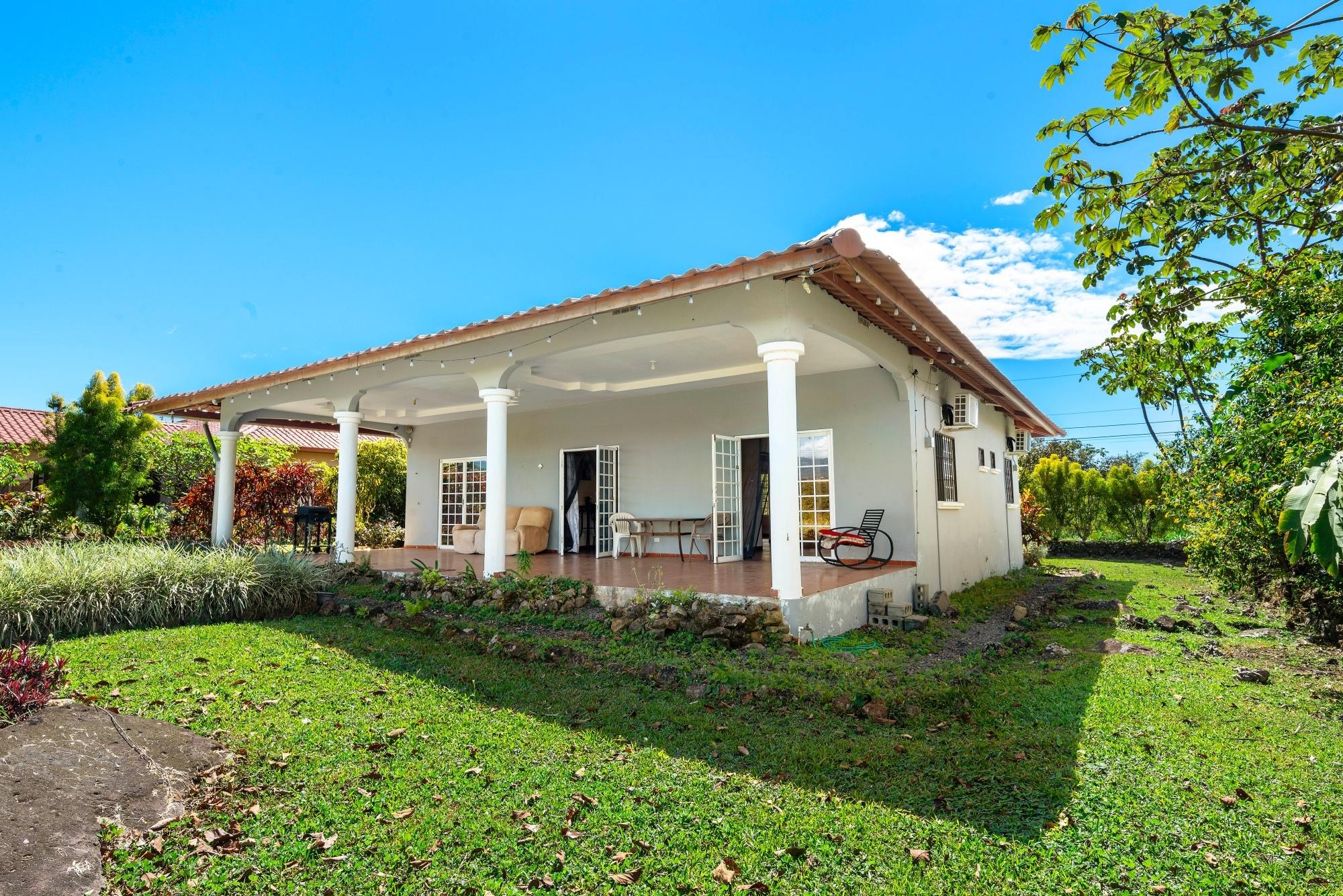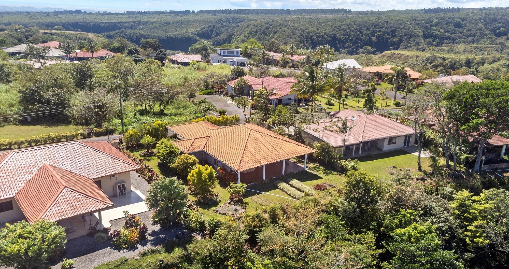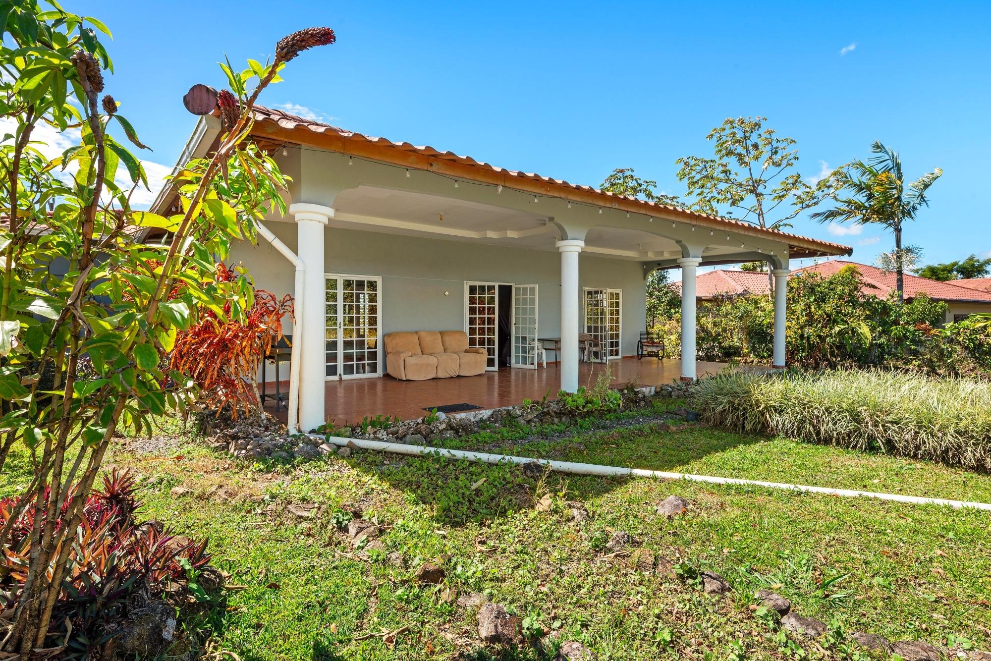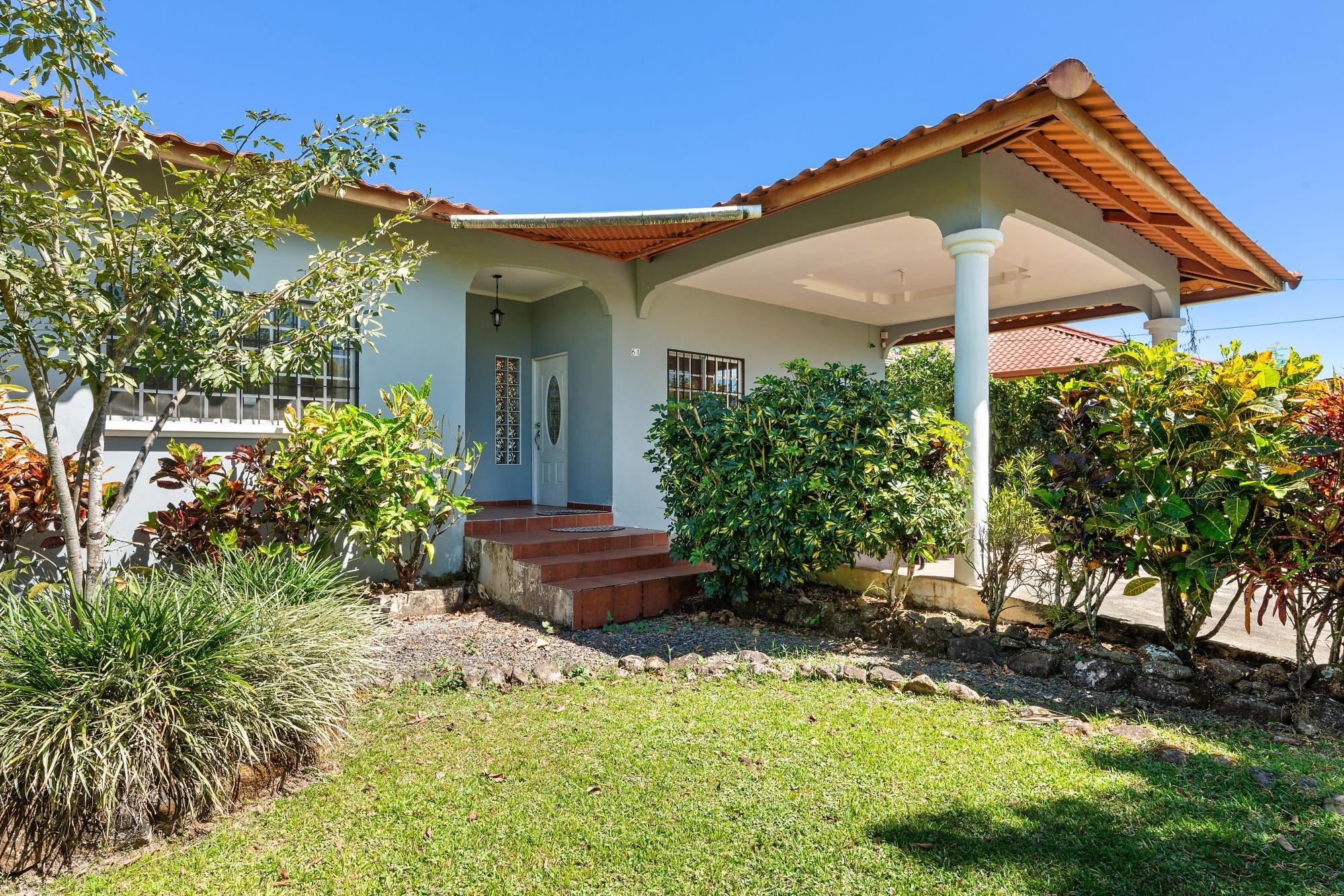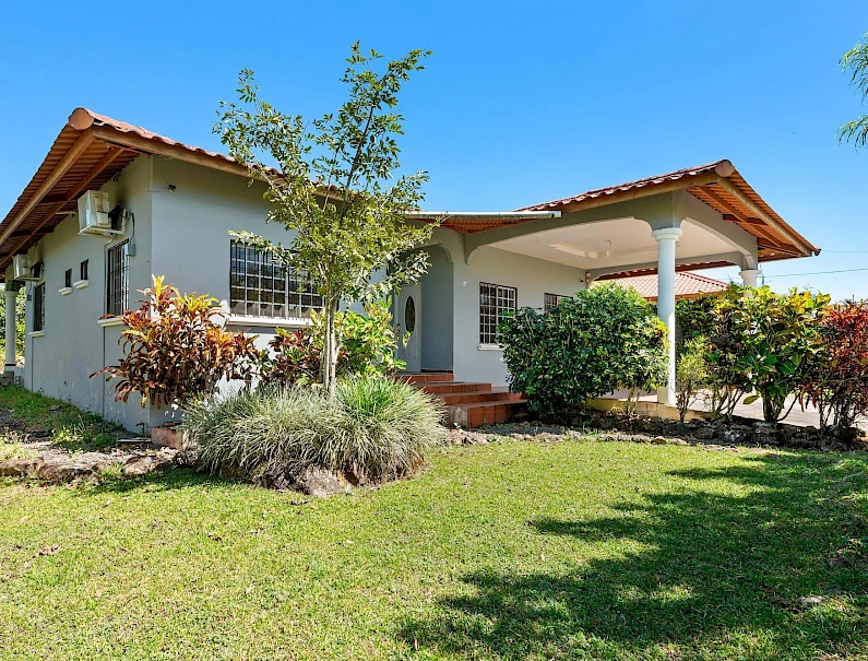 This neat and well-maintained home is located in the established residential neighborhood of Brisas Boqueteñas, approximately 15 minutes from downtown Boquete. Set on a generous 800 m² lot and positioned directly on the canyon, the property offers beautiful canyon and mountain views in a peaceful setting without feeling remote. The home is practical, comfortable, and easy to maintain — ideal for a couple, family, or anyone seeking a relaxed lifestyle close to town. The property offers three bedrooms with built-in wardrobes, two bedrooms with ensuite bathrooms, and independent air conditioning units in each bedroom. The main bedroom and second bedroom have direct access to the covered terrace. Home Features The house has a simple open layout that allows for good natural light and airflow throughout the living areas. • Open-plan living and dining area • Functional kitchen with wood cabinetry and durable countertops • Breakfast nook for casual meals or morning coffee • Laundry room conveniently located next to the kitchen with additional storage • Sliding doors leading to a covered terrace overlooking the canyon The covered terrace is one of the highlights of the home, offering open canyon and mountain views that can be enjoyed year-round. • Ideal for relaxing, entertaining, or enjoying the scenery • Quiet surroundings with minimal traffic • A great balance between nature and residential living Additional Details • Semi-furnished (major appliances included) • Covered carport • On-site water reserve tank • Pet-friendly yard space • Solid construction suited to Boquete’s mountain climateFeatures