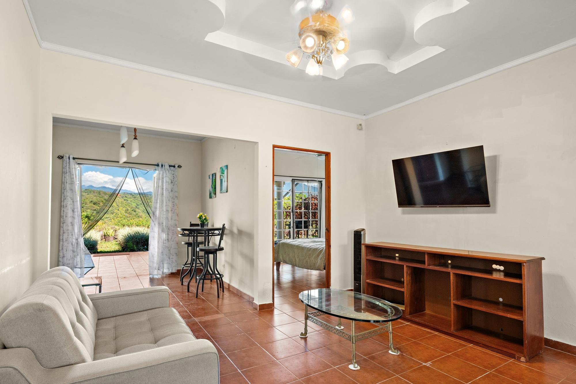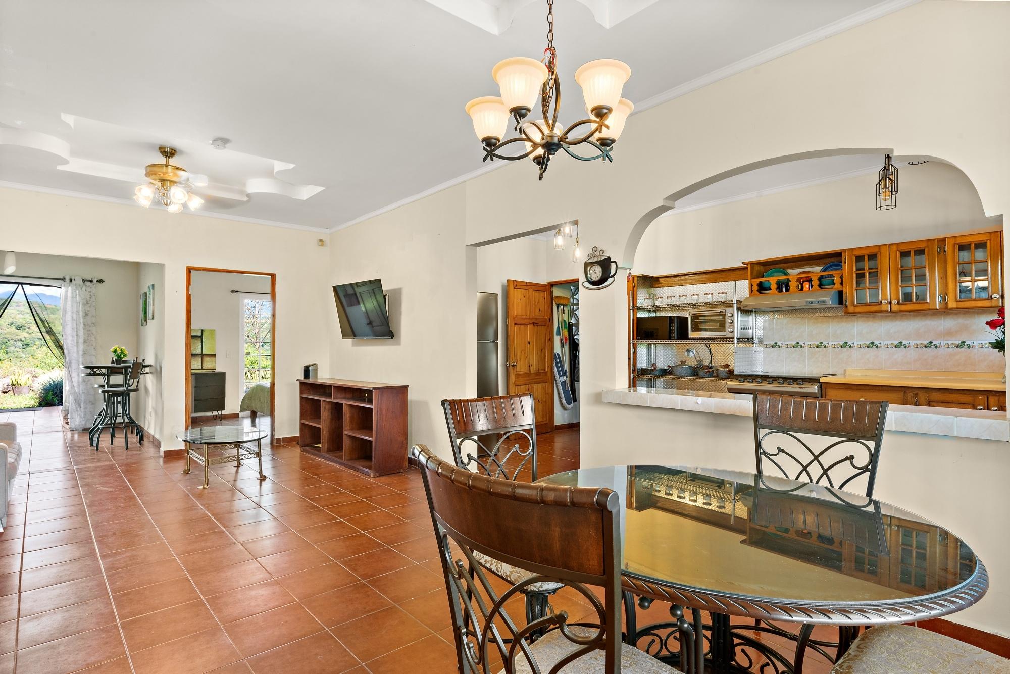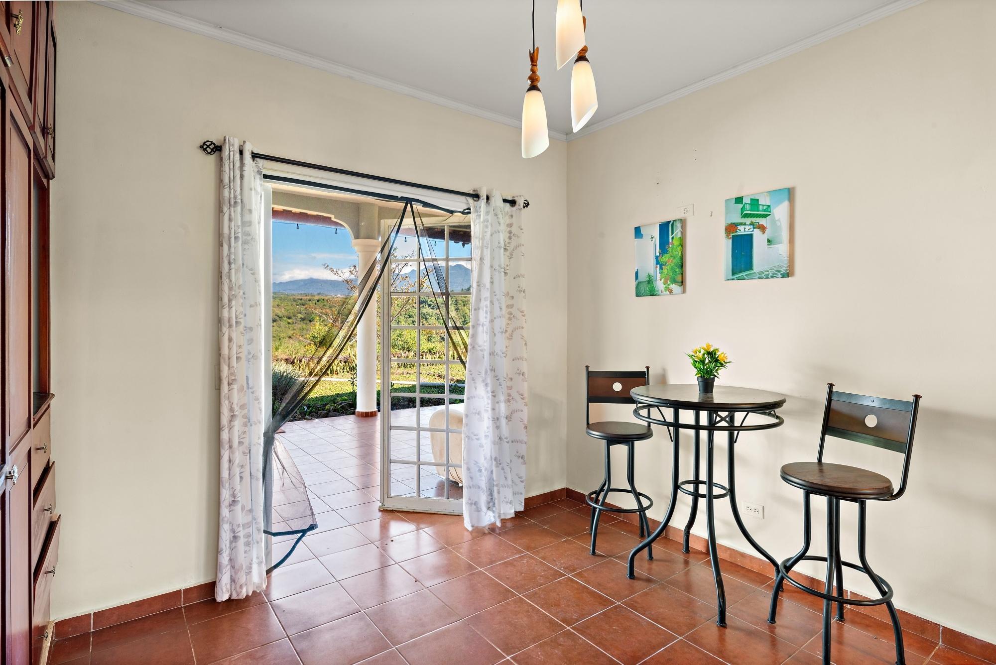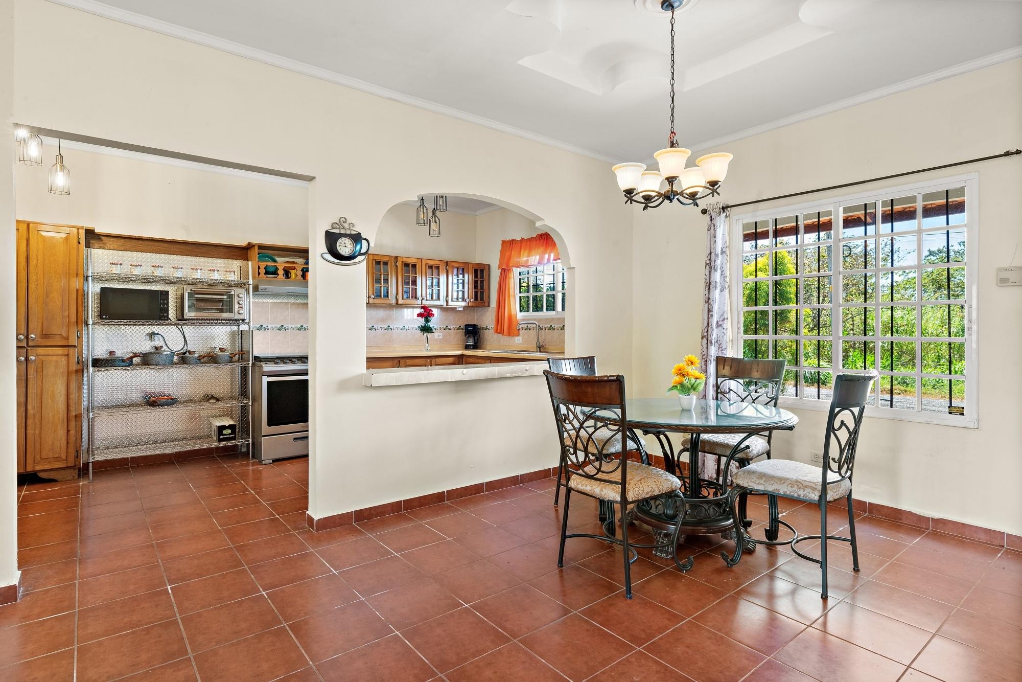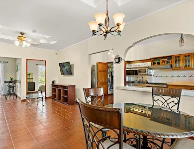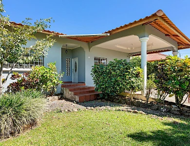 This neat and well-maintained home is located in the established residential neighborhood of Brisas Boqueteñas, approximately 15 minutes from downtown Boquete. Set on a generous 800 m² lot and positioned directly on the canyon, the property offers beautiful canyon and mountain views in a peaceful setting without feeling remote. The home is practical, comfortable, and easy to maintain — ideal for a couple, family, or anyone seeking a relaxed lifestyle close to town. The property offers three bedrooms with built-in wardrobes, two bedrooms with ensuite bathrooms, and independent air conditioning units in each bedroom. The main bedroom and second bedroom have direct access to the covered terrace. Home Features The house has a simple open layout that allows for good natural light and airflow throughout the living areas. • Open-plan living and dining area • Functional kitchen with wood cabinetry and durable countertops • Breakfast nook for casual meals or morning coffee • Laundry room conveniently located next to the kitchen with additional storage • Sliding doors leading to a covered terrace overlooking the canyon The covered terrace is one of the highlights of the home, offering open canyon and mountain views that can be enjoyed year-round. • Ideal for relaxing, entertaining, or enjoying the scenery • Quiet surroundings with minimal traffic • A great balance between nature and residential living Additional Details • Semi-furnished (major appliances included) • Covered carport • On-site water reserve tank • Pet-friendly yard space • Solid construction suited to Boquete’s mountain climateFeatures