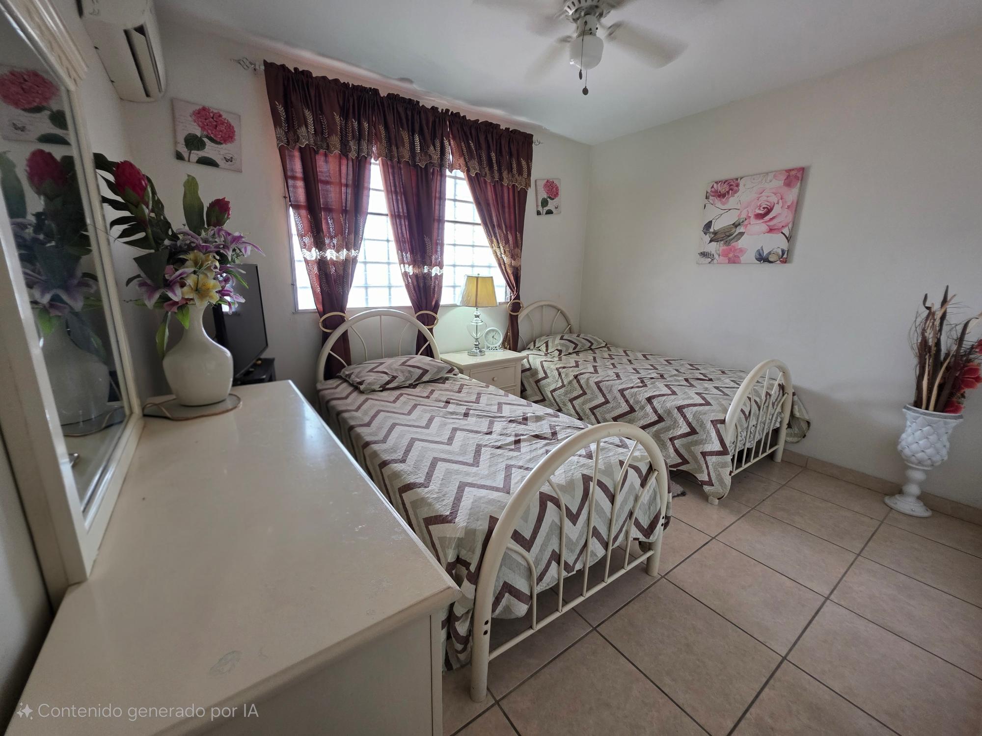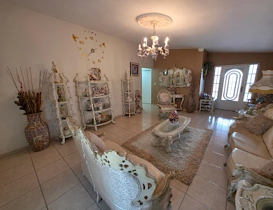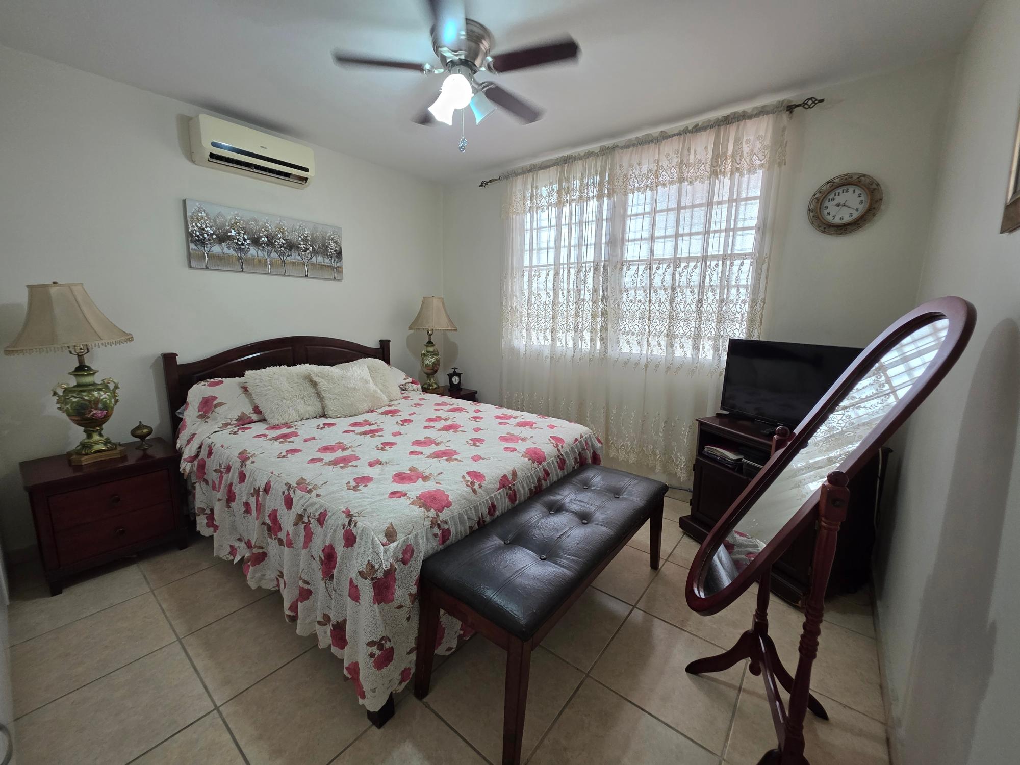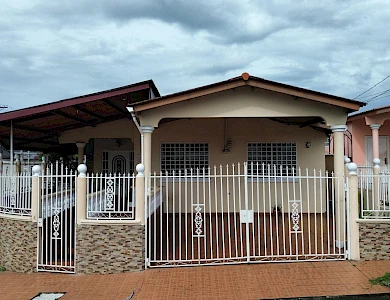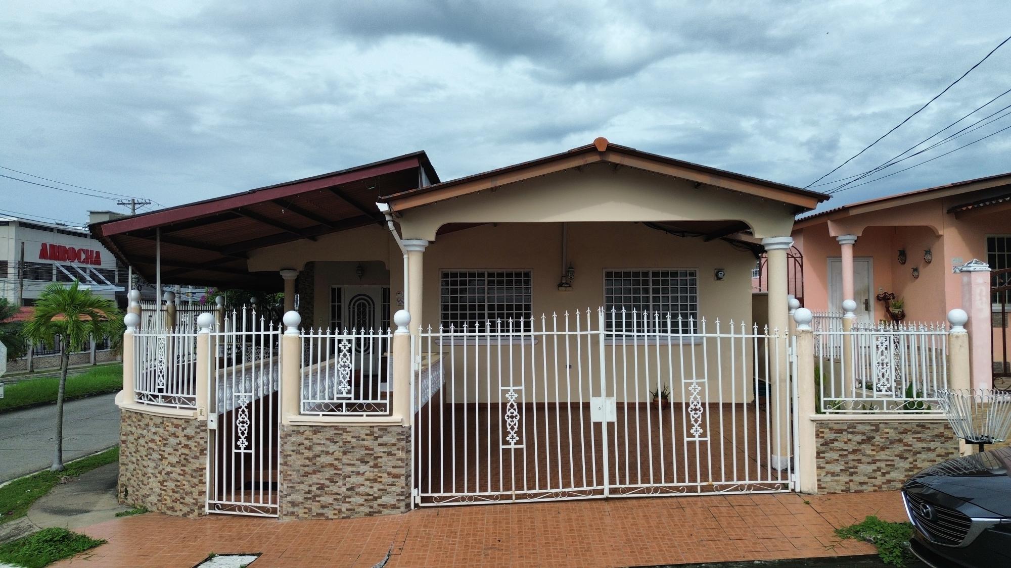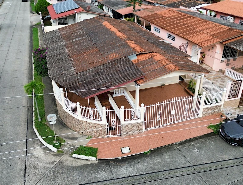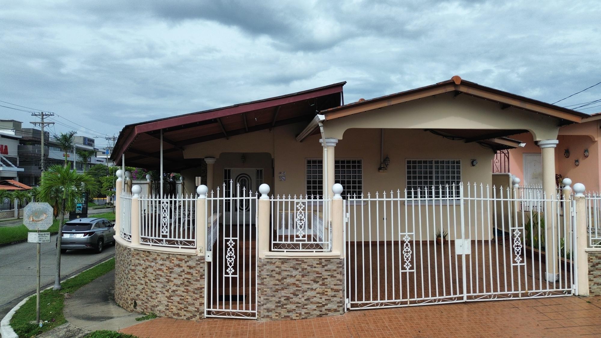 This house for sale is located on the main road of Brisas del Golf, a well-established residential area in Panama City, known for its sense of community and family-oriented environment. The location provides direct access to shopping centers, schools, pharmacies, supermarkets, and restaurants. The property sits on a 319.85 m² lot. It is a corner house with a perimeter wall and gates, designed for both privacy and accessibility. The layout includes: 3 bedrooms 2 bathrooms Living and dining area Kitchen with cabinet storage and granite countertops Laundry area Portal at the front of the house Back terrace and patio with green area Side walkways Covered parking for 2 vehicles The living and dining areas are spacious, with tiled floors and natural light, creating a welcoming environment. The kitchen includes modern appliances, white cabinetry, and granite counters, along with a breakfast space. Bedrooms are well-distributed; the main bedroom features an en-suite bathroom and air conditioning, while the secondary rooms provide space for family members or guests. The front portal provides a welcoming entrance and space to relax. At the back, a terrace and patio area with green space offer options for gardening or outdoor use. The corner location gives the property easy access and visibility.Features