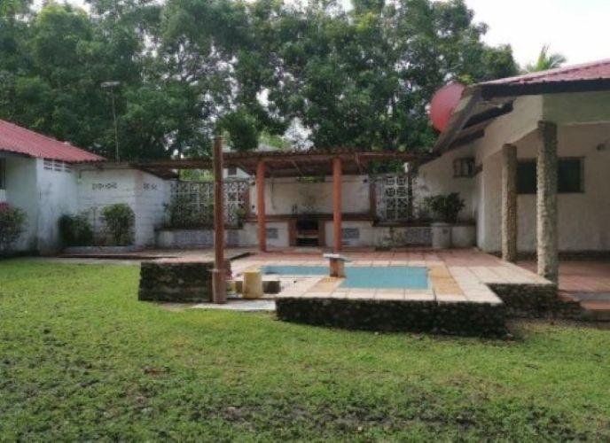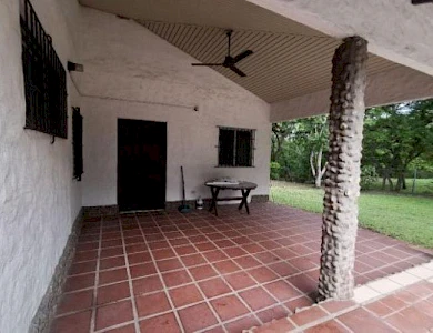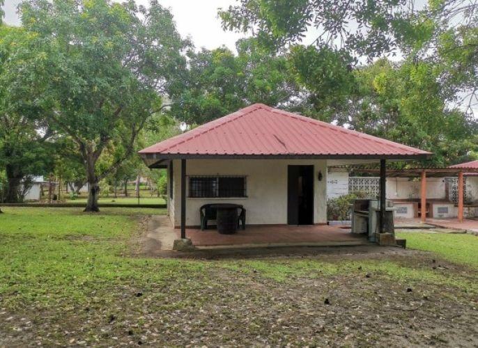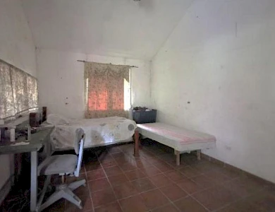 It features tile floors, a metal ceiling, and a zinc roof on a metal structure. The main house features a foyer, a full kitchen, four bedrooms (one with a window air conditioner and all with a fan), tile floors and louvered windows with aluminum frames, iron gates, and two full bathrooms with tiles (also in the kitchen). There is an iron door at the entrance and a wooden door in the bedrooms. A terrace with a clay floor and a BBQ area is located behind the BBQ area. Towards the back, past the BBQ area, there is an efficiency with a bedroom, stove, and sink; tiles in the kitchen and bathroom. Clay floor. Zinc roof. Louvered windows with lattices and bars on the outside. Storage facilities are located outside. Water is supplied by a well. Both were remodeled in 2000. The main house was enclosed for four bedrooms, and a full bathroom was added. The floors, ceilings, and ceramic tiles were added, along with the guesthouse; the roof, ceramic tiles, kitchen, pantry, and storage facilities were added.Features