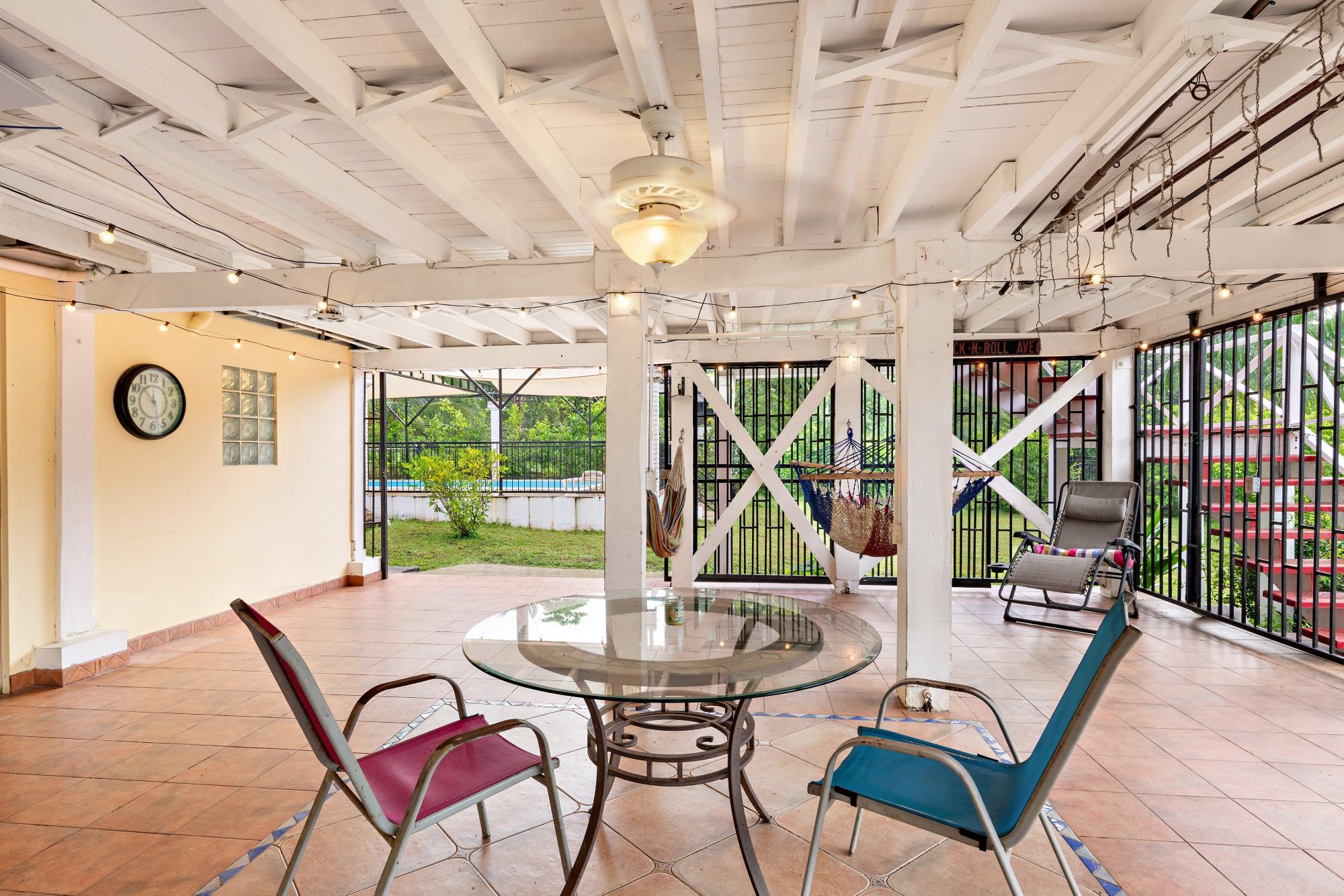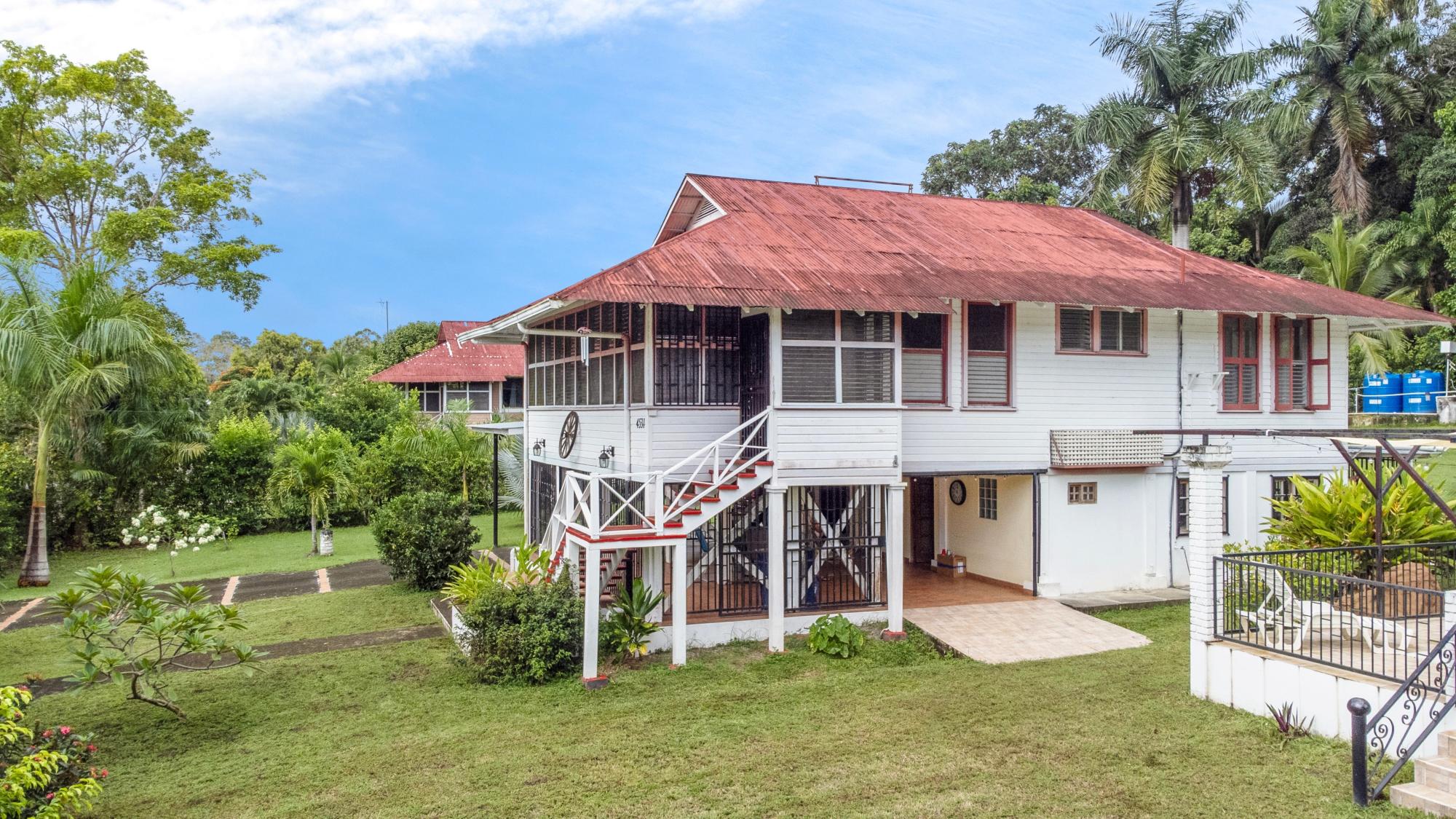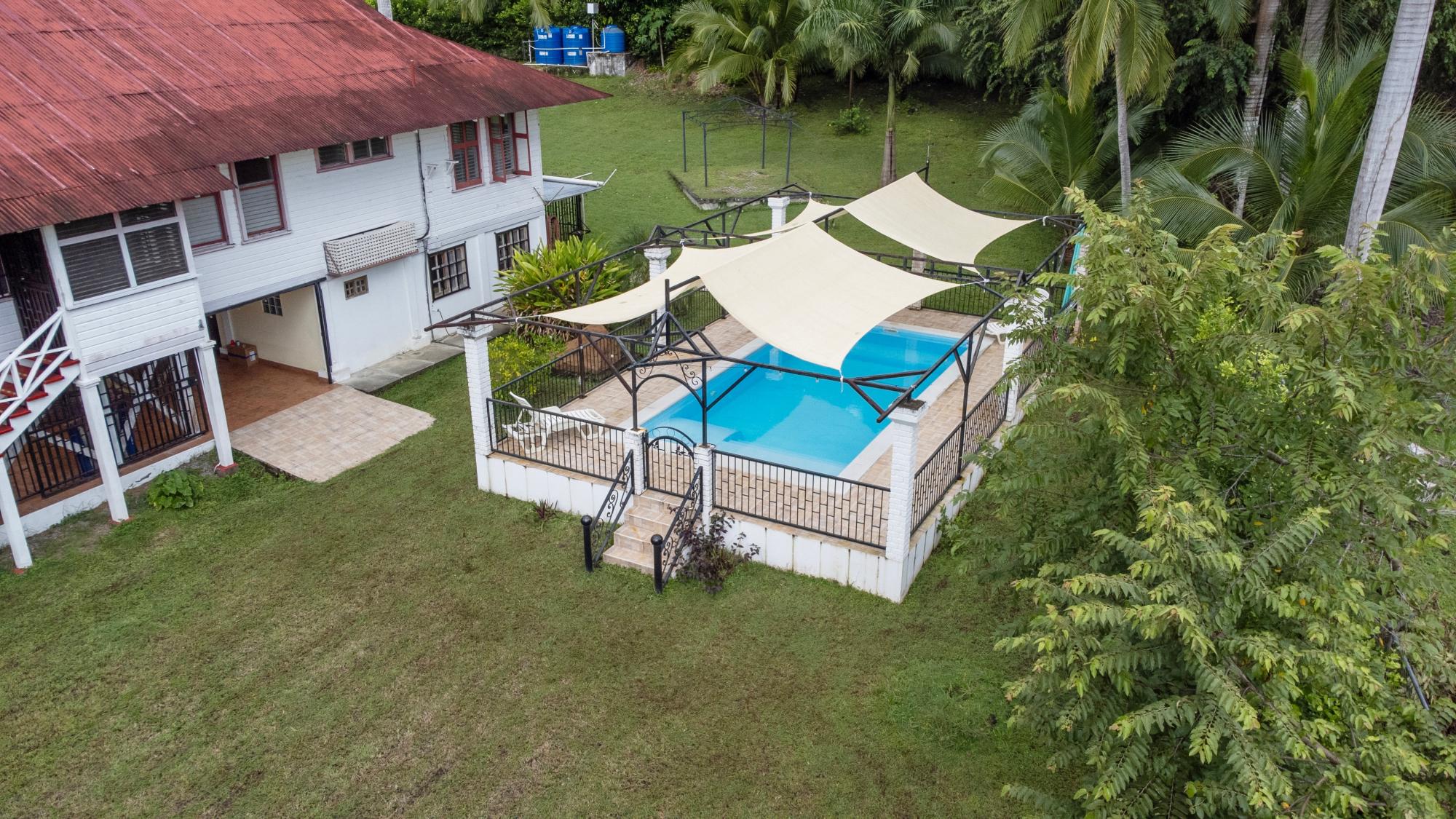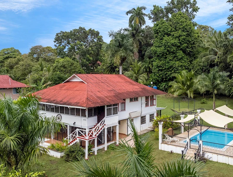 Here is a unique opportunity to own a historic Chiquita Banana Company executive home at an amazing price in the upscale neighborhood of Las Palmas, Puerto Armuelles, Panama It is only half a kilometer to downtown shopping and a 5 minute drive to the Pacific Ocean. Puerto Armuelles is a coastal town on the west end of Panama near the boarder of Costa Rica, known for its history as a banana port. It is a thriving town with new roads and a new hospital and major investment potential with a multi purpose port being built that is expected to generate thousands of jobs and attract investment in the region. This beautiful historic home sits on 2,800 m2 of titled landscaped and fenced property with electric gate entry and boasts a covered in-ground fiberglass swimming pool. It is nestled near a jungle eco reserve with many walking trails you can enjoy the sights and sounds of nature. The home has 3 bedrooms and 4 bathrooms with 908 m2 (2,980 sq ft) total covered living space. These executive homes are characterized by their classic colonial design built on silts to allow for airflow and avoid dampness with hardwood floors and ventilation for the tropics. Below the main living space is a secure Lanai great for gatherings, lavish parties or quiet afternoons swaying in a hammock amidst lush tropical surroundings. The home comes with 8 camera security system , fans throughout, a/c in the master bedroom, stainless steel appliances and 6,000 liter(1,585 gallons) ozone treated water tank system.Features