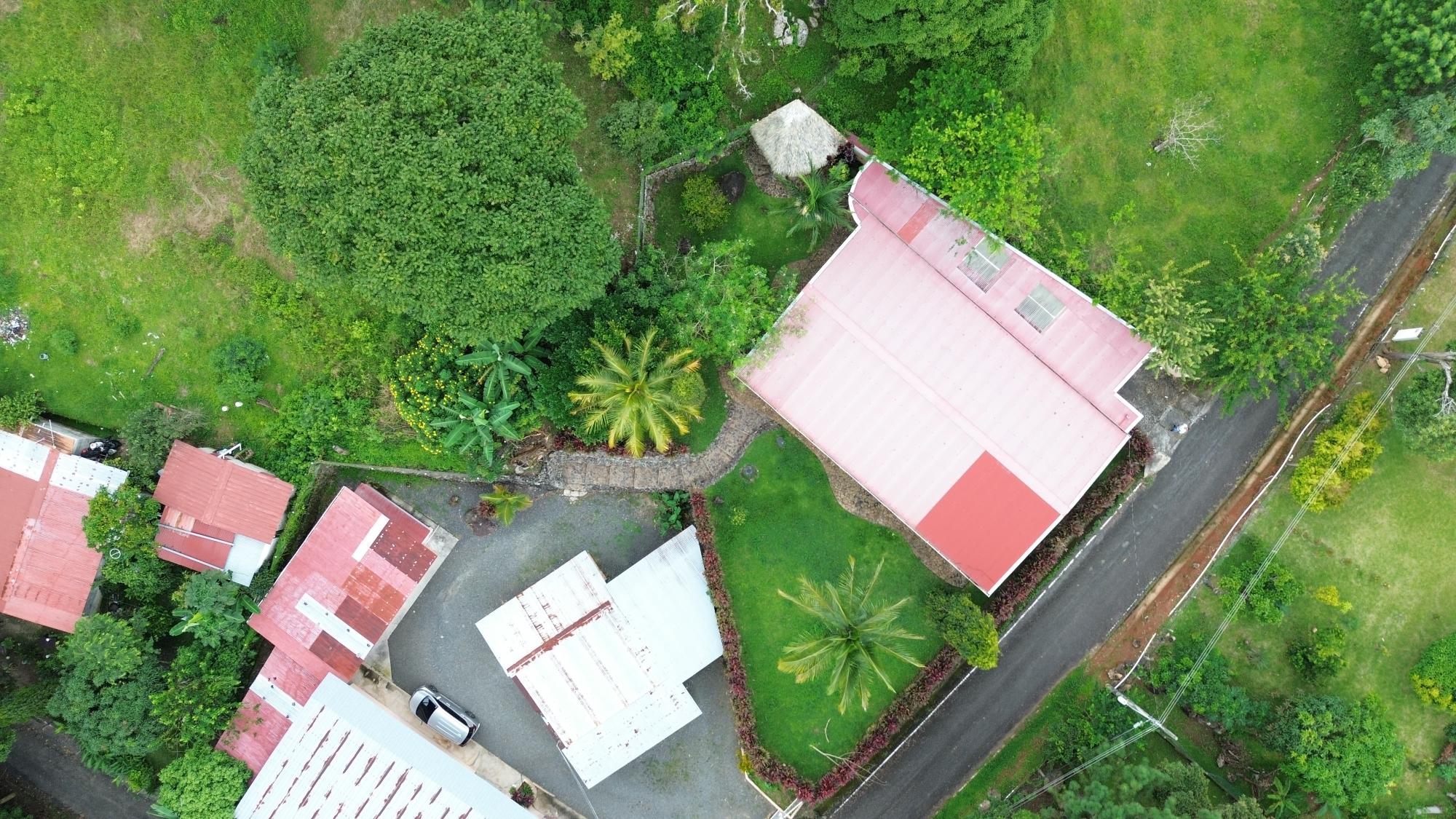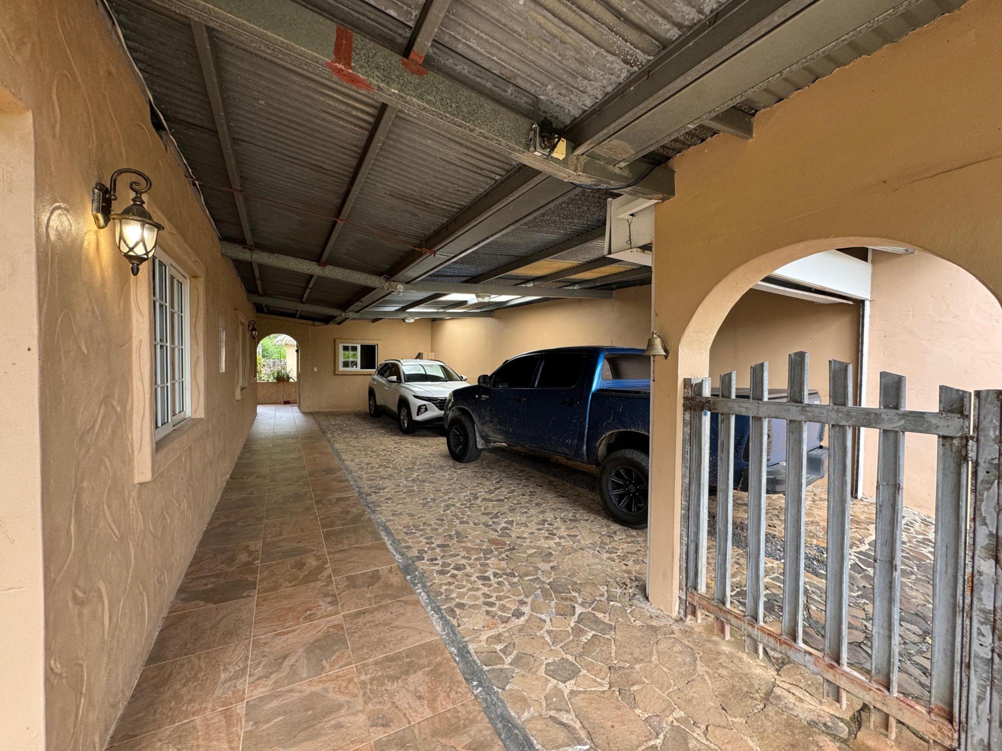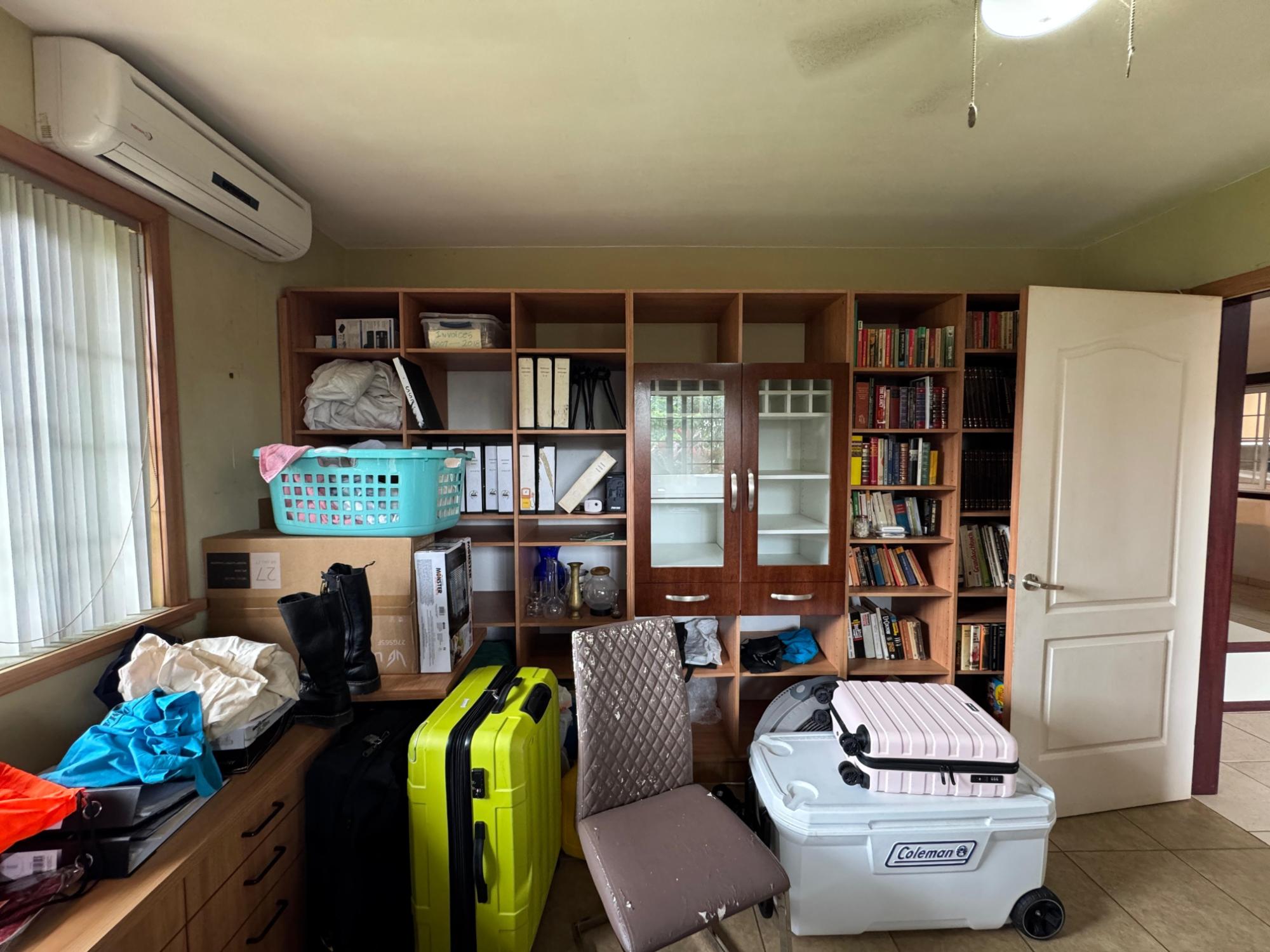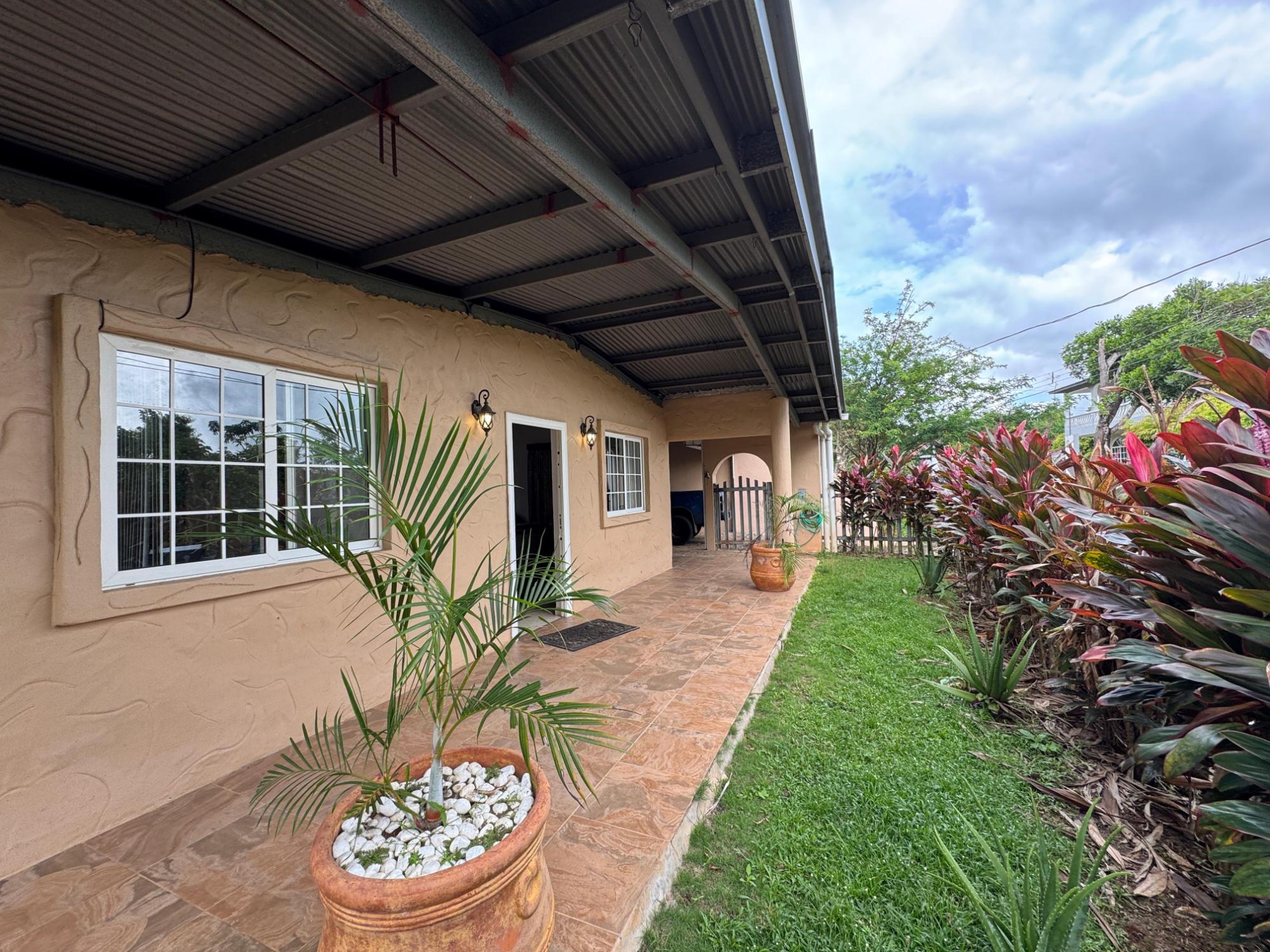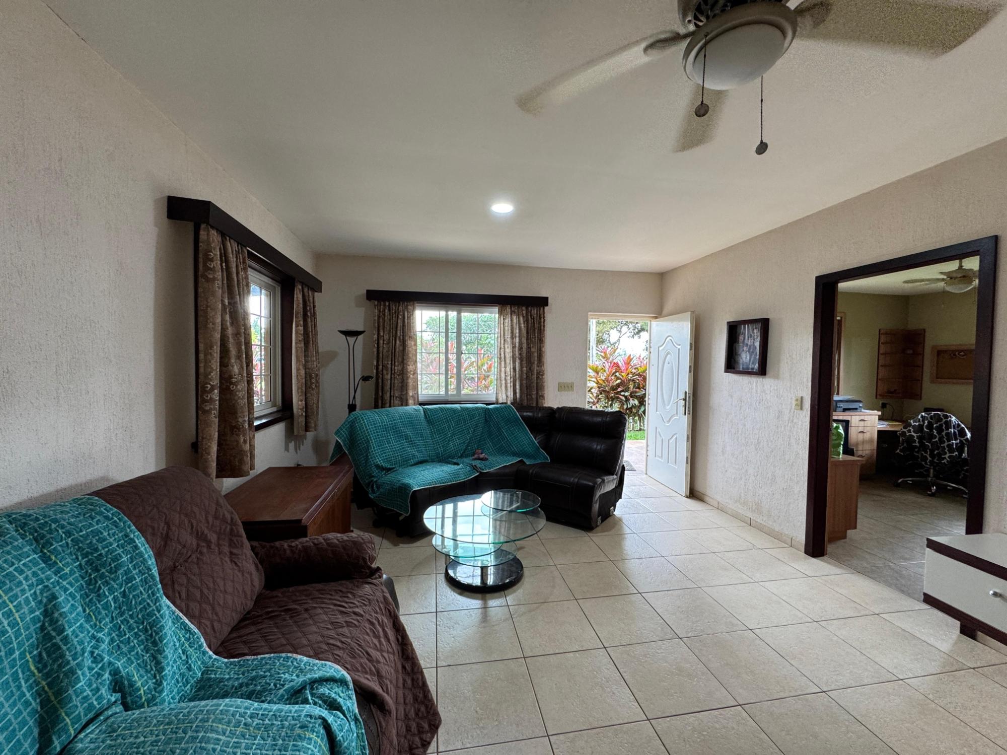 This house for sale in Sora, Chame, Panama sits about 150 meters from the Sora town park, 20 minutes from the Inter-American Highway, and 30 minutes from Coronado. The location provides quick access to supermarkets, restaurants, and medical services. The property enjoys a quiet residential atmosphere with mountain views and cooler temperatures common in this part of Panama. Property Overview The property covers 612.22 square meters of land with 307.71 square meters of construction. The layout includes the main house, a guest room, terrace, laundry area, two-car carport, and a pump room. The flat terrain allows easy access and low maintenance. The garden includes lemon and banana trees, creating a practical and pleasant outdoor space. Main House The main structure includes a living and dining room, kitchen, one bedroom, an office, and one full bathroom. The kitchen features granite countertops, a double stainless-steel sink, and modular cabinetry. PVC sliding windows bring in natural light and ventilation. Tiled floors run throughout the home, and gypsum ceilings give a clean and consistent finish. The living area connects easily to the dining and kitchen spaces, designed for comfortable everyday use. The office includes built-in furniture and large windows that open to mountain views, making it suitable for remote work or a personal project space. Guest Quarters and Additional Areas The guest room stands separate from the main house and includes a shower area with full-height wall tiles. It maintains the same solid construction quality, with PVC windows, tiled floors, and decorative wall finishes.Features