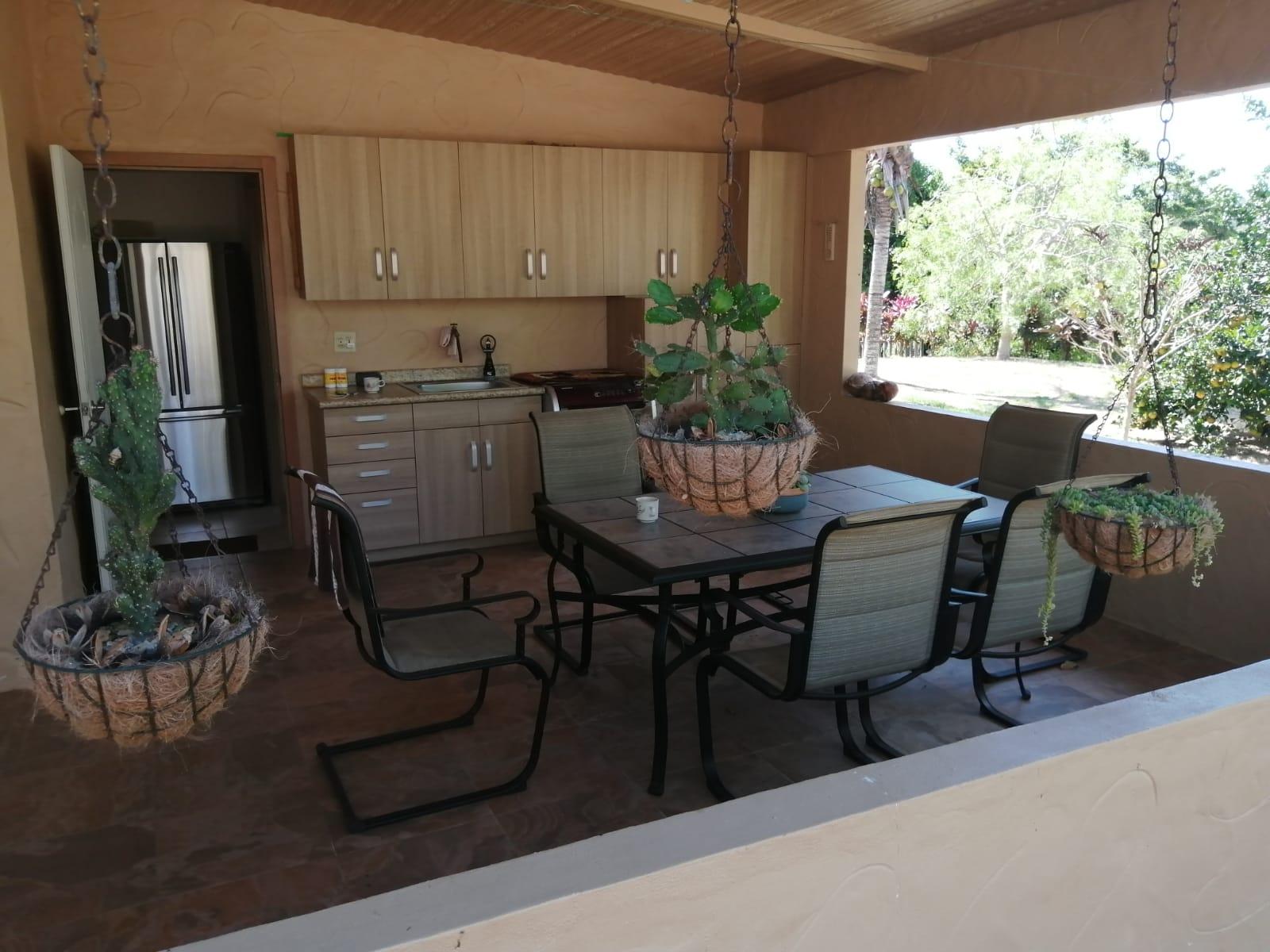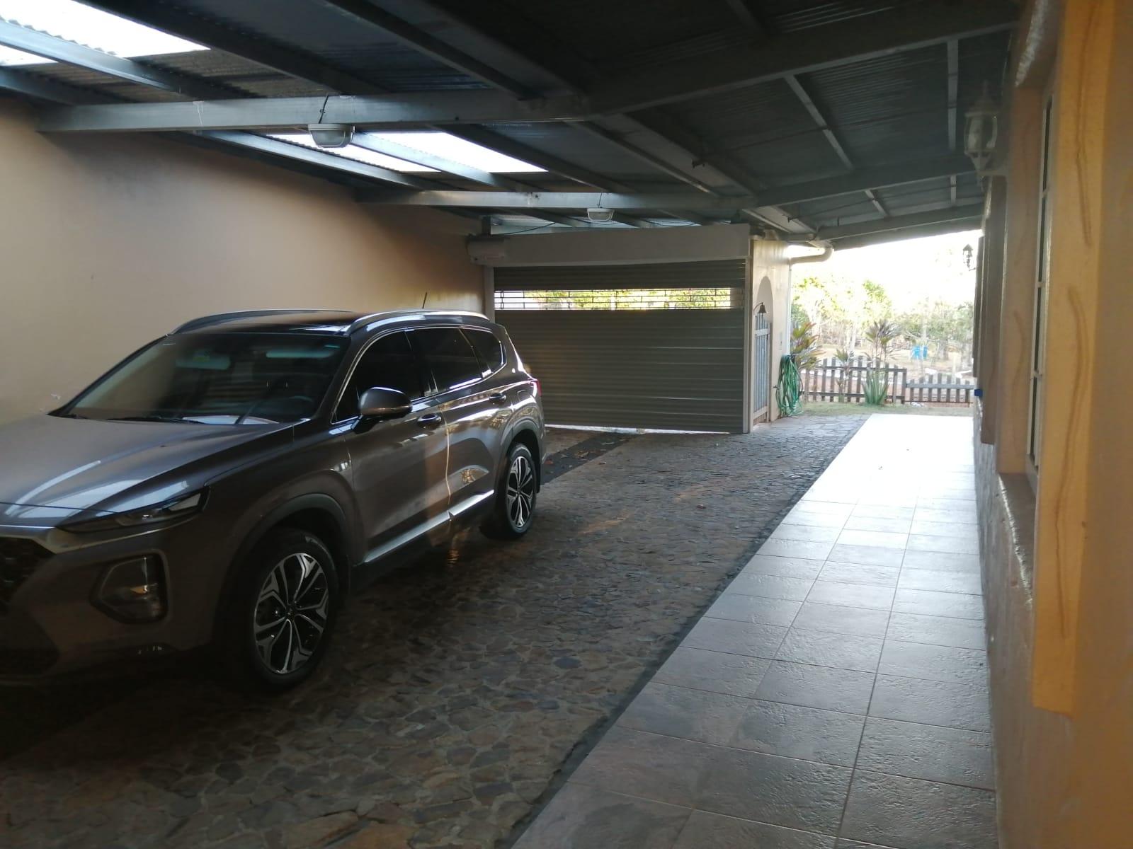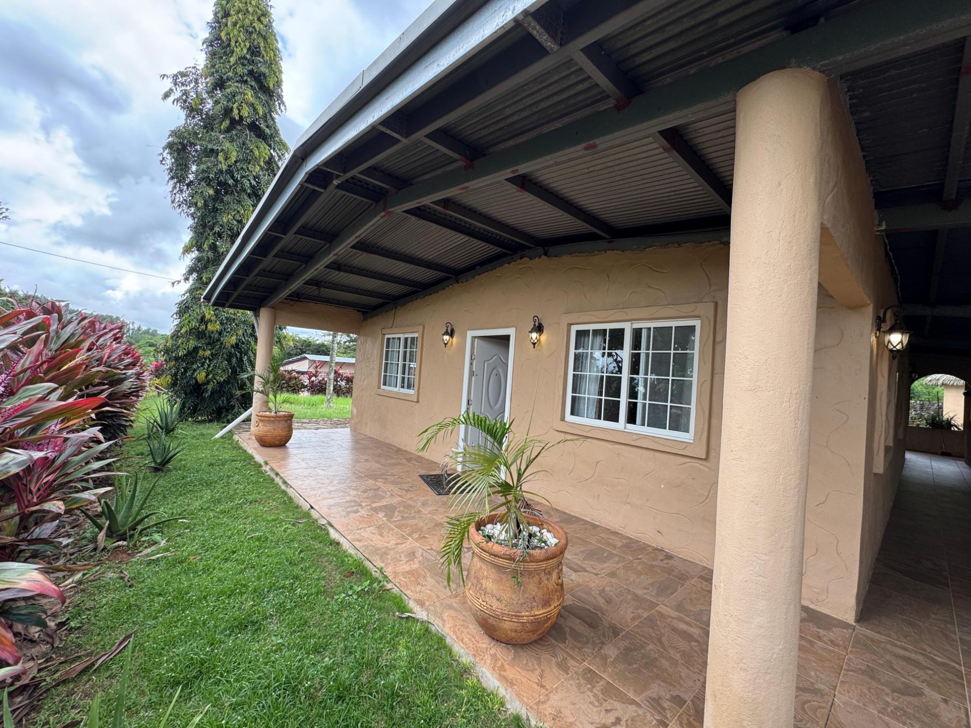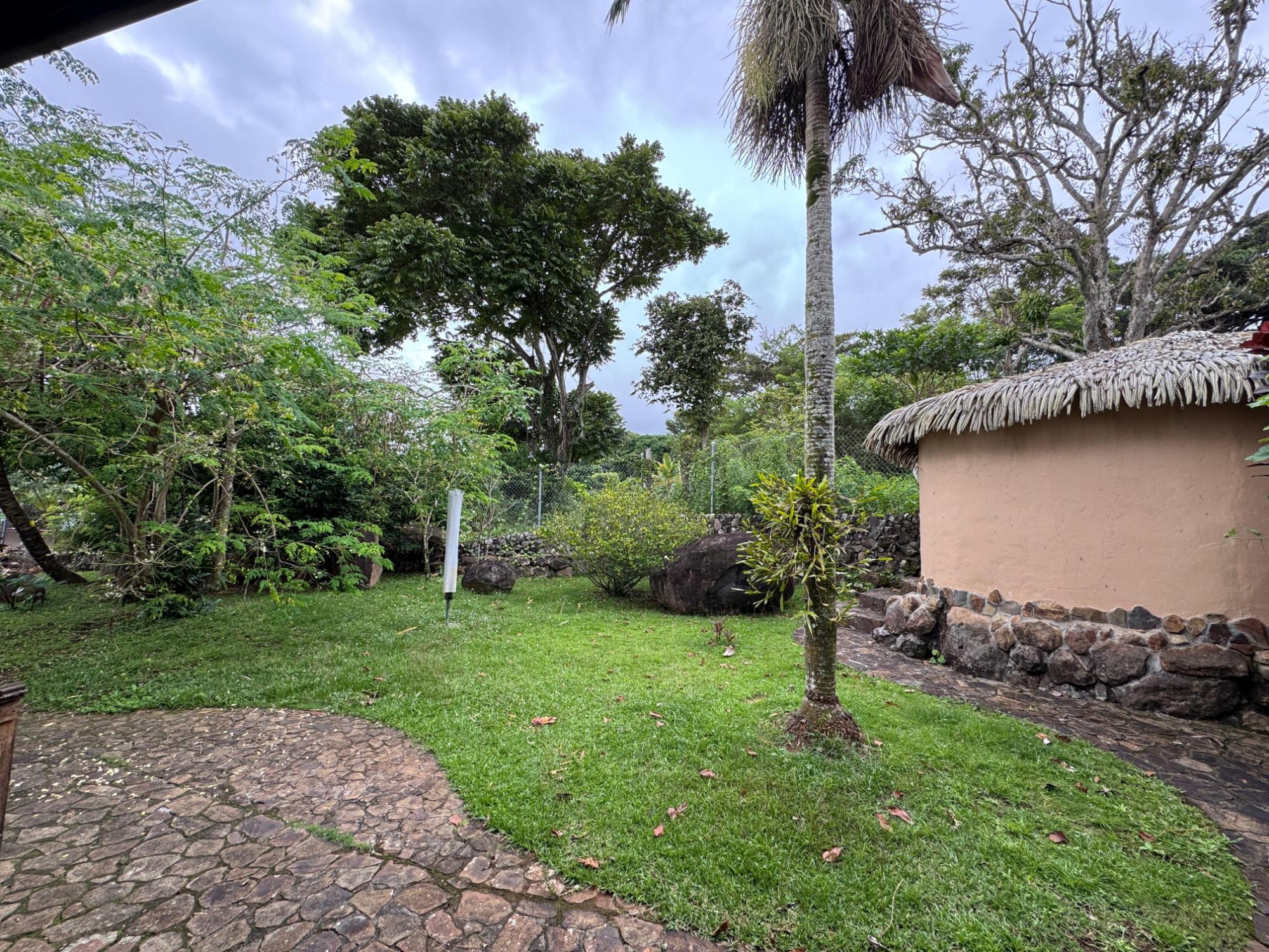This house for sale in Sora, Chame, Panama sits about 150 meters from the Sora town park, 20 minutes from the Inter-American Highway, and 30 minutes from Coronado. The location provides quick access to supermarkets, restaurants, and medical services. The property enjoys a quiet residential atmosphere with mountain views and cooler temperatures common in this part of Panama. Property Overview The property covers 612.22 square meters of land with 307.71 square meters of construction. The layout includes the main house, a guest room, terrace, laundry area, two-car carport, and a pump room. The flat terrain allows easy access and low maintenance. The garden includes lemon and banana trees, creating a practical and pleasant outdoor space. Main House The main structure includes a living and dining room, kitchen, one bedroom, an office, and one full bathroom. The kitchen features granite countertops, a double stainless-steel sink, and modular cabinetry. PVC sliding windows bring in natural light and ventilation. Tiled floors run throughout the home, and gypsum ceilings give a clean and consistent finish. The living area connects easily to the dining and kitchen spaces, designed for comfortable everyday use. The office includes built-in furniture and large windows that open to mountain views, making it suitable for remote work or a personal project space. Guest Quarters and Additional Areas The guest room stands separate from the main house and includes a shower area with full-height wall tiles. It maintains the same solid construction quality, with PVC windows, tiled floors, and decorative wall finishes.Features