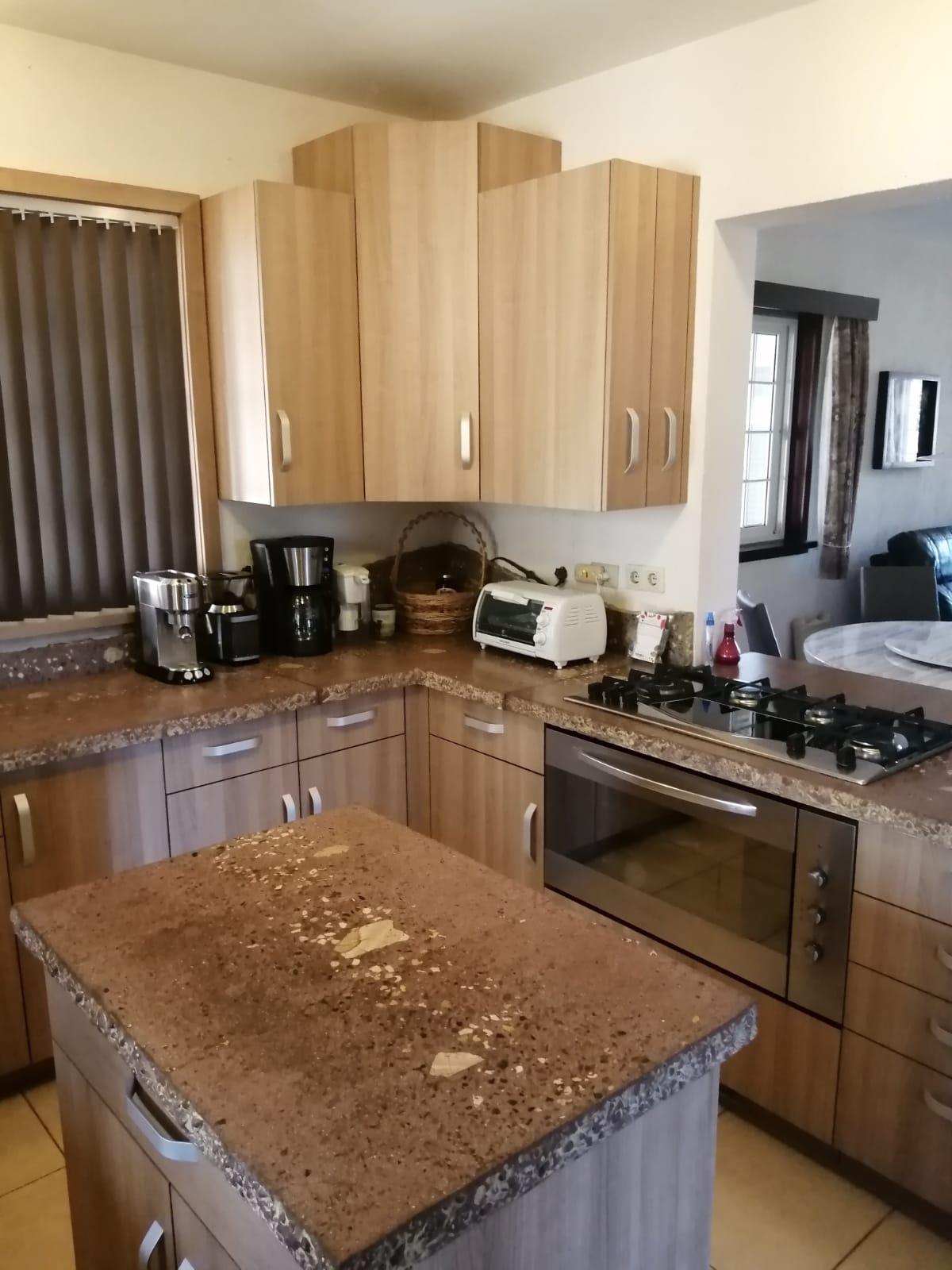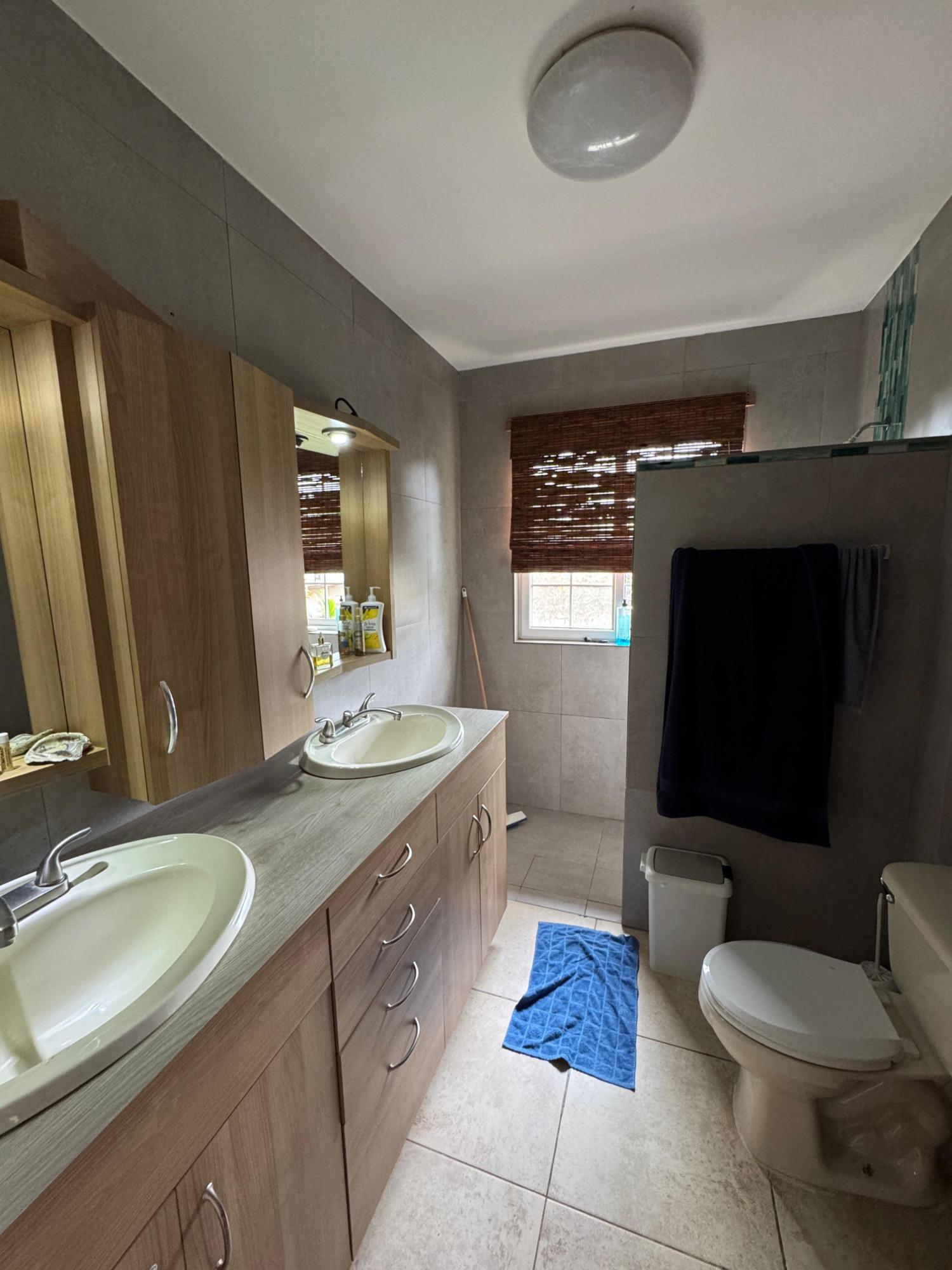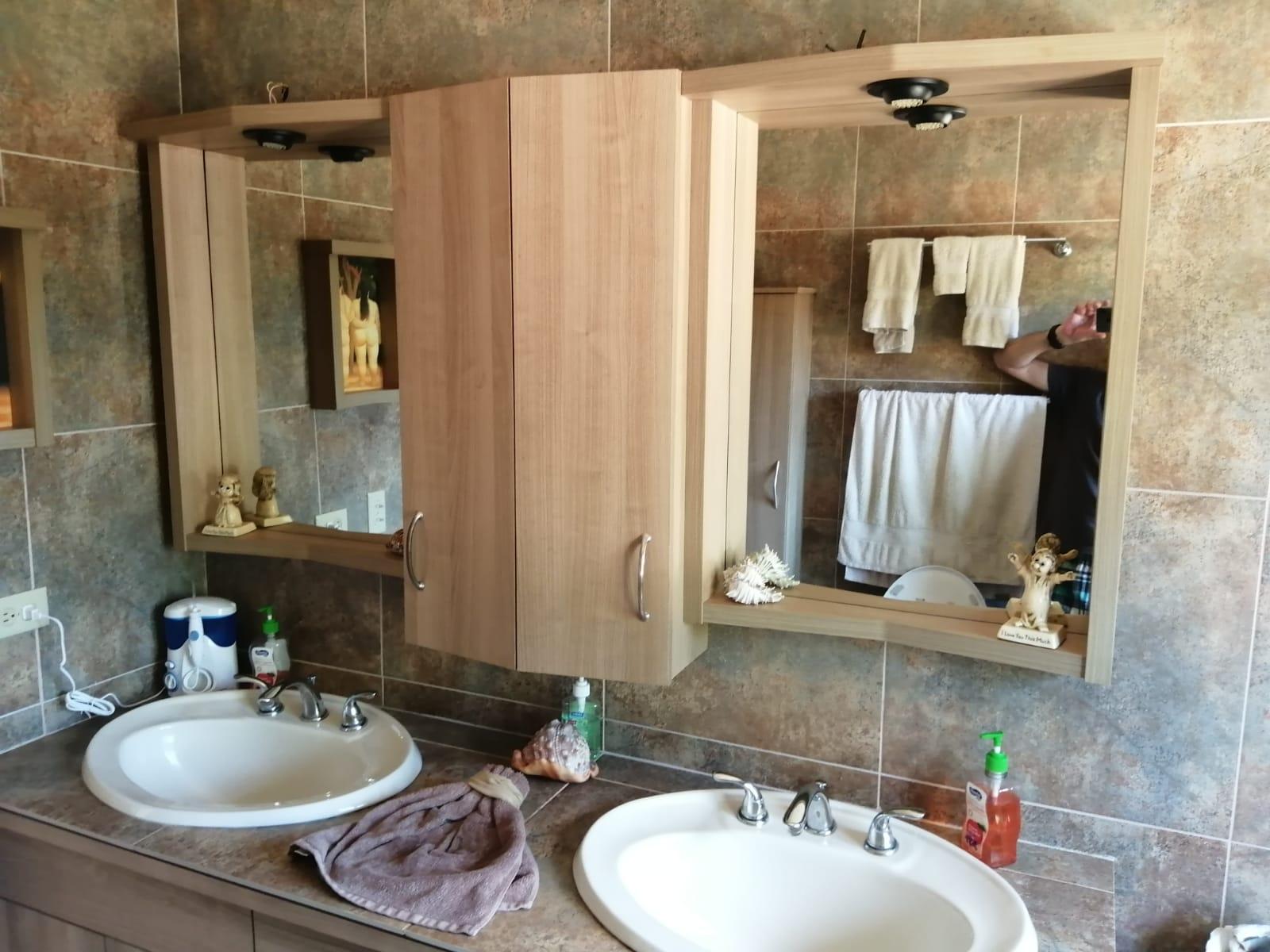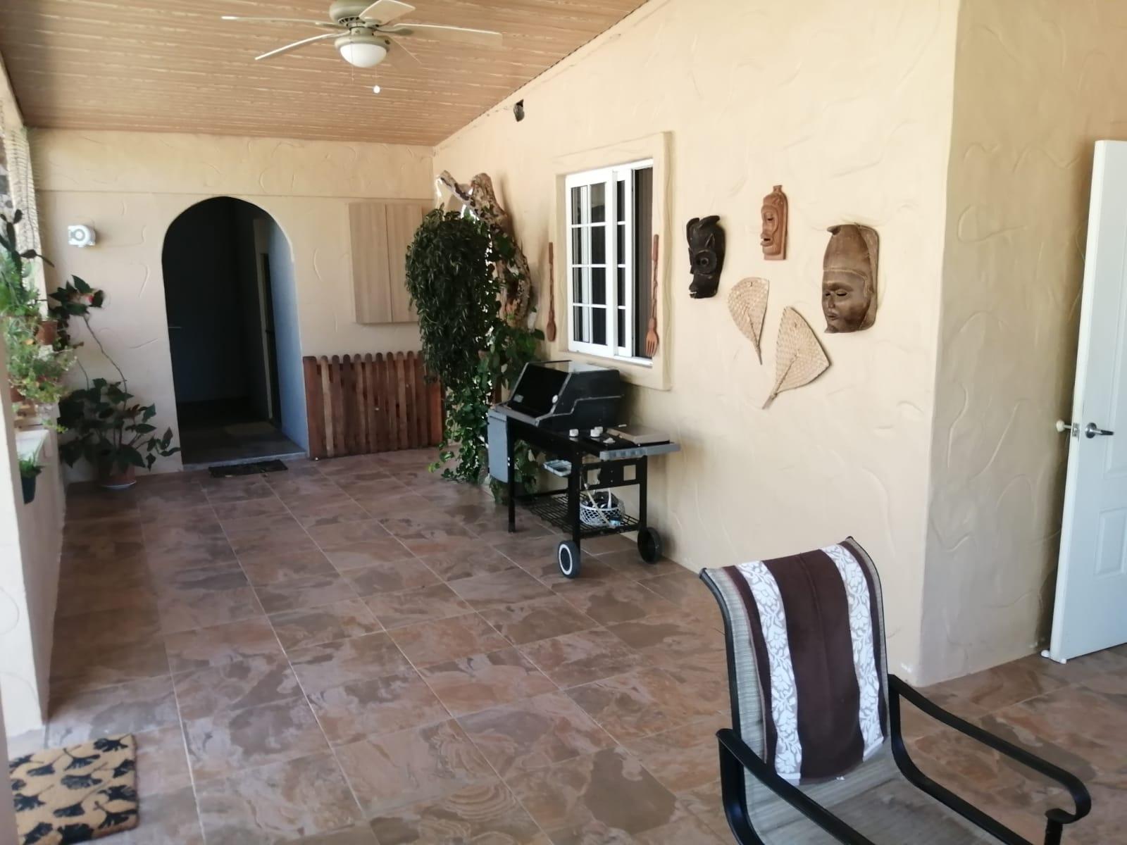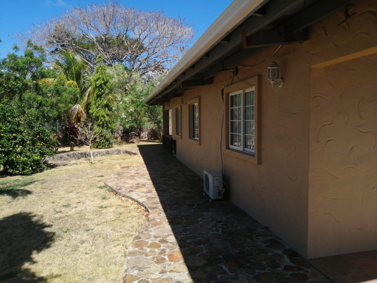 This house for sale in Sora, Chame, Panama sits about 150 meters from the Sora town park, 20 minutes from the Inter-American Highway, and 30 minutes from Coronado. The location provides quick access to supermarkets, restaurants, and medical services. The property enjoys a quiet residential atmosphere with mountain views and cooler temperatures common in this part of Panama. Property Overview The property covers 612.22 square meters of land with 307.71 square meters of construction. The layout includes the main house, a guest room, terrace, laundry area, two-car carport, and a pump room. The flat terrain allows easy access and low maintenance. The garden includes lemon and banana trees, creating a practical and pleasant outdoor space. Main House The main structure includes a living and dining room, kitchen, one bedroom, an office, and one full bathroom. The kitchen features granite countertops, a double stainless-steel sink, and modular cabinetry. PVC sliding windows bring in natural light and ventilation. Tiled floors run throughout the home, and gypsum ceilings give a clean and consistent finish. The living area connects easily to the dining and kitchen spaces, designed for comfortable everyday use. The office includes built-in furniture and large windows that open to mountain views, making it suitable for remote work or a personal project space. Guest Quarters and Additional Areas The guest room stands separate from the main house and includes a shower area with full-height wall tiles. It maintains the same solid construction quality, with PVC windows, tiled floors, and decorative wall finishes.Features