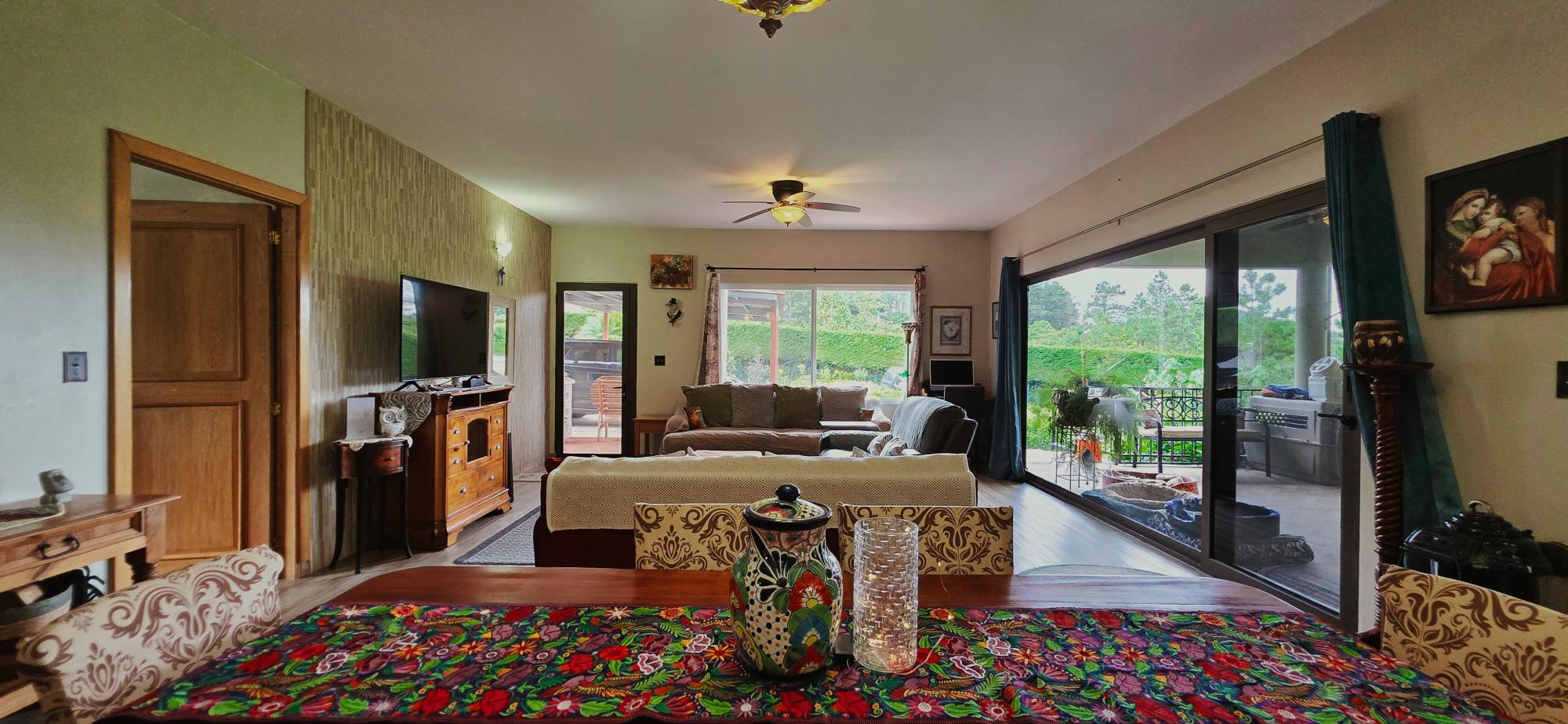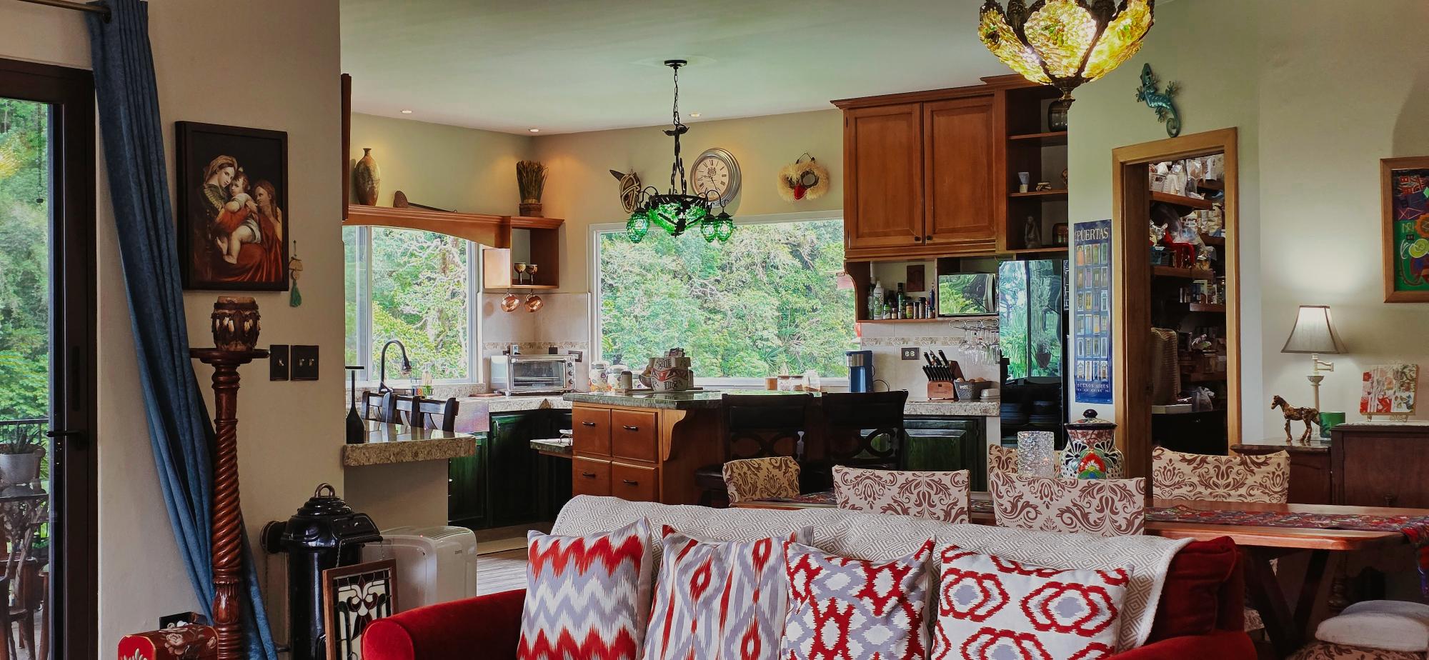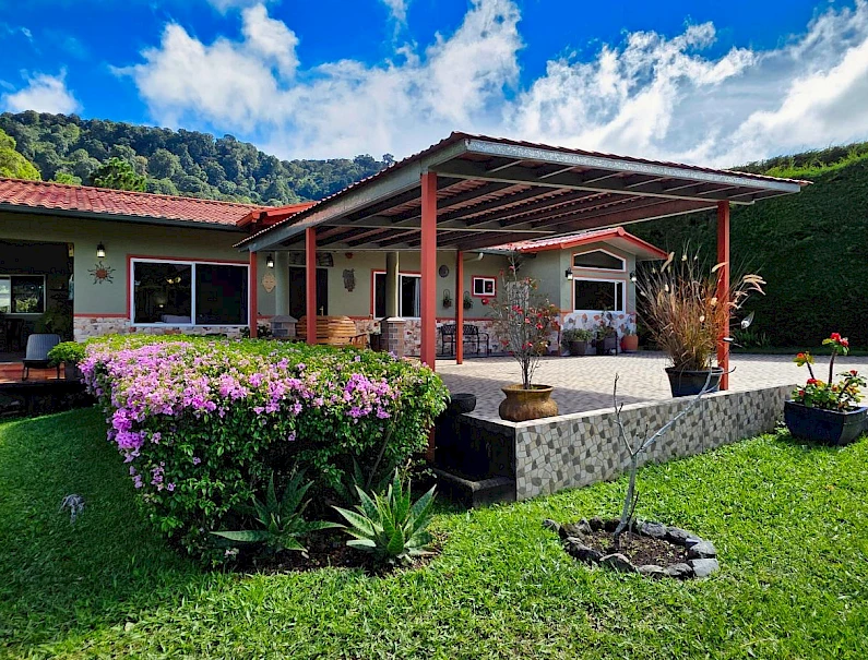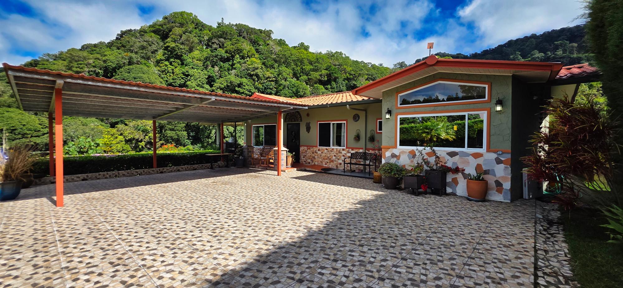 Discover this spectacular mountain residence located in Paso Ancho, Tierras Altas, one of the most coveted areas of Chiriquí. Situated at 1,524 meters above sea level, this property offers a year-round cool climate, fresh air, tranquility, and security in an exclusive gated community bordered by the Chiriqui Viejo River. The house has been completely remodeled to North American standards over the last 6 years, combining modern design with the natural charm of the region. Key Features: Land: 0.61 acres (2,474 m²) with tropical gardens and fruit trees. Total Construction: 316 m² (approximately 3,400 ft²). Enclosed (living) area: 180 m² (approximately 1,938 ft²). Bedrooms: 3 | Bathrooms: 4. Covered terrace with stunning views of the forest, river, and mountains. Featured Amenities: Independent apartment. High-speed internet. 2 backup power stations. Access for people with reduced mobility. Indoor Jacuzzi for 6 people. Outdoor toilet. 10' x 12' storage/wine cellar. Separate laundry room. Location Benefits: Security: Gated community with guaranteed privacy and tranquility. Proximity: Just minutes from downtown Volcán, with supermarkets, banks, restaurants, clinics, pharmacies, and more. Living Nature: Hummingbirds, tanagers, and tropical flora in a year-round spring-like climate. Lifestyle: Perfect for retirement, second home, or family living in a mountain setting with all modern amenities.Features