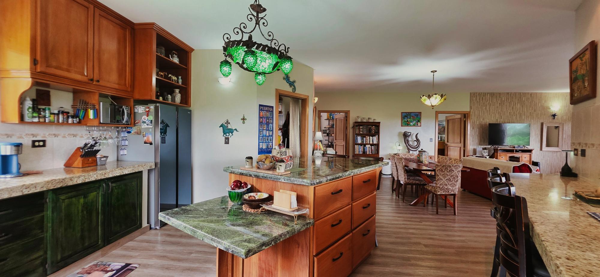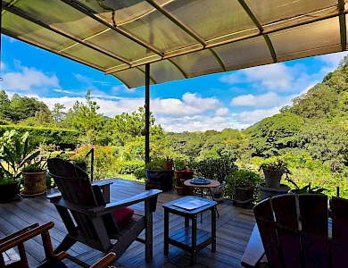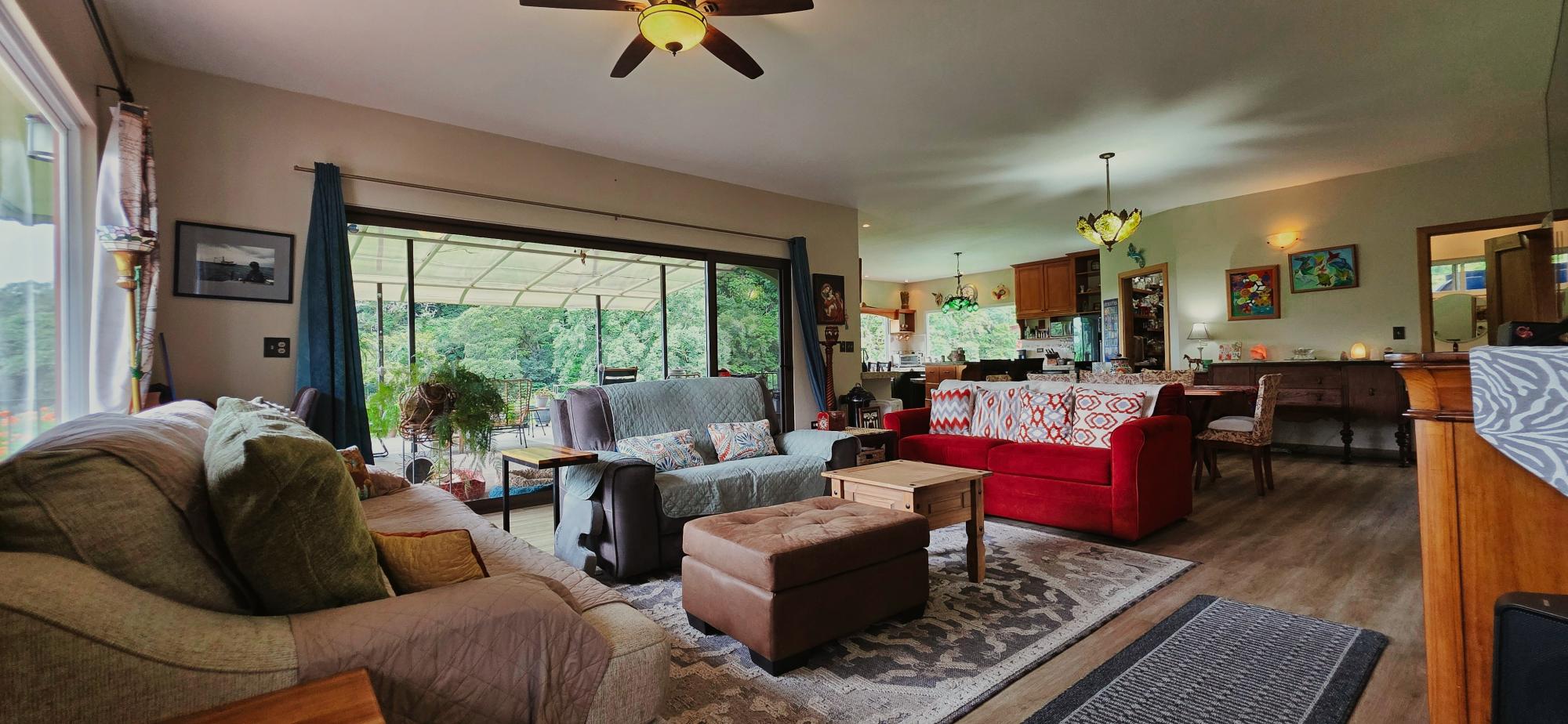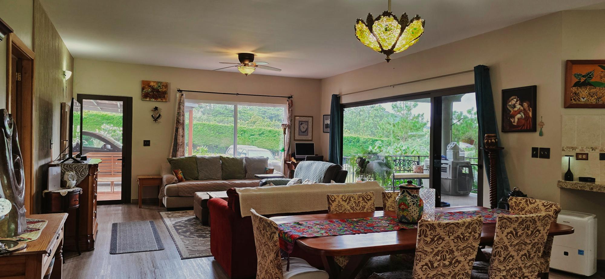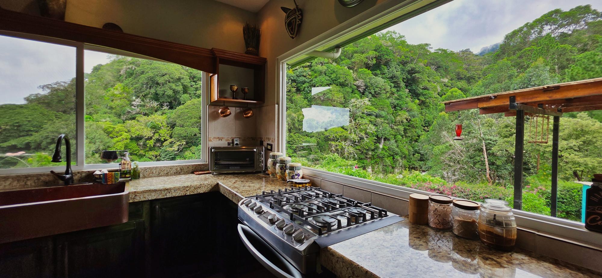 Discover this spectacular mountain residence located in Paso Ancho, Tierras Altas, one of the most coveted areas of Chiriquí. Situated at 1,524 meters above sea level, this property offers a year-round cool climate, fresh air, tranquility, and security in an exclusive gated community bordered by the Chiriqui Viejo River. The house has been completely remodeled to North American standards over the last 6 years, combining modern design with the natural charm of the region. Key Features: Land: 0.61 acres (2,474 m²) with tropical gardens and fruit trees. Total Construction: 316 m² (approximately 3,400 ft²). Enclosed (living) area: 180 m² (approximately 1,938 ft²). Bedrooms: 3 | Bathrooms: 4. Covered terrace with stunning views of the forest, river, and mountains. Featured Amenities: Independent apartment. High-speed internet. 2 backup power stations. Access for people with reduced mobility. Indoor Jacuzzi for 6 people. Outdoor toilet. 10' x 12' storage/wine cellar. Separate laundry room. Location Benefits: Security: Gated community with guaranteed privacy and tranquility. Proximity: Just minutes from downtown Volcán, with supermarkets, banks, restaurants, clinics, pharmacies, and more. Living Nature: Hummingbirds, tanagers, and tropical flora in a year-round spring-like climate. Lifestyle: Perfect for retirement, second home, or family living in a mountain setting with all modern amenities.Features