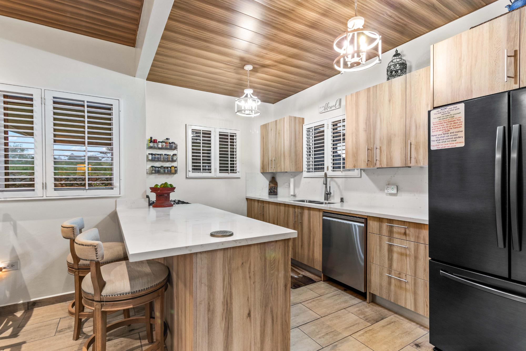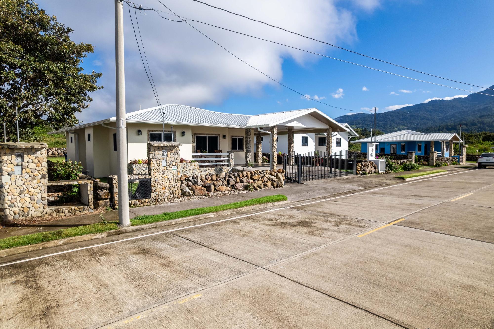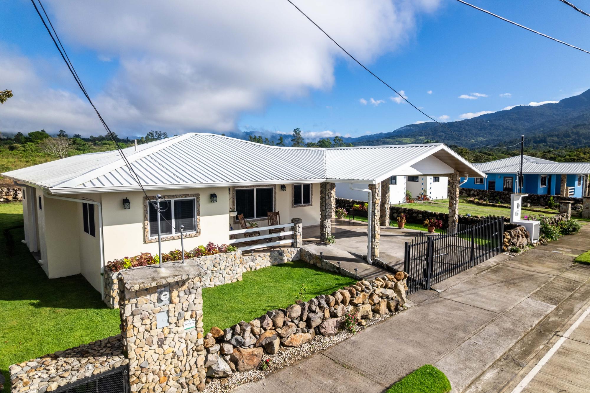 This beautifully furnished 3-bedroom, 2-bathroom home in Vista Boquete offers the perfect balance of style, comfort, and convenience, just 6 minutes from downtown Boquete. This residence is thoughtfully designed with modern finishes and abundant natural light throughout. The open-concept living and dining area features wood-style ceilings, recessed lighting, and custom plantation shutters. A contemporary kitchen with quartz countertops, Pan Pacific custom cabinetry, and stainless steel Samsung and LG appliances flows seamlessly into the social areas, making it ideal for both entertaining and everyday living. The master suite includes a walk-in closet and a spa-inspired bathroom with elegant tile finishes and a glass-enclosed shower, while two additional bedrooms offer flexibility for guests, family, or a home office. Practical amenities elevate the home’s value, including a backup Gropro aquas low-profile water storage tank with pump, a 40-gallon hot water tank, a water filtration system, and ceiling fans throughout. Outdoors, you’ll find extended covered patios with tiled finishes and recessed lighting, an electric gate for privacy, bulldog gutters with French drains, and not one but two additional lifetime storage buildings, each with electricity—perfect for storage, a workshop, or a hobby room. The home also offers a covered carport with stone accents and a landscaped yard framed by mountain views. Located on paved double-lane roads in a quiet neighborhood with views of the Jaramillo and Baru mountains.Features
