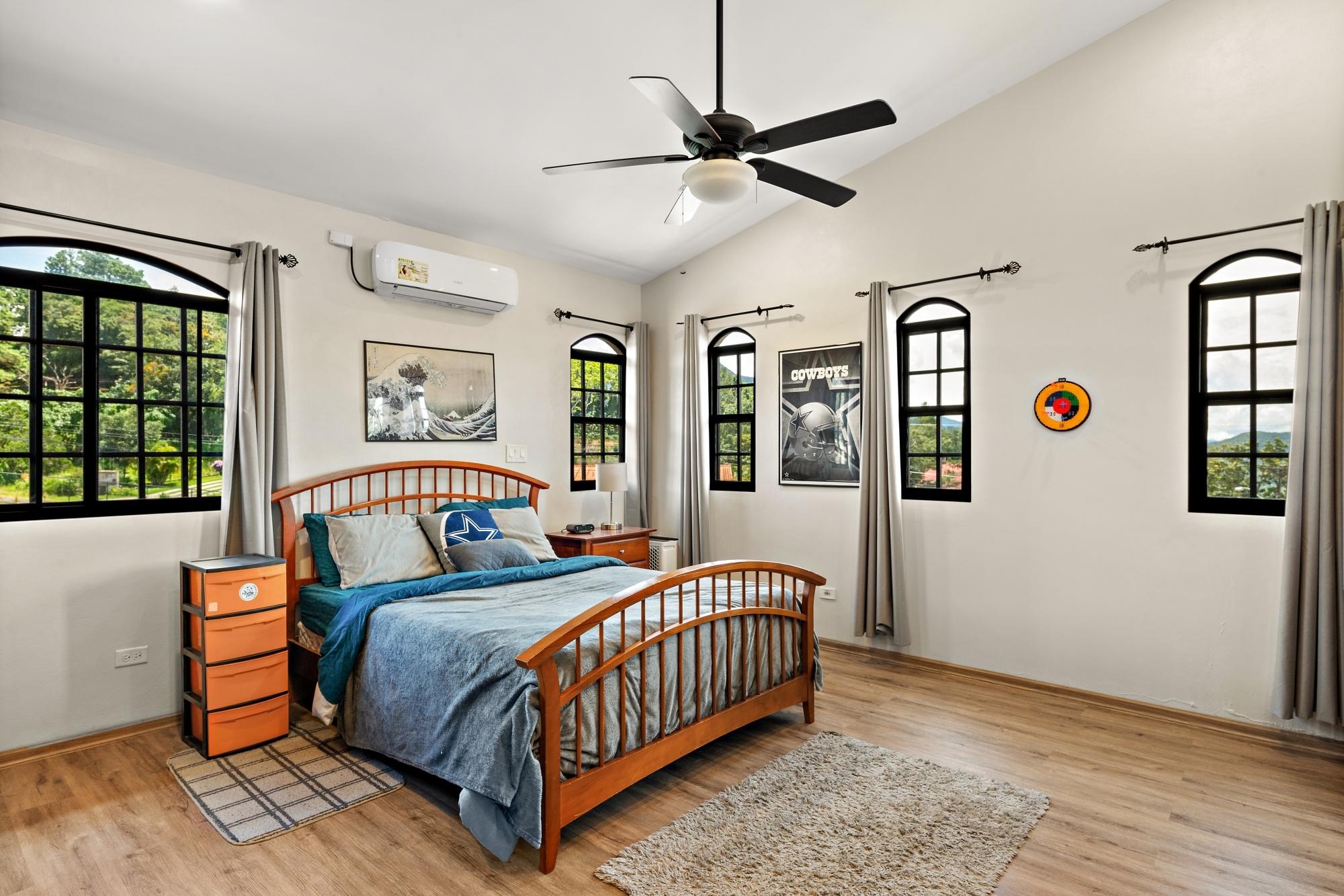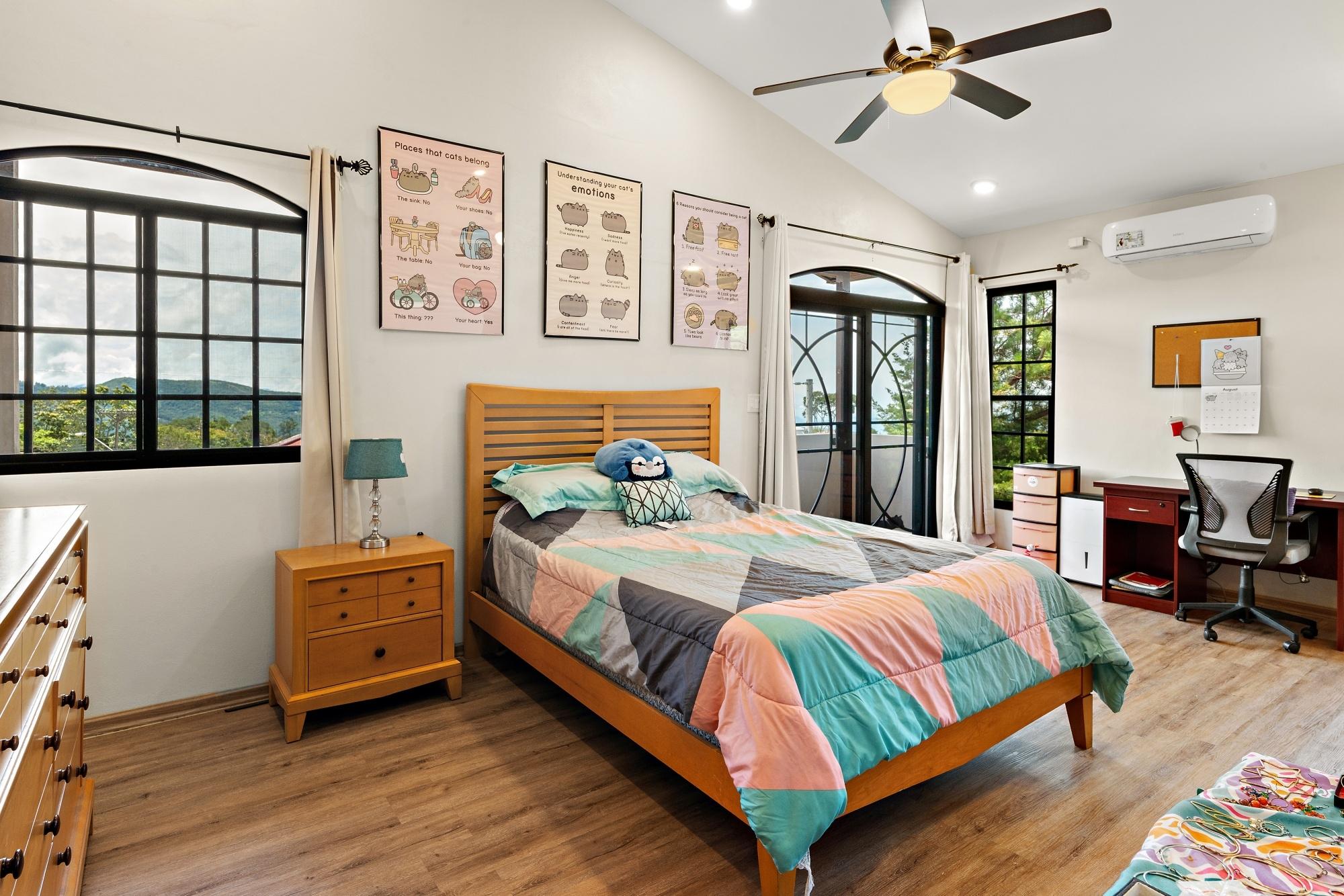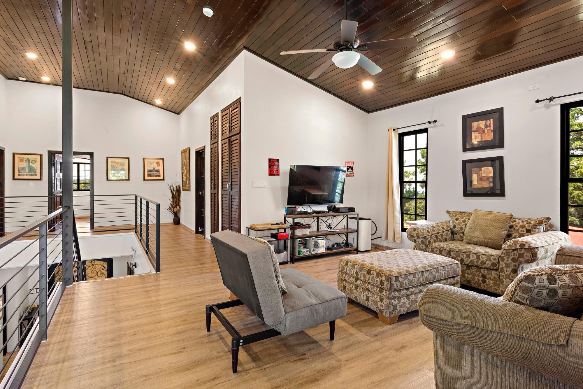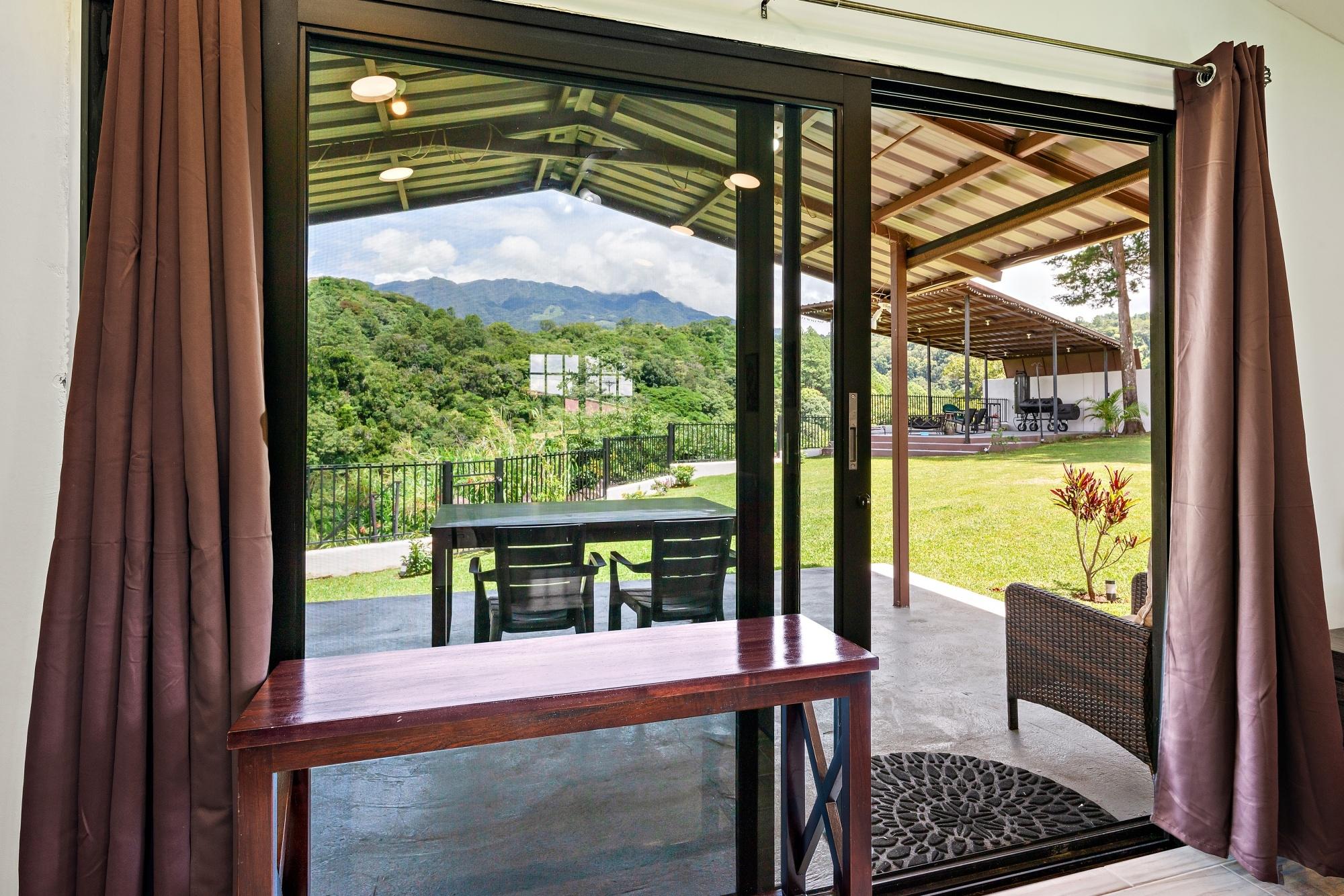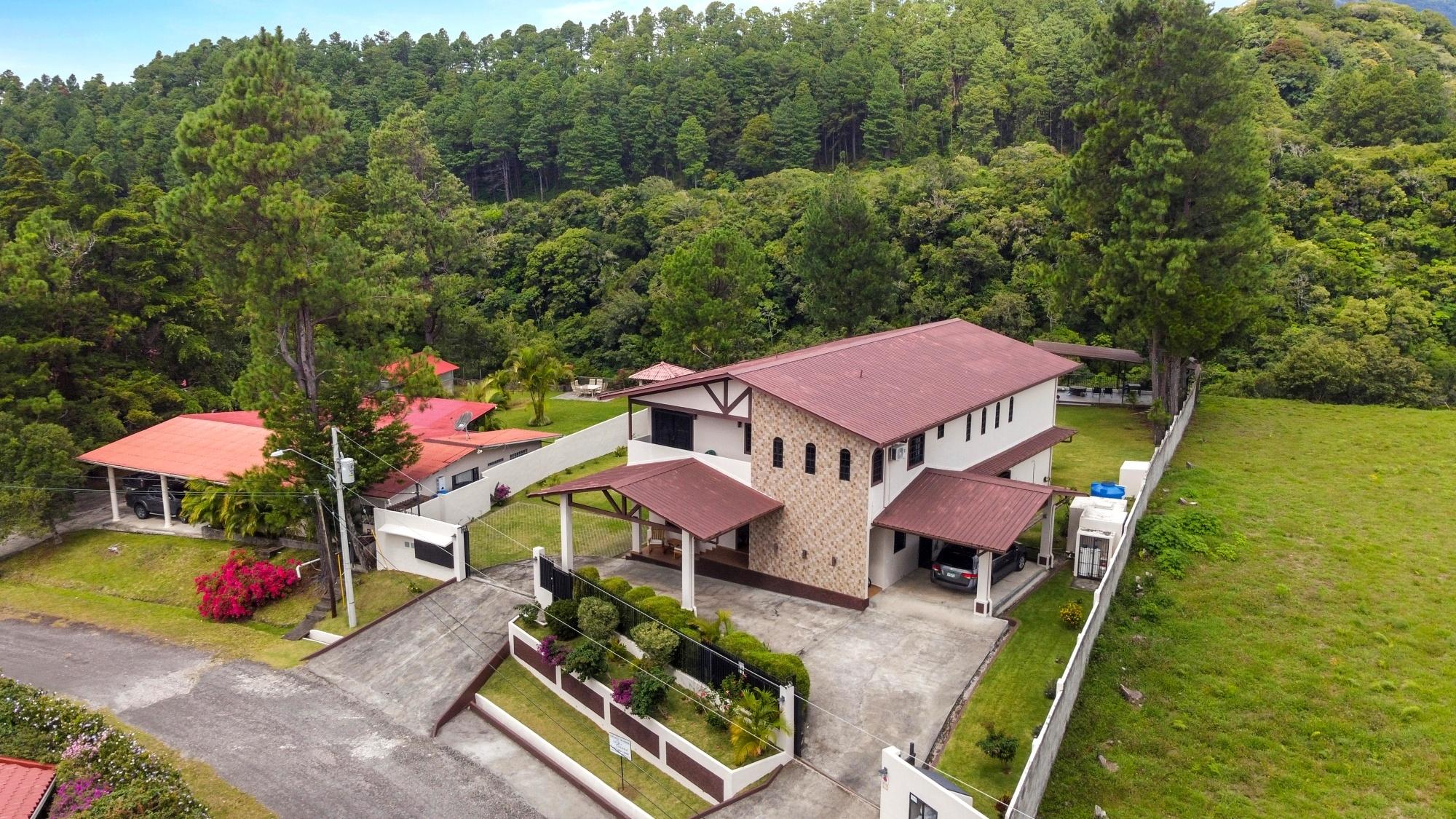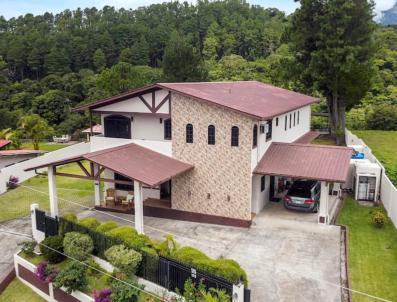 Property Measurements Main House: 4,184 sq ft / 388.71 m² Casita: 494 sq ft / 45.89 m² Storage Container: 40 ft Welcome to this move-in ready residence, perfectly blending luxury, comfort, and natural beauty in a private setting. With breathtaking canyon and Volcán Barú views, exceptional finishes, and fully furnished interiors, this turnkey property is a must-see. Main House 4 bedrooms, 4 bathrooms Master suite with ensuite, walk-in closet, and patio access Downstairs guest bedroom/office with full bath and tub Open-plan kitchen with solid wood cabinets, granite counters, and top appliances Upstairs lounge, balcony, and 2 bedrooms with ensuites and shared balcony Soaring ceilings, abundant natural light, and built-in storage throughout Outdoor Living & Extras Casita with full kitchen and bath — ideal for guests or rental income 40-ft storage container with lighting and outlets Expansive terrace with gas fireplace and BBQ area overlooking the canyon Electric gates, undercover parking, and access to scenic walking trails Construction & Systems Built in 2023 with premium materials Water system: 686-gal primary + 1,650-gal secondary tanks with reverse osmosis filtration 40-gal gas water heater + on-demand backup (pre-wired for electric options) This home offers refined living, modern systems, and unmatched views. Schedule your private tour today!Features