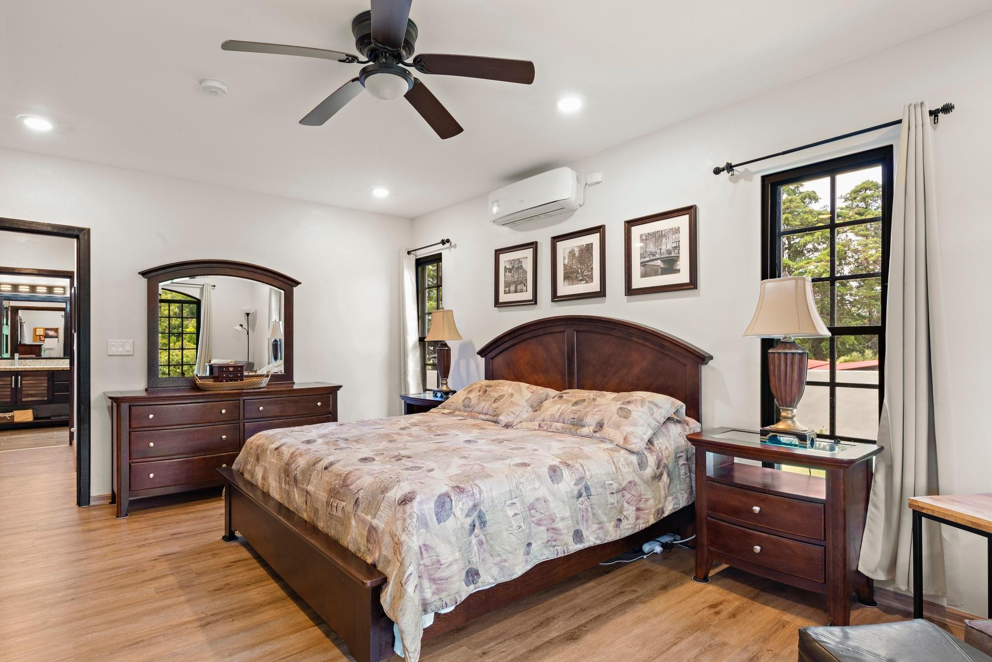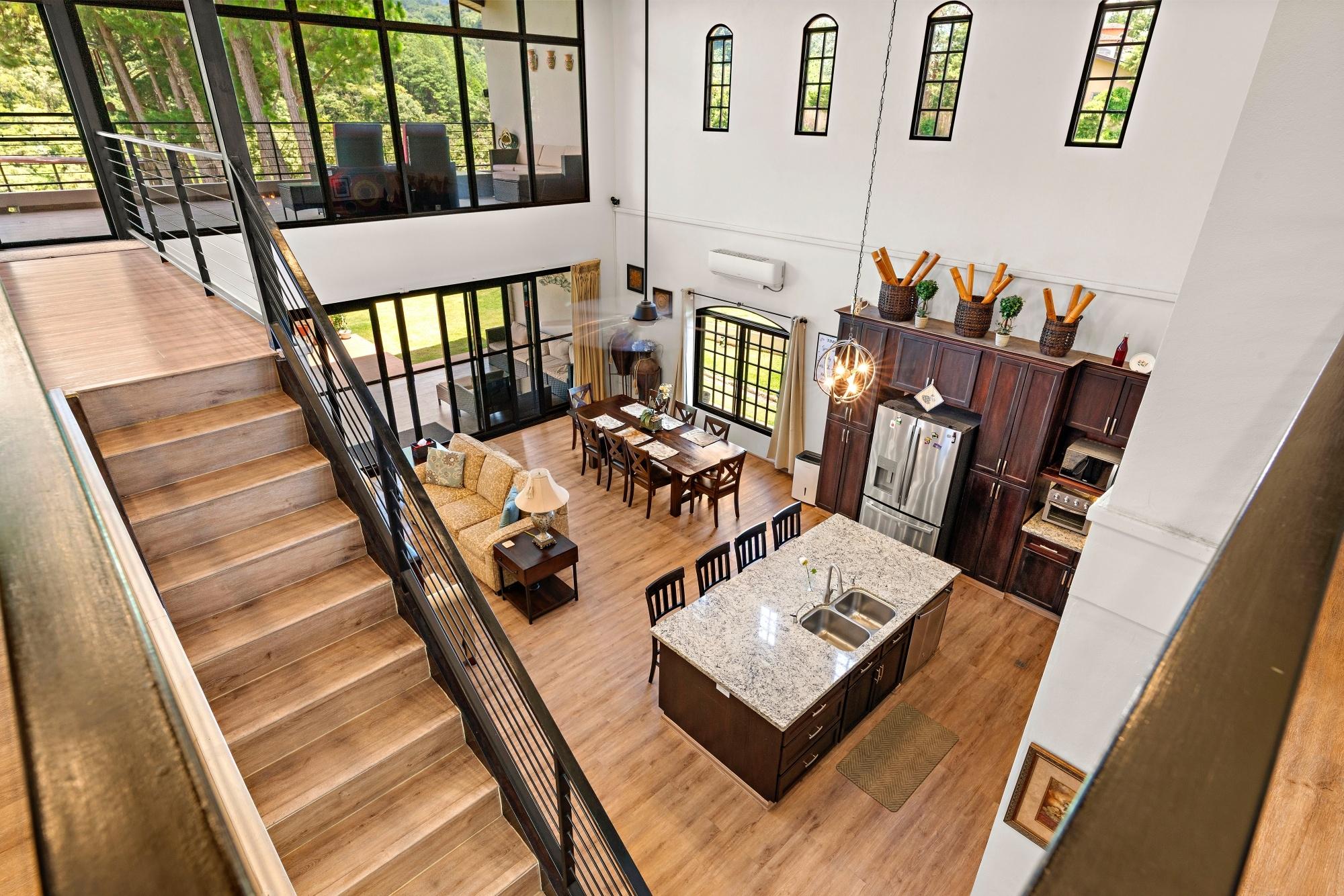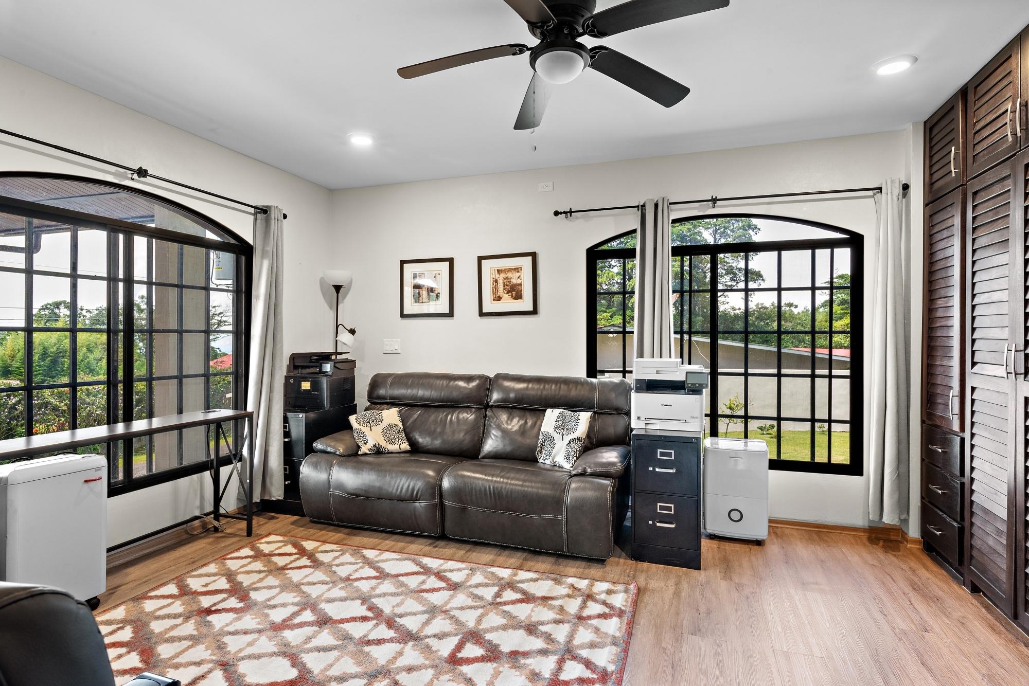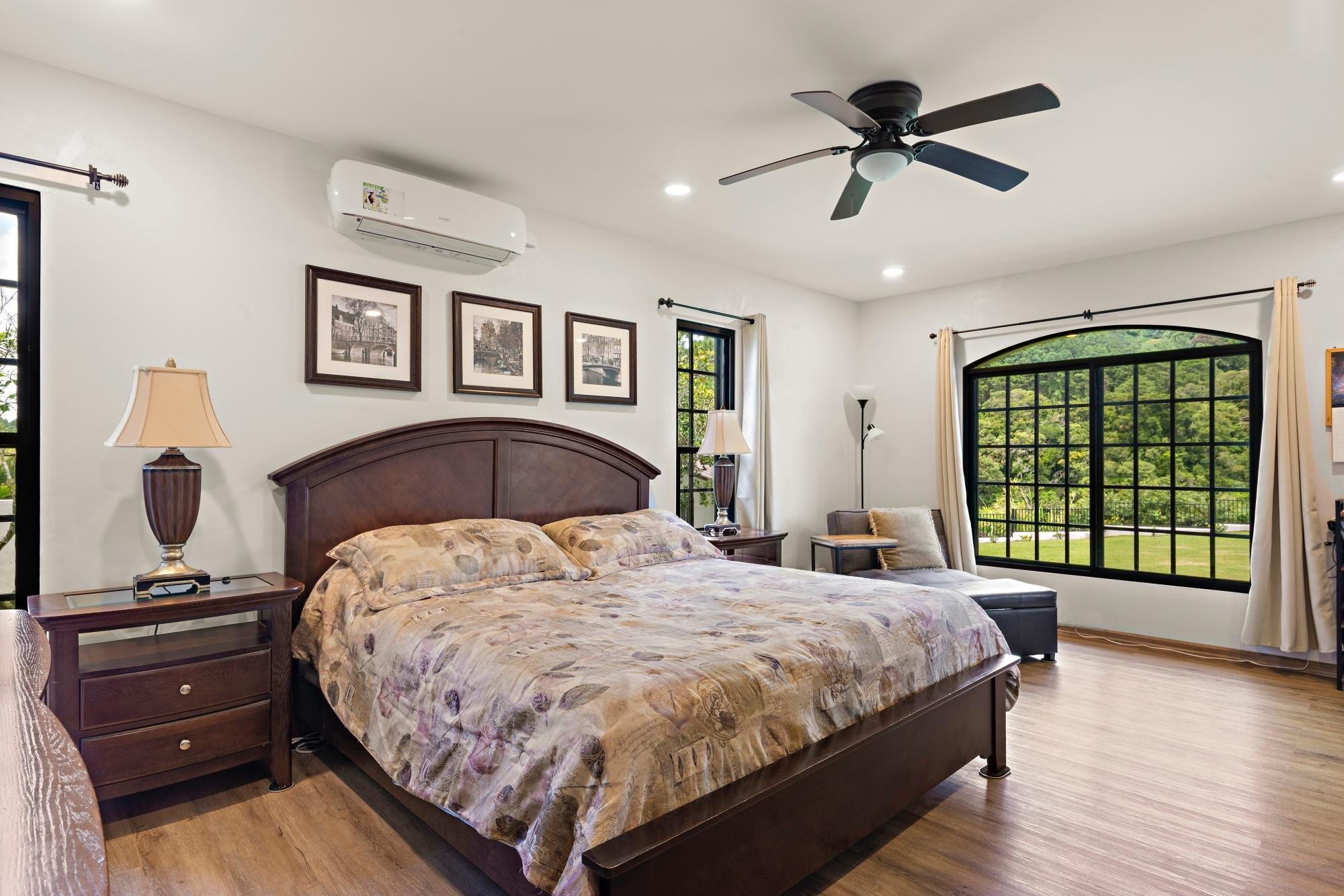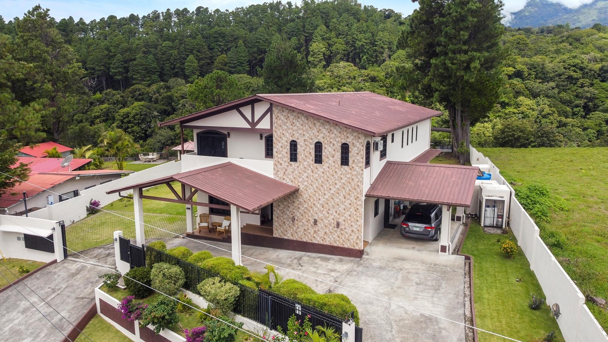 Property Measurements Main House: 4,184 sq ft / 388.71 m² Casita: 494 sq ft / 45.89 m² Storage Container: 40 ft Welcome to this move-in ready residence, perfectly blending luxury, comfort, and natural beauty in a private setting. With breathtaking canyon and Volcán Barú views, exceptional finishes, and fully furnished interiors, this turnkey property is a must-see. Main House 4 bedrooms, 4 bathrooms Master suite with ensuite, walk-in closet, and patio access Downstairs guest bedroom/office with full bath and tub Open-plan kitchen with solid wood cabinets, granite counters, and top appliances Upstairs lounge, balcony, and 2 bedrooms with ensuites and shared balcony Soaring ceilings, abundant natural light, and built-in storage throughout Outdoor Living & Extras Casita with full kitchen and bath — ideal for guests or rental income 40-ft storage container with lighting and outlets Expansive terrace with gas fireplace and BBQ area overlooking the canyon Electric gates, undercover parking, and access to scenic walking trails Construction & Systems Built in 2023 with premium materials Water system: 686-gal primary + 1,650-gal secondary tanks with reverse osmosis filtration 40-gal gas water heater + on-demand backup (pre-wired for electric options) This home offers refined living, modern systems, and unmatched views. Schedule your private tour today!Features