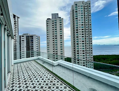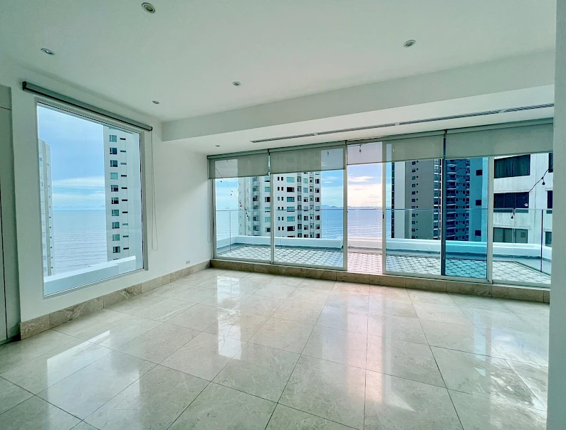 Apartment for rent in one of the most exclusive areas of Panama! Enjoy 290 m² of comfort and elegance: 3 bedrooms, each with a private bathroom and walk-in closet. Spacious open-plan living, dining, and kitchen. Den or bar for relaxing moments. Laundry and linen room. Perfect terrace to enjoy the view. 3 parking spaces. Prime location, modern design, and spacious spaces. Contact us and schedule your visit today.Features