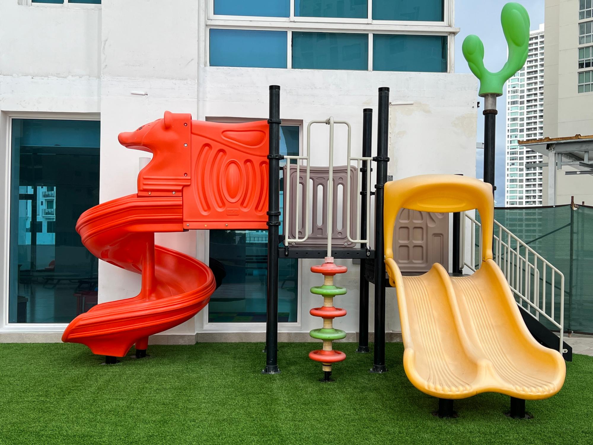 - Shared Services: Area verde, Ascensor, Ascensor de servicio, Area de juegos, Gimnasio, Piscina exterior, Estacionamiento de Visitas, Cuarto de Juegos, Sala de Fiestas