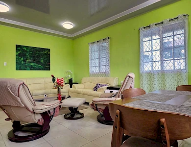 This residential home in Volcán, Tierras Altas offers a strategic location, versatile layout, and excellent investment potential in one of the fastest-growing areas of the district. Just two blocks from Vía Volcán, the property sits in a safe, quiet, and highly convenient neighborhood, within walking distance of supermarkets, restaurants, pharmacies, schools, clinics, and local shops. It is ideal for those who want to live close to everything, as well as for investors seeking a property with strong rental demand. The property sits on a 750 m² lot (approx. 0.19 acres) and offers approximately 207 m² (≈ 2,228 ft²) of enclosed living space. The main house features 2 bedrooms, 2 bathrooms, an open-concept living-dining-kitchen area, a private office/room, covered laundry, front porch, and a storage room with direct access from the office and the parking area. It also includes a closed garage for one vehicle and an additional open parking space. The backyard is spacious, with fruit trees and enough room for future expansions or recreational areas. One of the key highlights of this property is its independent apartment, connected internally through a door located in the second bedroom of the main house. The apartment offers 2 additional bedrooms, 1 bathroom, a small kitchen with dining area, and a private entrance from the backyard. When the interior door is closed, the apartment becomes completely independent, providing full privacy. This feature makes it an excellent opportunity for generating income through long-term rentals or Airbnb, as well as a comfortable space for guests or family members who need privacy. Living in this area of VolcFeatures