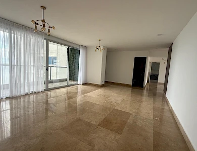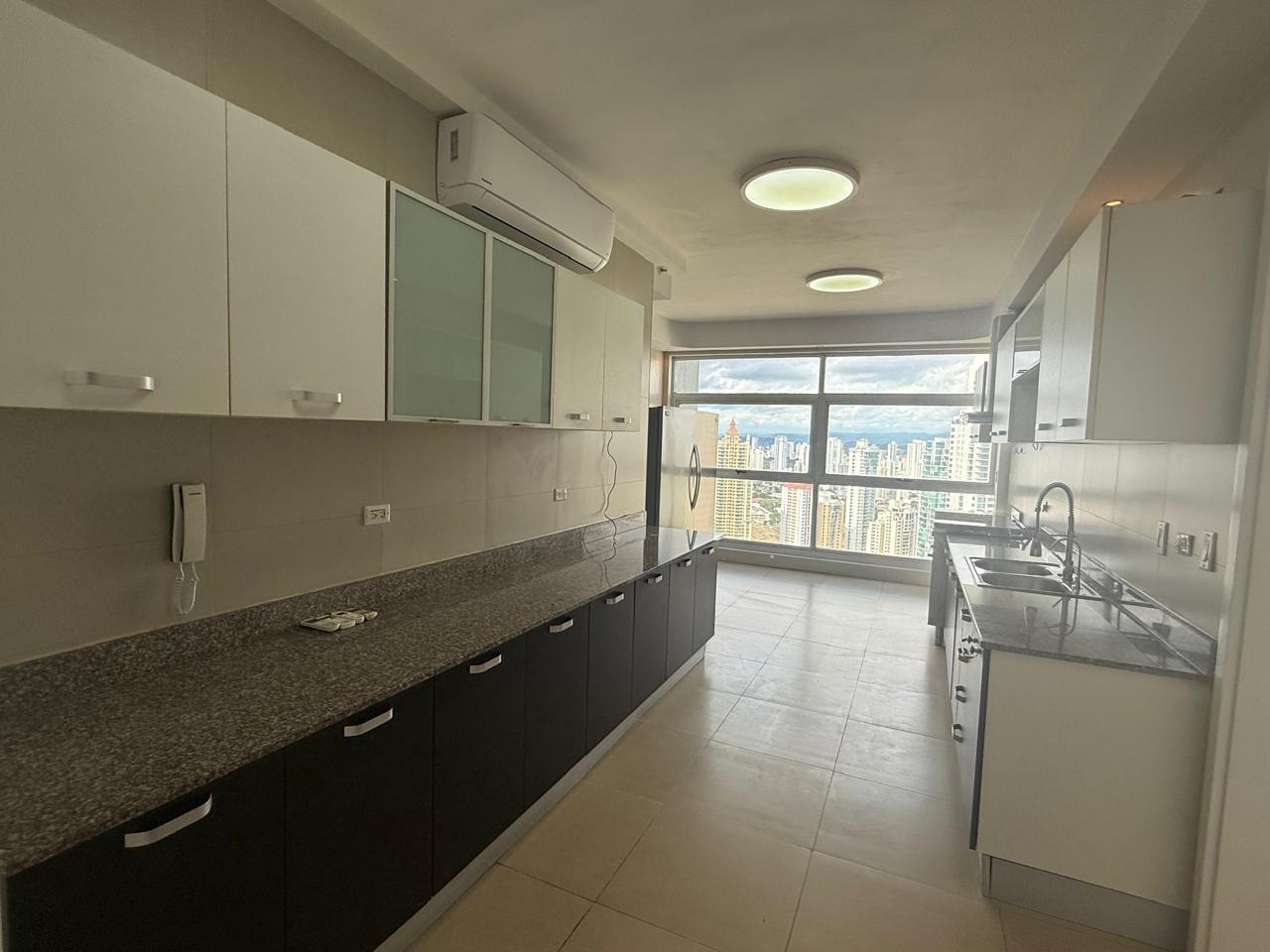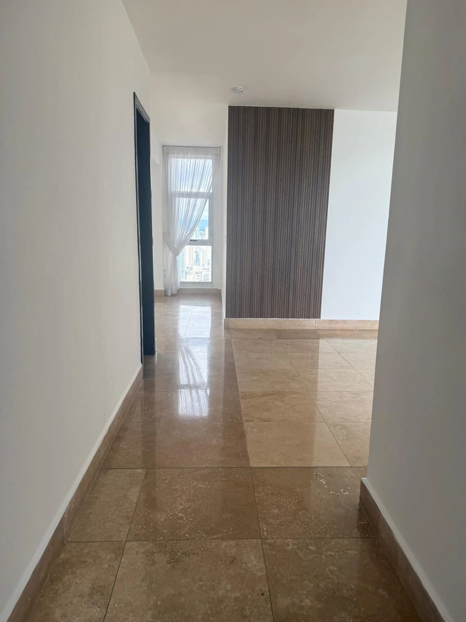 Located on a high floor, this elegant 306 m² apartment offers a luxurious lifestyle with panoramic views of the sea, the city, and the mountains. Its high-quality finishes, such as marble floors, and its spacious layout make it a unique opportunity for those seeking comfort and exclusivity. Apartment features: 3 spacious bedrooms with en-suite bathrooms, 3 full bathrooms + powder room, living room, dining room, balcony, and family room, large closed kitchen with appliances, laundry room, maid's quarters with bathroom, 2 separate entrances to the apartment, 2 parking spaces, appliances included. Q Tower Building: Complete social area with pool, gym, event room, and more. 24/7 security. Prime location in Punta Pacífica, close to shopping centers, hospitals, and main roads.Features
