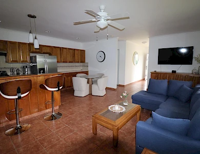 This furnished 2-bedroom, 2-bathroom condo is located only about 100 meters from Playa Las Lajas, one of the longest and most accessible beaches on Panama’s Pacific Coast. As an additional incentive, the sale also includes a 2025 Hyundai Tucson, providing extra value for the buyer. The condo offers partial ocean views and direct access to the relaxing lifestyle Las Lajas is known for. Condo Features Interior Size: Approximately 1,120 square feet Bedrooms: 2 Bathrooms: 2 Balcony & Terrace: With views of the green areas and proximity to the beach Air Conditioning units installed Private propane tank Appliances included: Refrigerator, stove, dishwasher, blender, washer, and dryer Water filtration system installed The layout is practical and bright, with natural light entering through large windows. The unit is part of a low-density building with a total of four condos, providing a quieter atmosphere compared to larger complexes. Outdoor & Common Areas Communal Area for the 4 Condos: Garden, swimming pool, terrace with partial roof, and outdoor furniture Visitor parking Green Areas: Landscaped with coconut palms and tropical plants The monthly fee, as of today, is $100 which includes water, filter changes, and lawn mowing.Features