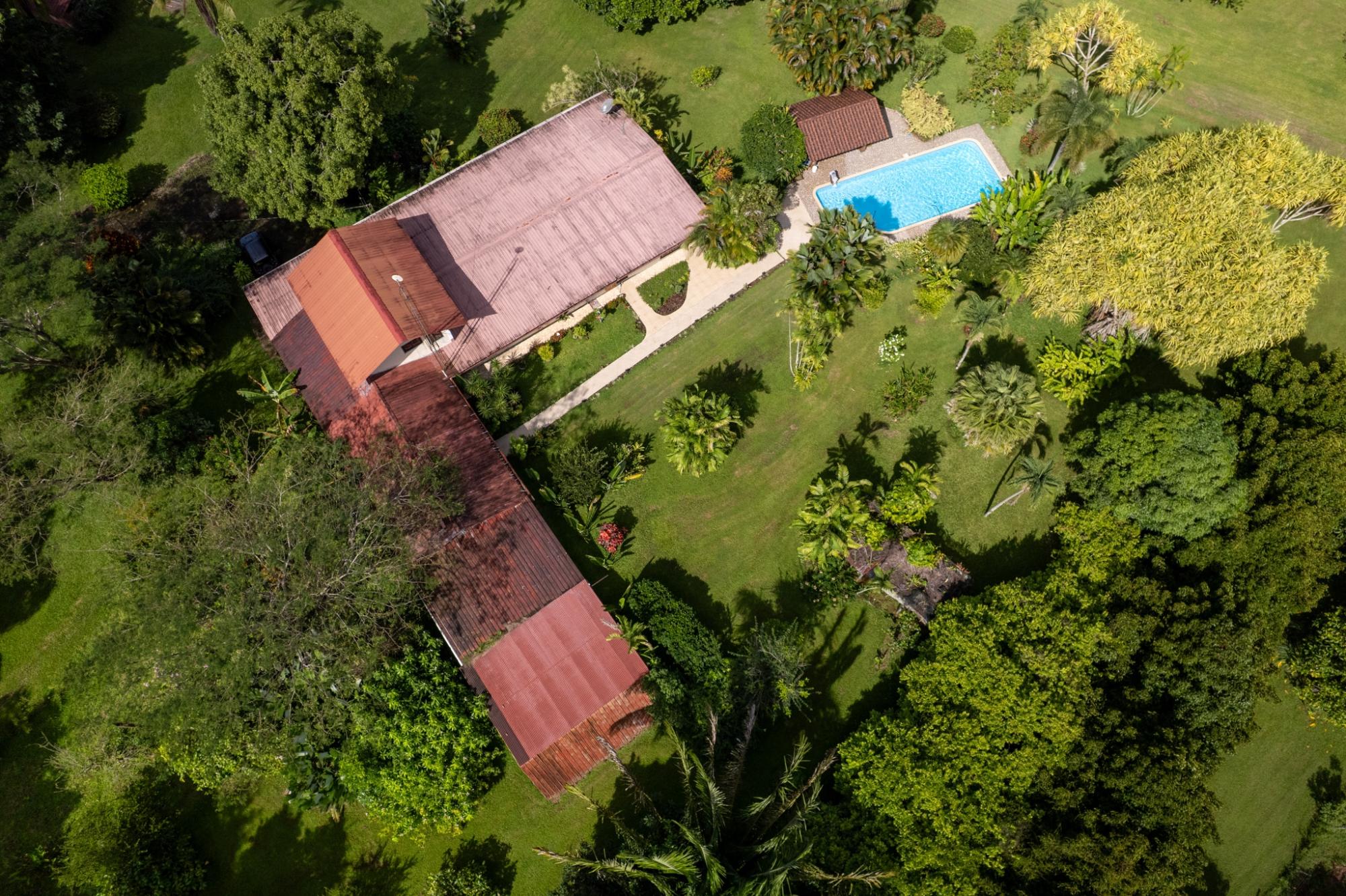 Welcome to an exceptional estate where understated luxury meets natural abundance. Nestled in the temperate highlands of Bugaba, this nearly 3-hectare fully titled property offers a rare mix of elegance, privacy, and self-sufficiency just minutes from the Pan-American Highway with easy paved-road access. Through the gated entry, a cobblestone-style drive leads to the 2,200 sq ft furnished main residence designed for comfort and open-air entertaining. Expansive covered verandas invite year-round enjoyment, while a private pool, ambient lighting, and lush tropical landscaping create a setting of refined leisure. Features include a separate upper-level guest quarters, resort-style pool with night lighting, private well, four-stall horse barn and workshop, flourishing orchards of avocado, citrus, and mango, plus a living privacy fence of fragrant limoncello hedges. An adjoining ranch of up to 35 hectares is also available in 5-6 hectare parcels for equestrian use, boutique agriculture, or further estate development.Features
