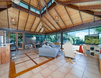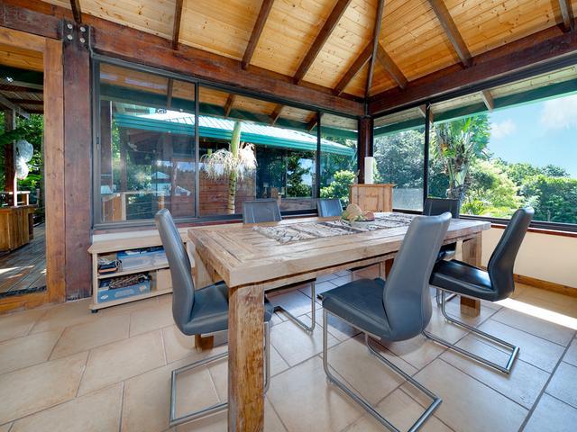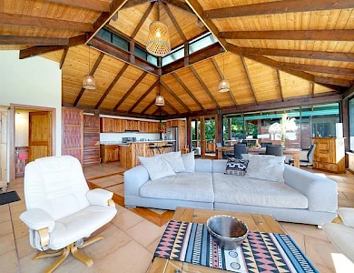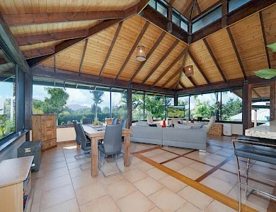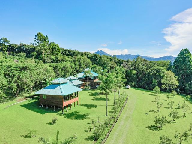 This Bali inspired home welcomes you with its tremendous, panoramic views as far as the eye can see. A modern family home, situated in a very quiet location, is well presented and complemented by the spacious open plan design with features that will impress. Step inside the beautifully presented light, bright and airy cottage, with high ceilings and wooden floors. The generous layout and free-flowing living space complements the outdoor entertainer’s terrace and landscaped gardens. This property consists of four pods, with pod # 1 offering a fantastic floor plan with living room, dining room, kitchen and powder room. Pod#2, is the principal bedroom with an en-suite and walk-in closet Pod#3 is a 2nd bedroom which is currently being used as an office. Comes with an en-suite and walk-in closet. Pod#4 is a self contained cottage, with living area, bedroom with en-suite bath, a beautiful kitchen, and indigenous hardwood floors. INVESTMENT OPPORTUNITIES This property was designed to accommodate additional Pods not only for larger families but for short and long term rentals creating an income source. Additionally, this Balinese inspired atmosphere would be the perfect corporate or group retreat creating a positive and relaxed experience. The beautiful tropical grounds can easily support sports activities and even a pickle ball court or pool. Don't miss out on the all this amazing property has to offer. schedule a viewing today!Features