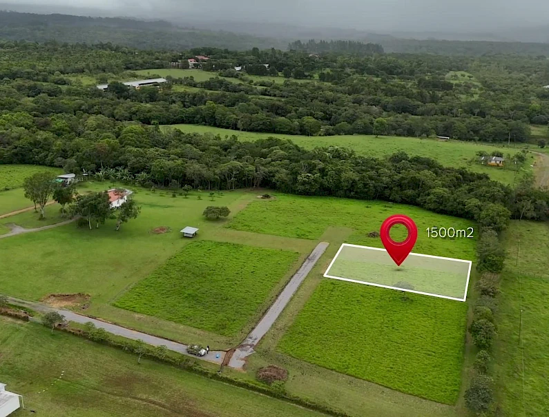 Flat and build-ready lot located between two properties in a private, gated 5-lot residential community in Potrerillos Arriba. With 1,500 m² (0.37 acres) of usable space, this lot offers a practical layout for a custom home in a peaceful mountain setting. Features include underground electricity, controlled access, and a cool highland climate with natural surroundings. The community is governed by a horizontal property regime that ensures architectural harmony and shared maintenance. Ideally located just minutes from the Boquete–David Highway. A great opportunity to build your home in a secure and well-planned mountain community.Features