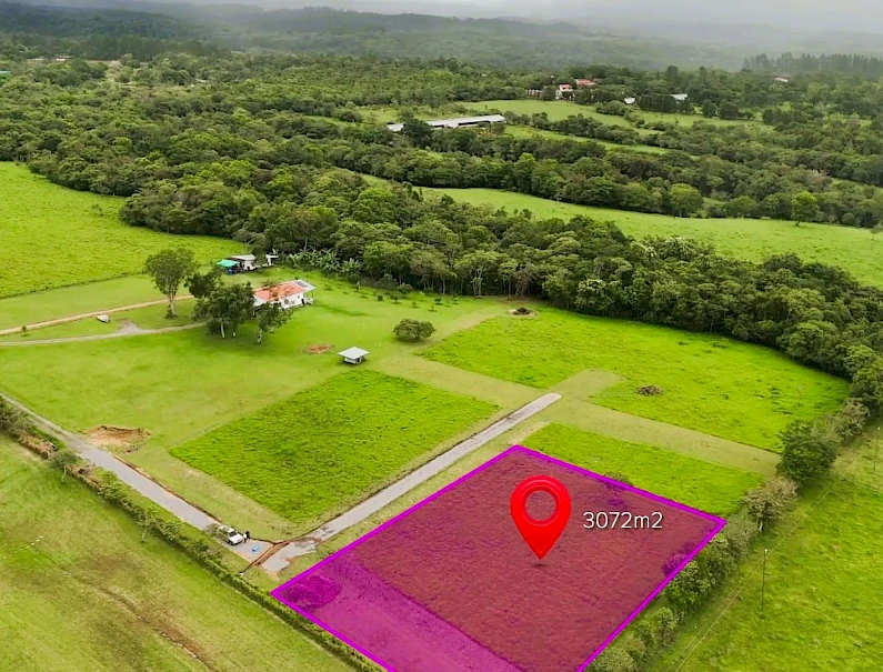 Flat, build-ready corner lot located in a private, gated 5-lot residential community in Potrerillos Arriba. With 3,072.06 m² (0.76 acres) of usable land, this property offers excellent accessibility and flexibility for custom home design. Features include underground electricity, controlled access, and a cool mountain climate with scenic surroundings. The development is governed by a horizontal property regime, ensuring architectural harmony and shared maintenance. Just minutes from the Boquete–David Highway. An excellent opportunity to build your dream home in a secure and tranquil mountain setting.Features