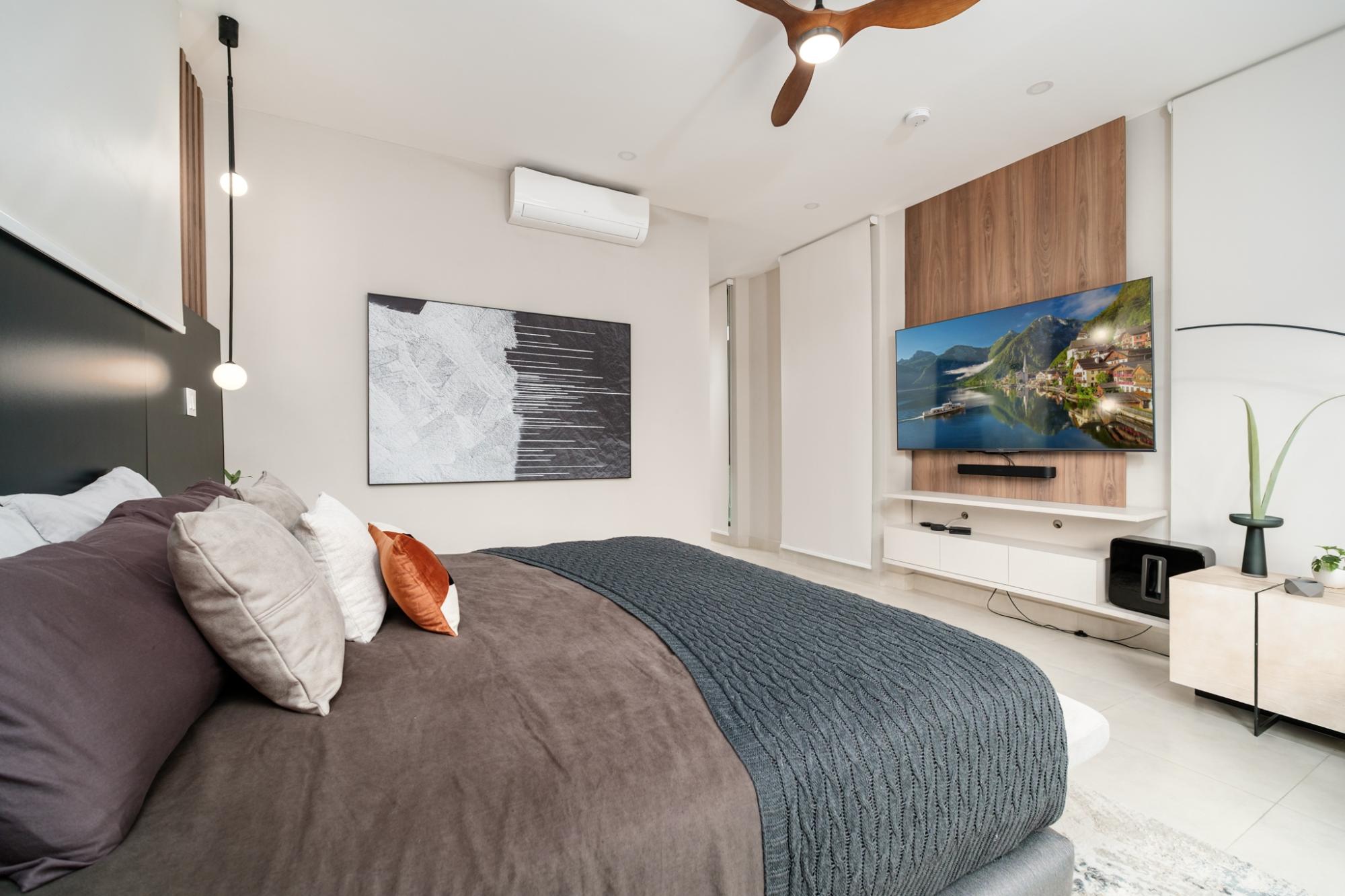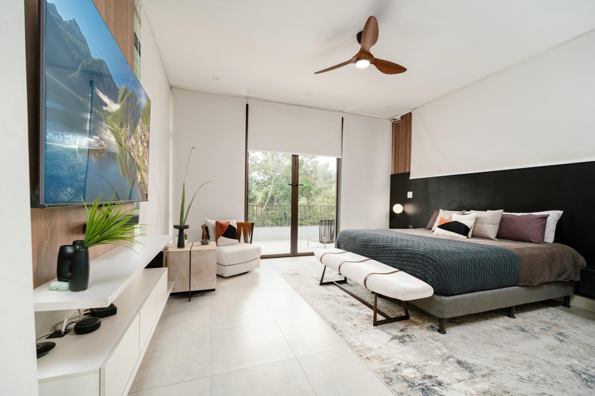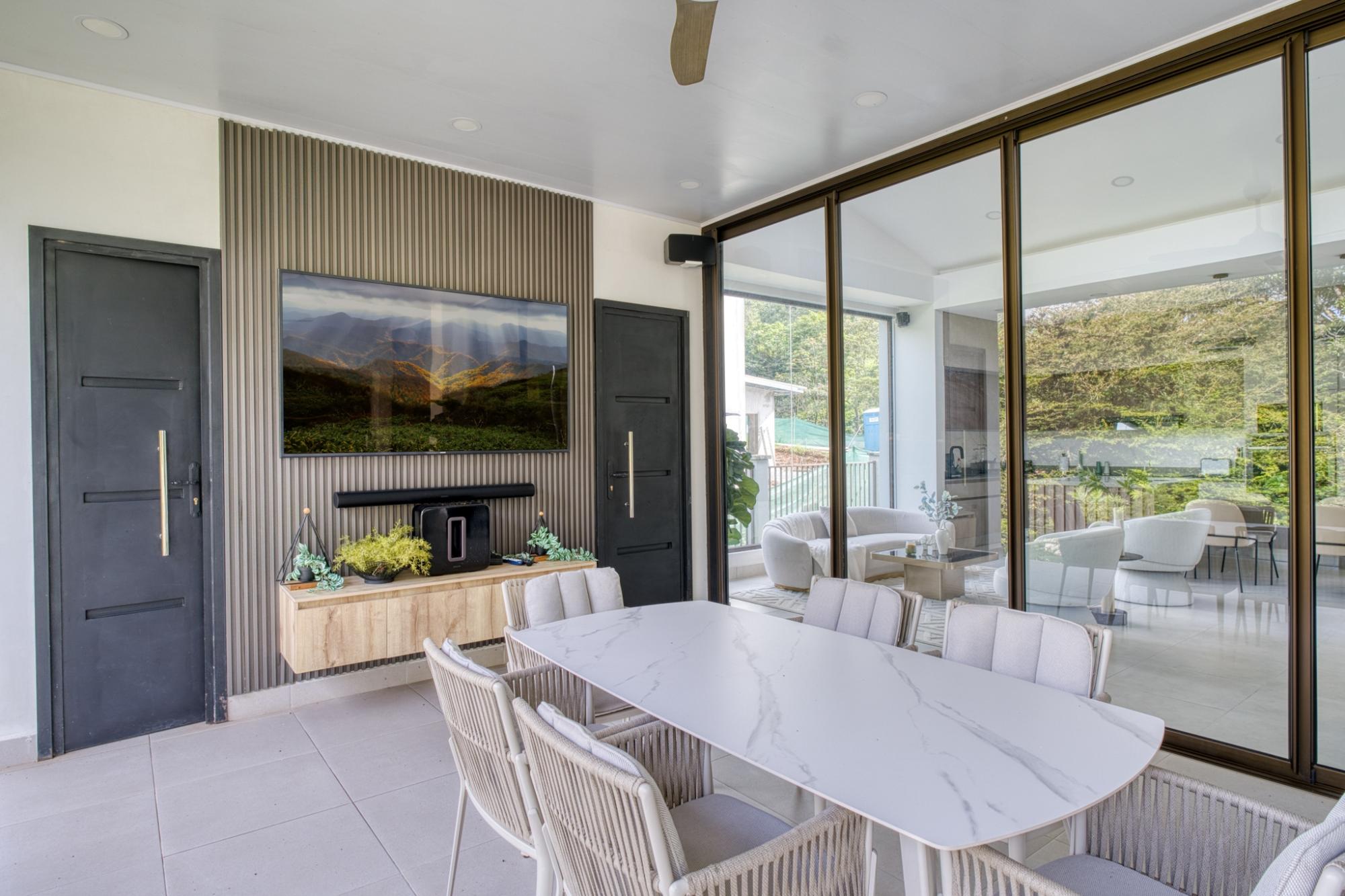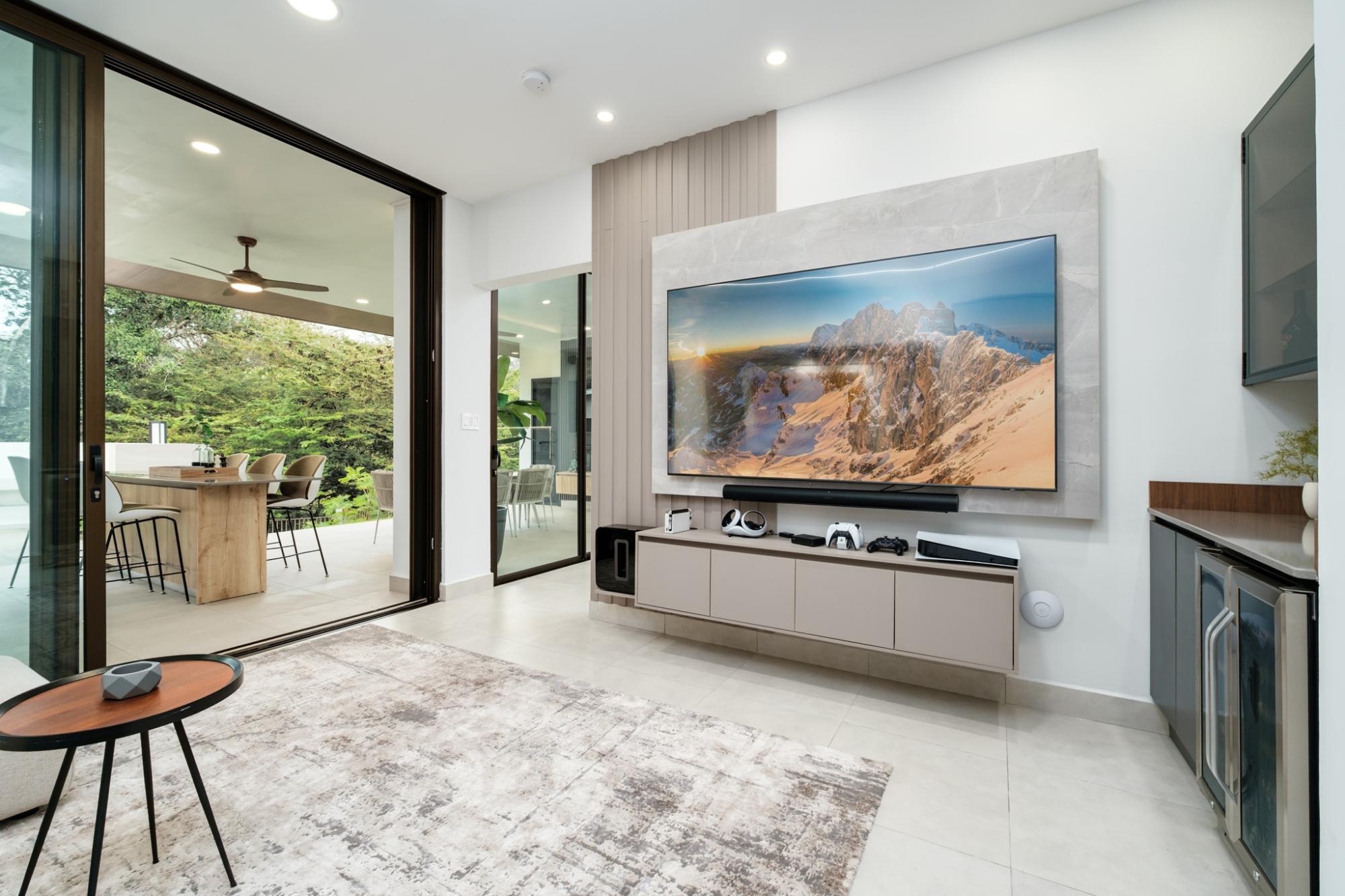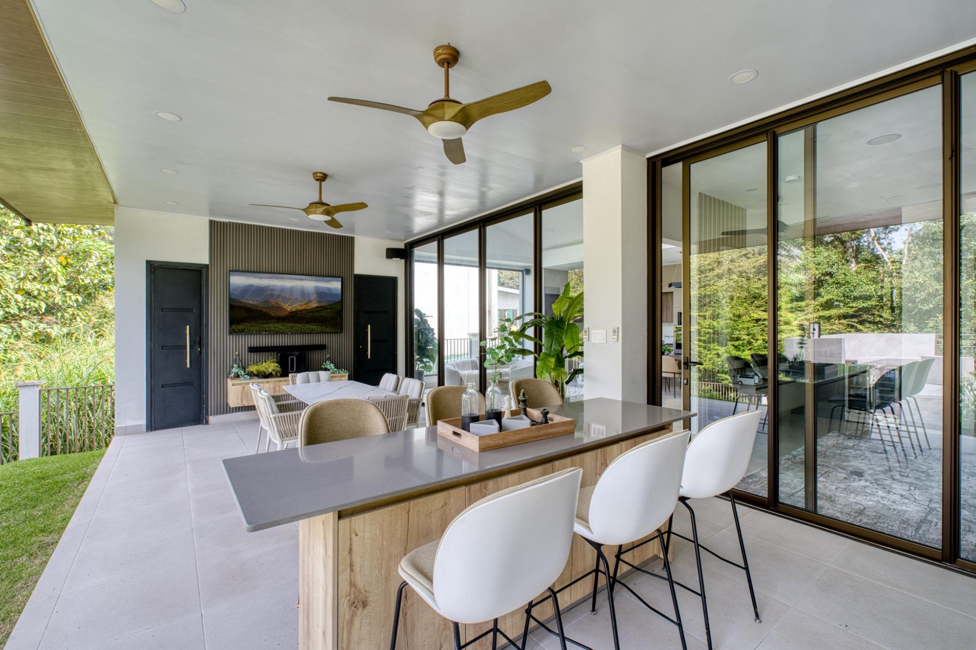 This stunning contemporary two-story home in Lucero Golf and Country Club showcases modern elegance and comfort. The main floor features a bright living room, a designer kitchen with Silestone countertops, custom cabinetry, breakfast bar, and top appliances. A stylish family room with built-ins and wine fridge opens to an impressive outdoor living area with kitchen, BBQ, wine cooler, and a cozy firepit seating area. Also on the main floor is a guest bedroom with ensuite bath, three half baths, and a spacious laundry room with storage. Upstairs offers a grand master suite with balcony overlooking the river, large walk-in closet, and luxurious bath, plus a third guest bedroom with ensuite. Fully furnished, professionally decorated, sprinkler system, two-car garage, and spectacular views.Features