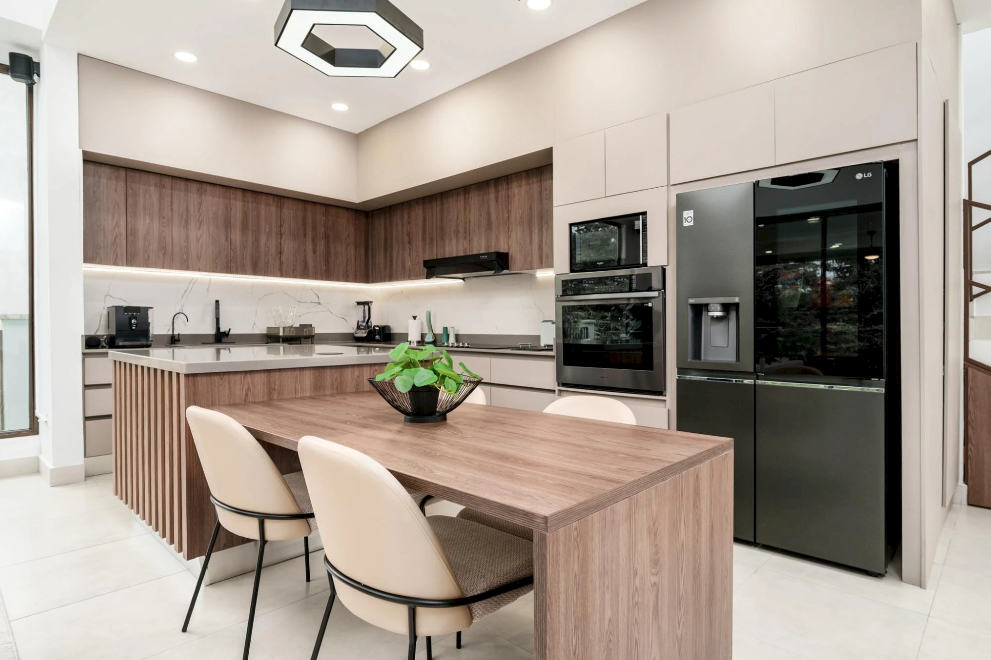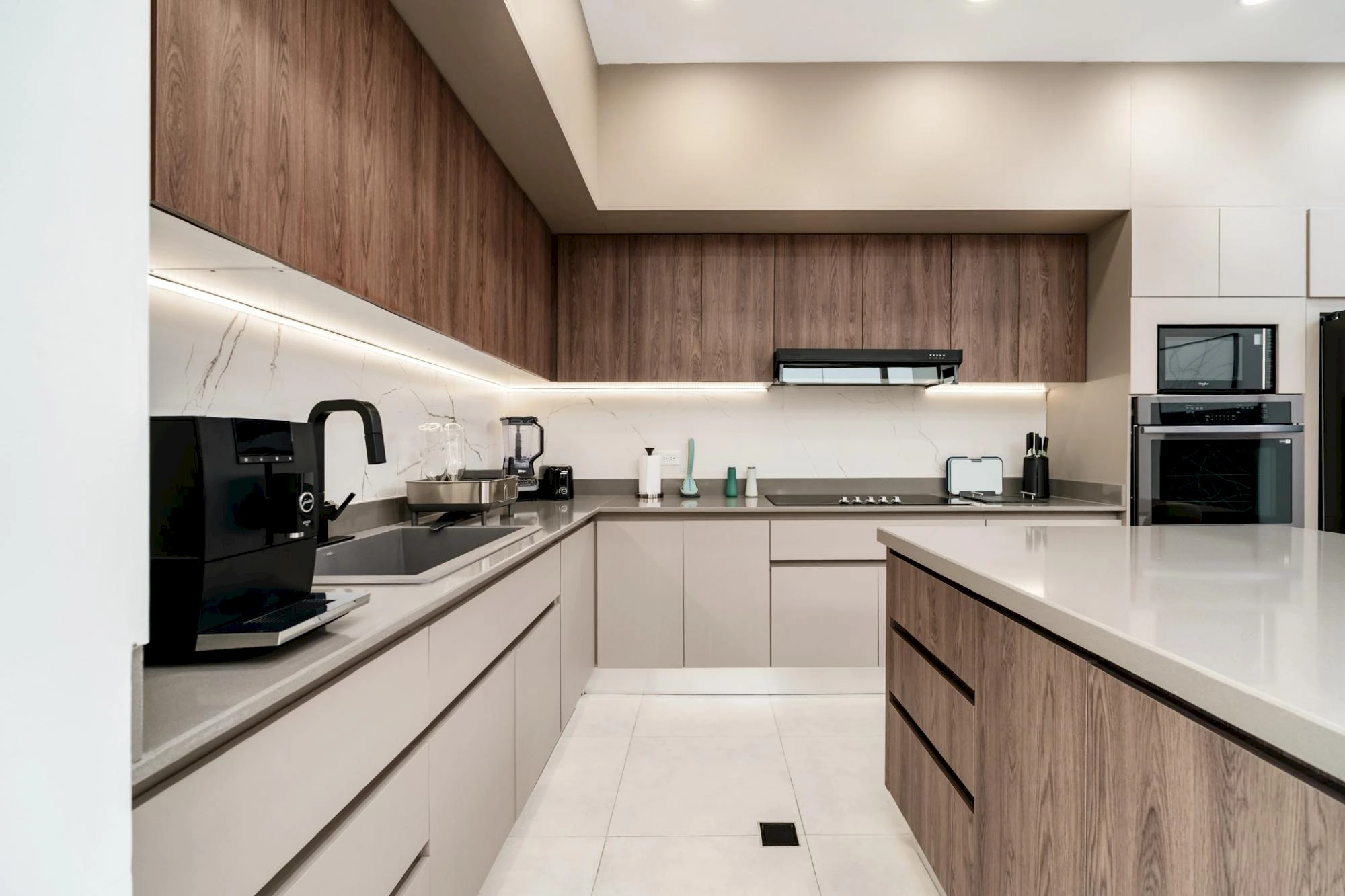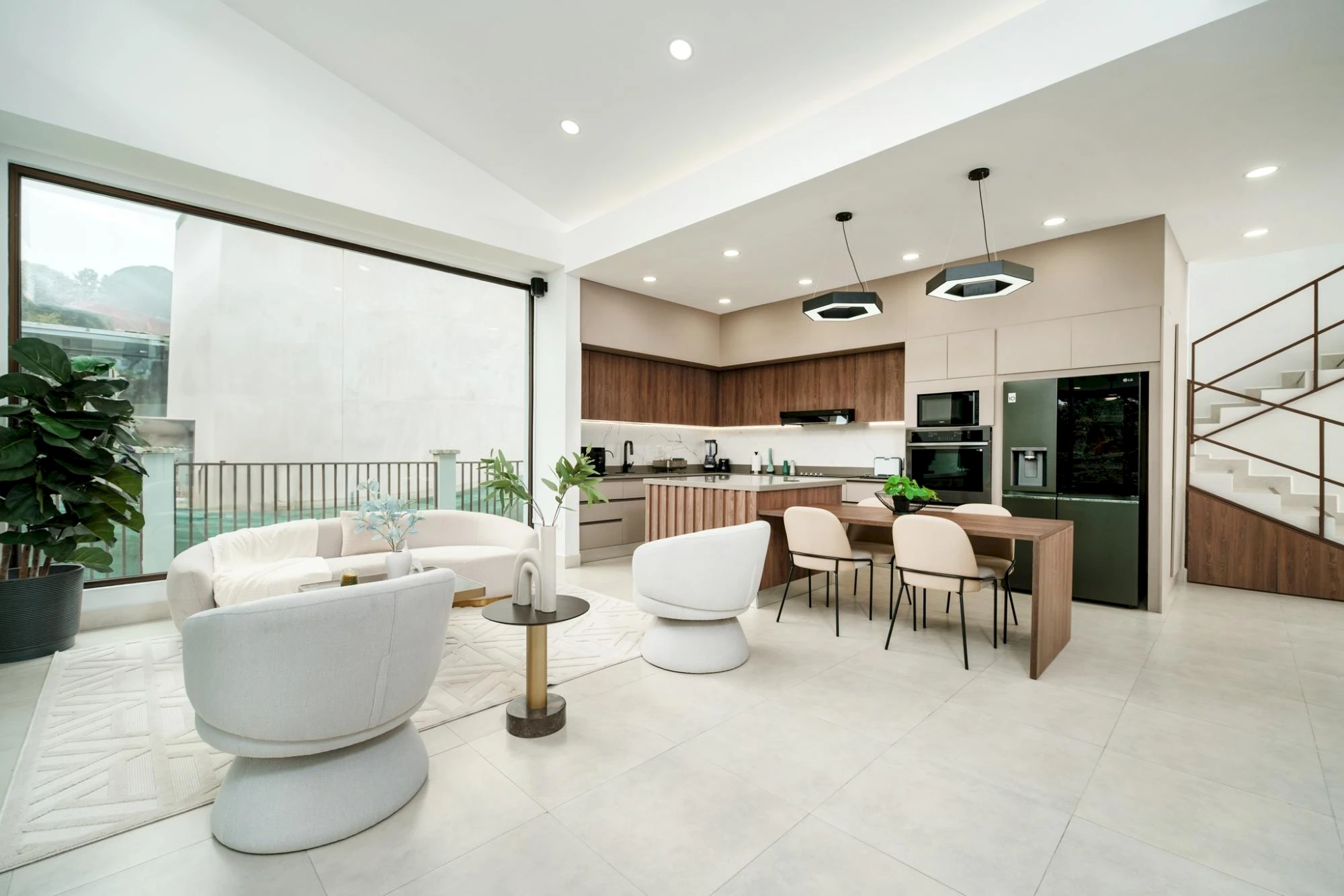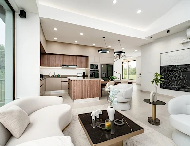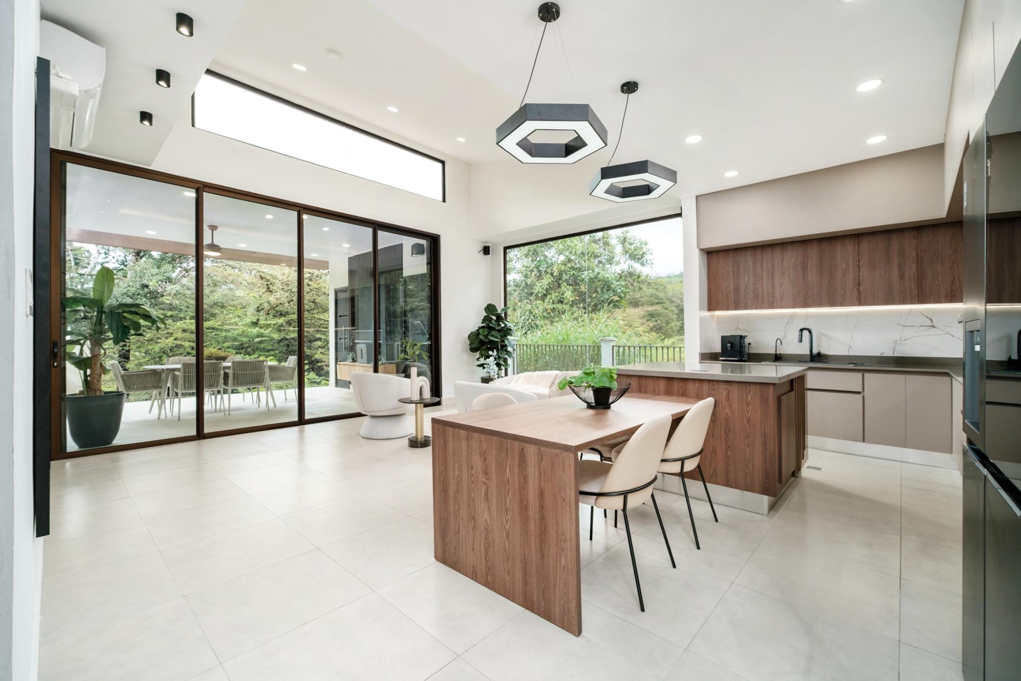 This stunning contemporary two-story home in Lucero Golf and Country Club showcases modern elegance and comfort. The main floor features a bright living room, a designer kitchen with Silestone countertops, custom cabinetry, breakfast bar, and top appliances. A stylish family room with built-ins and wine fridge opens to an impressive outdoor living area with kitchen, BBQ, wine cooler, and a cozy firepit seating area. Also on the main floor is a guest bedroom with ensuite bath, three half baths, and a spacious laundry room with storage. Upstairs offers a grand master suite with balcony overlooking the river, large walk-in closet, and luxurious bath, plus a third guest bedroom with ensuite. Fully furnished, professionally decorated, sprinkler system, two-car garage, and spectacular views.Features