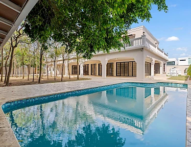 On a 2,022 m² lot and a 936 m² construction area, the property offers a functional and elegant design: 4 bedrooms, each with its own private bathroom and direct access to the terrace. A large living room, formal dining room, open-plan modern kitchen, private office, family den, and wine cellar are also featured. Two guest bathrooms are also included. A covered terrace is ideal for receptions or diplomatic events. A large landscaped courtyard offers space for social events and a private pool for the enjoyment or entertaining of guests. There are 5 indoor parking spaces. Two fully independent caretakers' cottages with kitchenettes and private bathrooms are also available. A laundry room and split-type air conditioning system are also available.Features