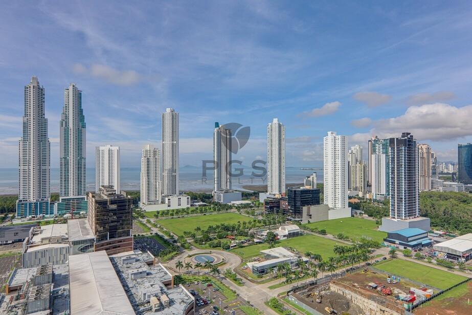Features of this stunning property: Large balcony and floor-to-ceiling windows with panoramic views of the Costa del Este skyline and the Pacific Ocean. Open-concept living, dining, and kitchen with energy-efficient central air conditioning. Enclosed den/study with pocket doors. Gourmet kitchen with top-of-the-line stainless steel appliances and quartz countertops. Separate wet bar with wine cellar and custom-made wine display. Master suite with luxurious dressing room, additional walk-in closet, and fully remodeled private bathroom. Two additional bedrooms with walk-in closets and remodeled private bathrooms. Maid's quarters with split-level air conditioning. Large laundry room with natural ventilation. Three assigned parking spaces on a ground floor. Shared use of a large storage room.Features
