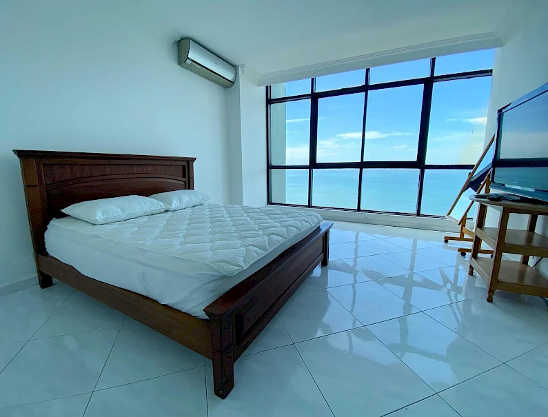 Located in the prestigious Miramar Plaza building on Avenida Balboa in Bella Vista, this exclusive apartment on the 52nd floor of Tower 2 is available for sale at $450,000 or for rent at $1,500 per month. It features 177 square meters of living space, two bedrooms, three bathrooms, and two parking spaces (furniture can be included for an additional fee). With panoramic views of the bay and the city skyline, it offers spacious rooms, high-quality finishes, and a functional layout that guarantees comfort and elegance. The building offers a swimming pool, gym, event rooms, 24/7 security, and private parking. Its strategic location, steps from the Cinta Costera (Coastal Strip) and surrounded by shops, restaurants, and recreational areas, makes it a unique opportunity to live or invest in one of Panama's most exclusive and rapidly appreciating neighborhoods. The apartment is on the 52nd floor, but the agent only goes up to the 50th floor, and from there, you must climb stairs to reach it. Sale price: USD $450,000 Rental price: USD $1,500 per monthFeatures