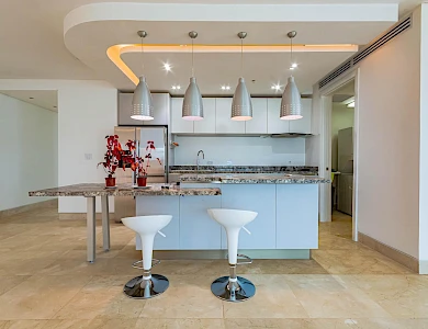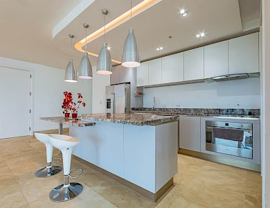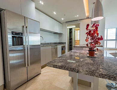 ABOUT THE APARTMENT This expansive 320 m² apartment in the prestigious Oceanaire building offers a blend of comfort and functionality. Featuring two generously sized bedrooms and three full bathrooms, the residence is designed for both relaxation and practicality. The inclusion of a maid’s quarters adds to the convenience, providing additional space for staff or storage. The apartment boasts a spacious balcony, perfect for enjoying the vibrant city views of Panama City. While the unit is unfurnished, it comes equipped with high-quality appliances, including a refrigerator, stove, oven, washer, and dryer, ensuring a seamless move-in experience. ABOUT THE BUILDING Oceanaire stands as a symbol of luxury in Punta Pacífica. This 48-story building, completed in 2011 by renowned developer Aleman Arias, offers residents an array of top-tier amenities: Two separate social areas: one on the ground level and another on the seventh floor Adult and children’s swimming pools Jacuzzi and solarium BBQ area and covered terrace with bar Fully equipped fitness center and gym Children’s playground and playroom Squash court and half basketball court Putting green, yoga, and tai chi terrace Sauna, events lounge, and gazebo Five high-speed elevators 24-hour security and surveillance Auxiliary generator and water tank Internet and cable-ready outlets Garbage chute on each floor Located in the heart of Punta Pacífica, residents enjoy proximity to high-end shopping centers, gourmet restaurants, and the renowned Punta Pacífica Hospital, affiliated with Johns Hopkins Medicine International.Features