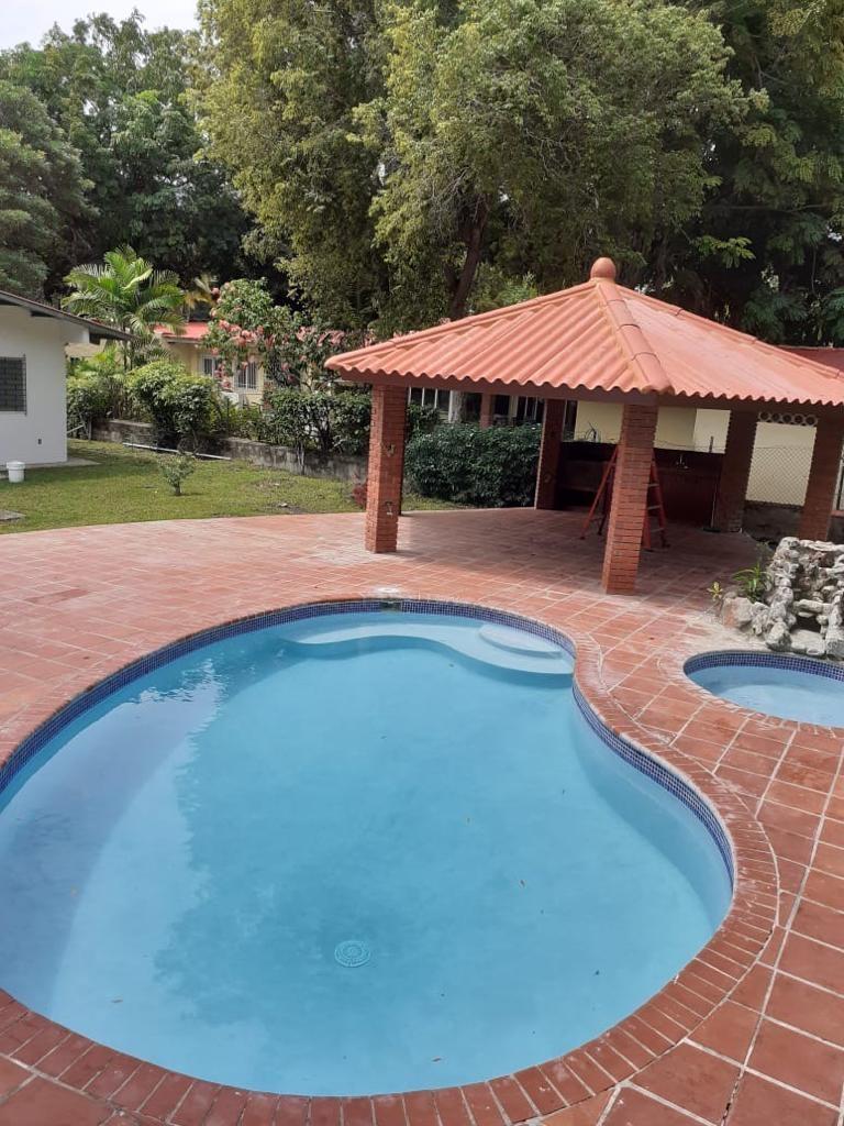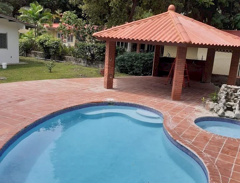 House for sale on the street parallel to the ocean. This house has 3 bedrooms and 3 bathrooms, a living room, dining room, and kitchen. A guest house in the garden has 1 bedroom and its own bathroom. It features a large lot with a garden, gazebo, and pool. This house has an excellent location facing the beach.Features