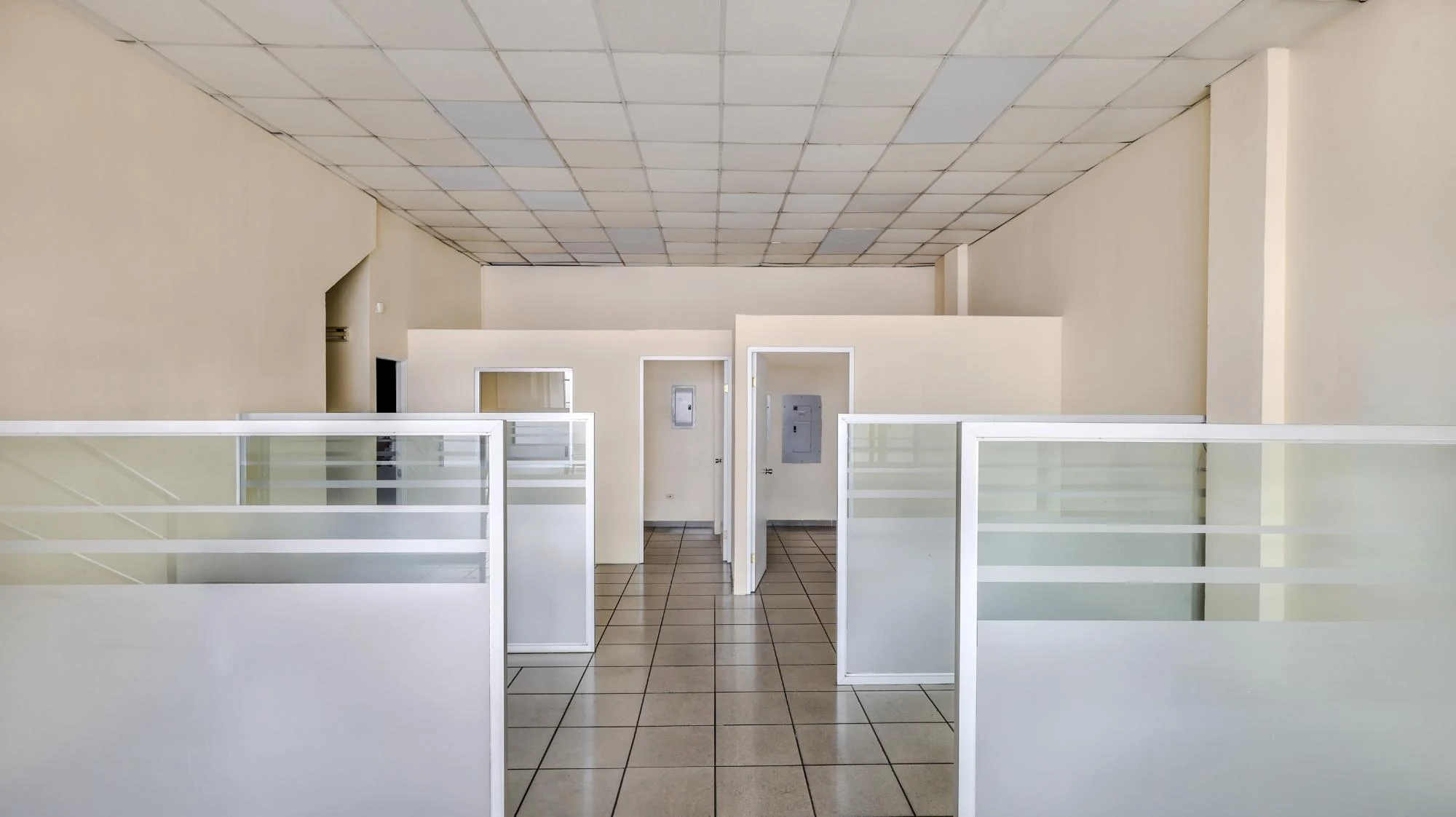 The premises have a mezzanine with a square footage of 125.95m2 and a ground floor of 125.92m2. The ground floor has a cubicle area, customer service area, 2 offices, half bathroom and 1 storage room. The mezzanine has a multipurpose area, cafeteria, half bathroom, 1 housing model with living room, dining room, kitchen, laundry room, 2 bedrooms and 1 bathroom.Features