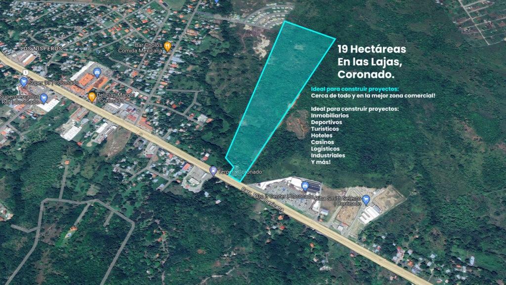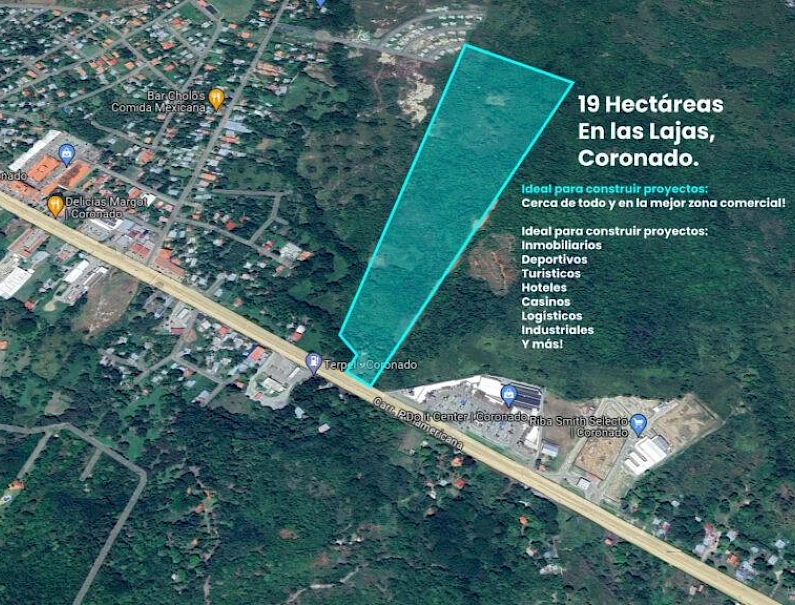 For sale: a spacious 19-hectare (12-acre) rectangular, flat lot with an excellent location on the Inter-American Highway, a major thoroughfare, just 2 minutes from the entrance to Coronado and only 10 minutes from the beach. The property boasts a strategic location next to Plaza Terrazas de Coronado and close to other shopping centers, supermarkets, well-known businesses, a gas station, resorts, hotels, and more—everything you need is within easy reach. Ideal for residential development, a gated community, or a tourism project. The lot features existing vegetation and some fruit trees. The frontage includes approximately 5,000 square meters (5,000 m²) of well-maintained land with a small house. It features: • 188,394.80 m2 • Strategic location facing the street, the Inter-American Highway and next to a major plaza • Direct access to the main road with easy connection to other areas • Flat surface • Completed entrance access • Water, electricity and sewage services already installed and functioning (in the front part) • The incorporation of a plot of land of about 600 m2 in the front area can be evaluated. Excellent opportunity for developers.Features