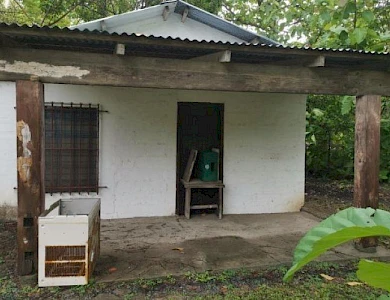Almost empty lot, except for a small house used as a caretaker. Built of blocks, with a zinc roof, clay floor, iron bars on the windows, and wooden doors. Uninhabitable.Features