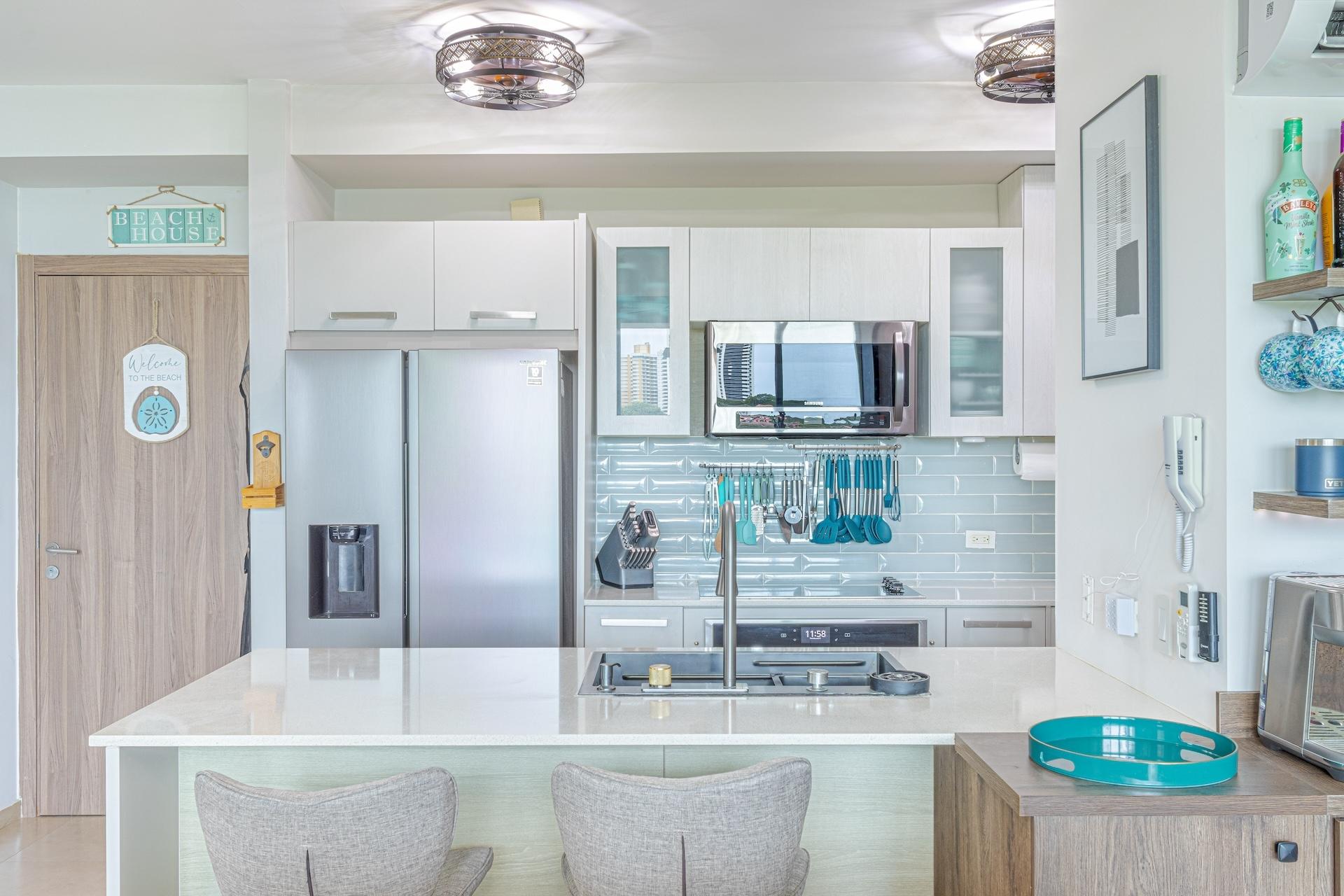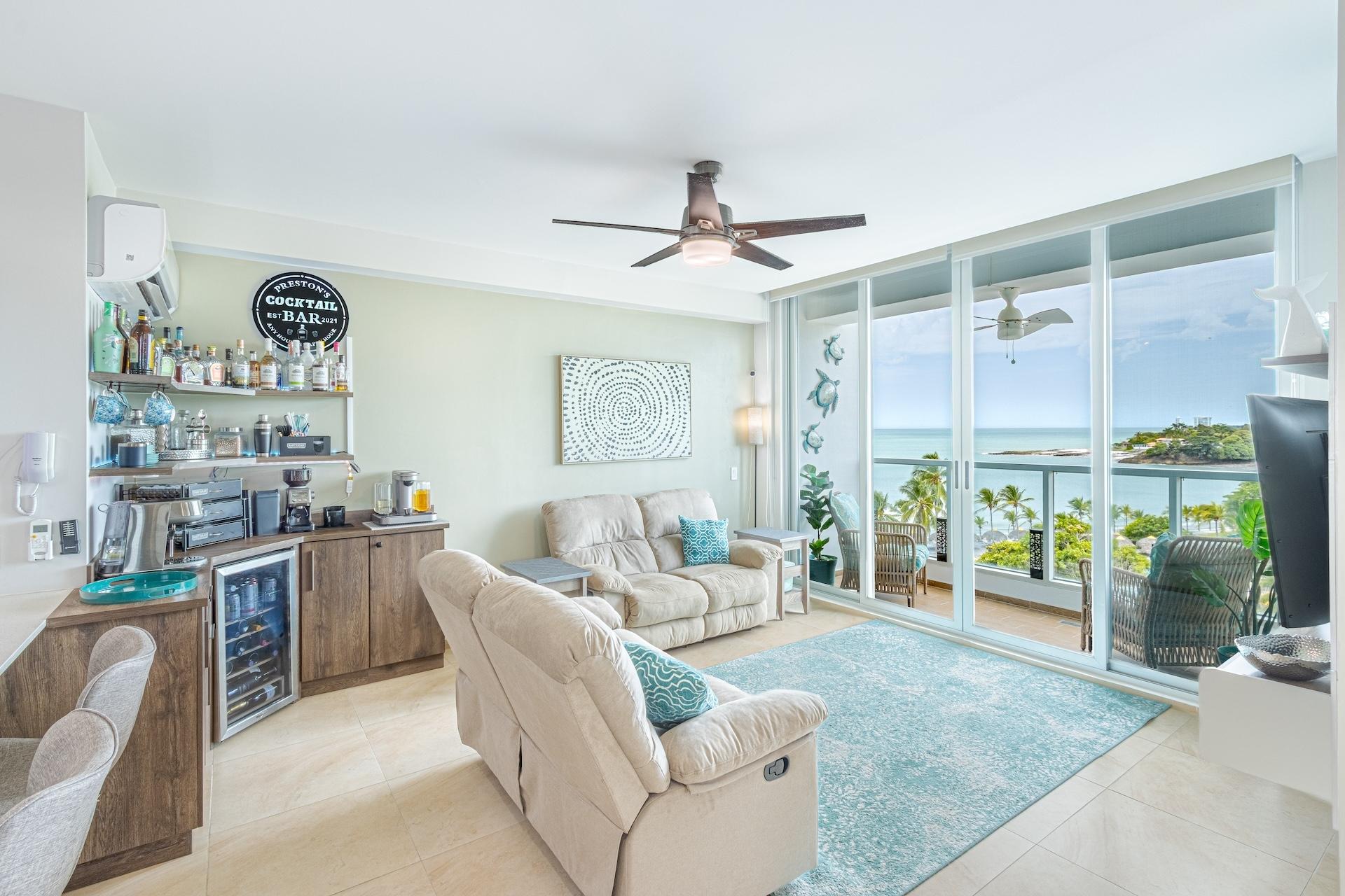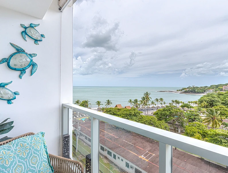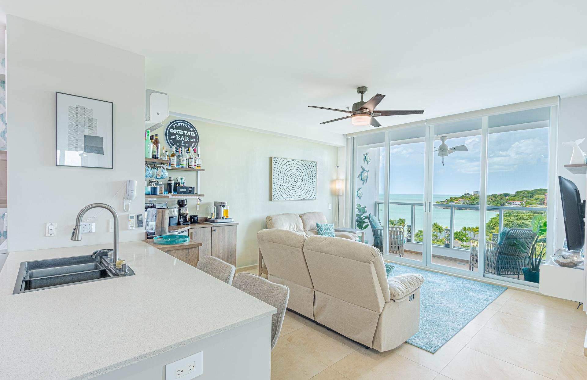 Thoughtfully renovated and fully furnished 2-bedroom end unit with custom upgrades, stunning views, and premium appliances—priced the same as standard units! This beautifully upgraded 2-bedroom beachfront condo in the sought-after Royal Palm building in Gorgona is a rare find—an end unit with extra natural light, stylish finishes, and sweeping ocean and mountain views from the coveted sunset side of the building. Unlike typical rental-grade units, this home was designed to live in, not to rent. The owners relocated here and furnished it with intention, comfort, and quality in mind. Enjoy custom cabinetry throughout, a built-in bar in the living area, high-end appliances, and WiFi-enabled inverter A/C units in every room. The kitchen has been expanded with added storage and upgraded appliances, and the second bedroom offers smart built-ins that make it perfect as a guest room, office, or multipurpose space. Relax on your private balcony and watch the sun set behind the mountains while listening to the sound of the waves and sipping your favorite beverage—this is coastal living at its best. As a highly desirable end unit, you’ll enjoy added privacy, an extra window in both the guest bedroom and bathroom, and more natural light—a major bonus in smaller floor plans. Located in a well-maintained, amenity-rich beachfront building with swimmable beach access, multiple pools, gym, social areas, and a vibrant onsite community, this unit is truly turnkey and priced to sell—offered at the same price as other units without upgrades. Don't miss the opportunity to own one of the best-located and best-valued units in Royal Palm!Features