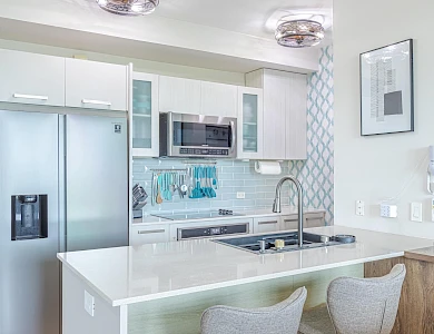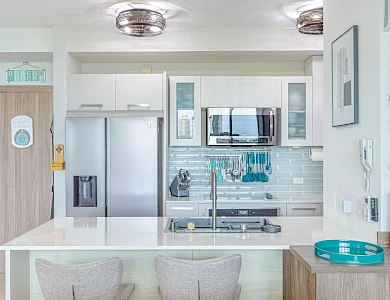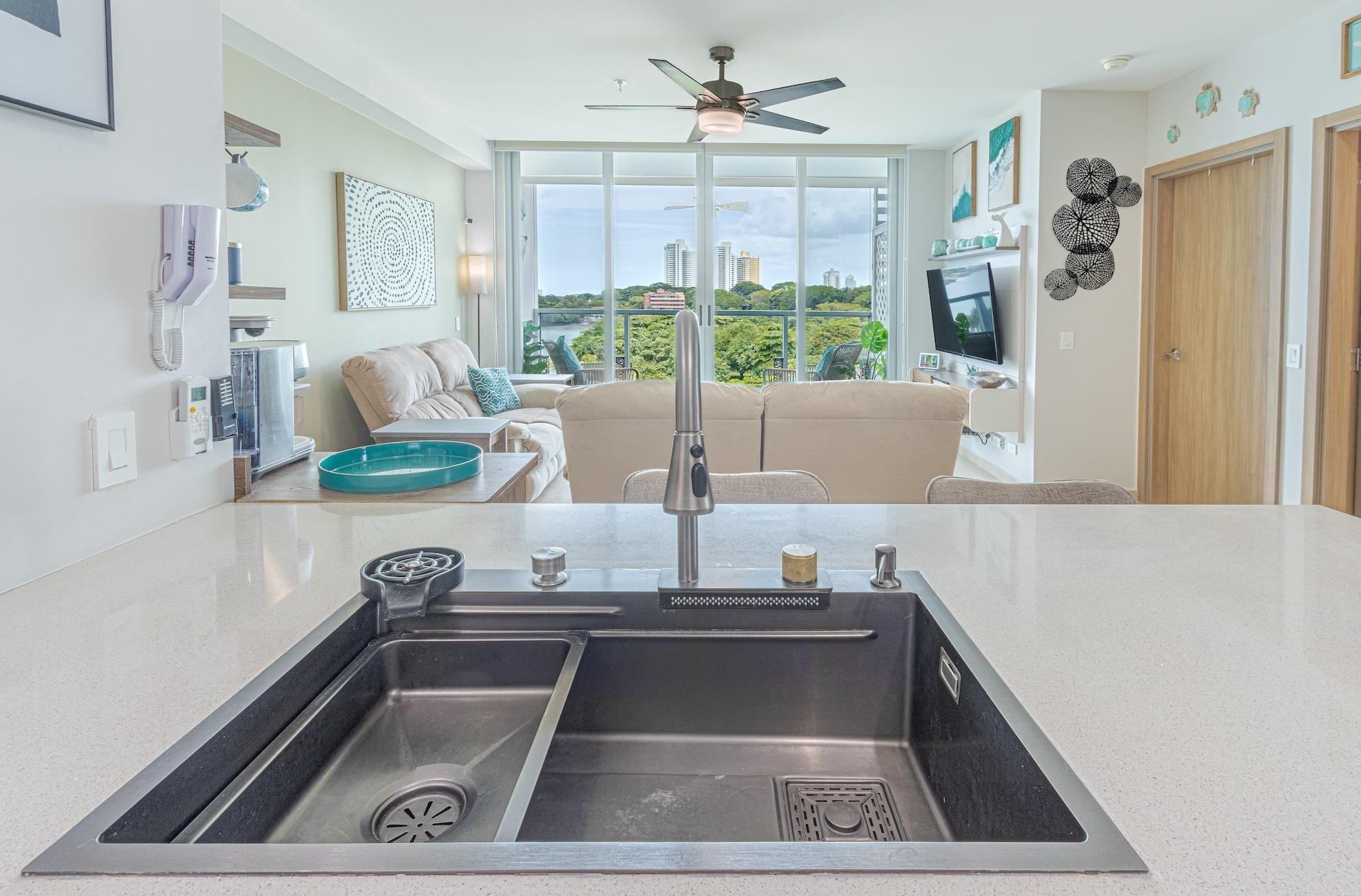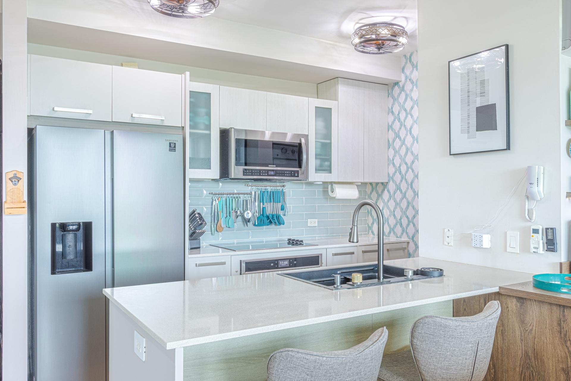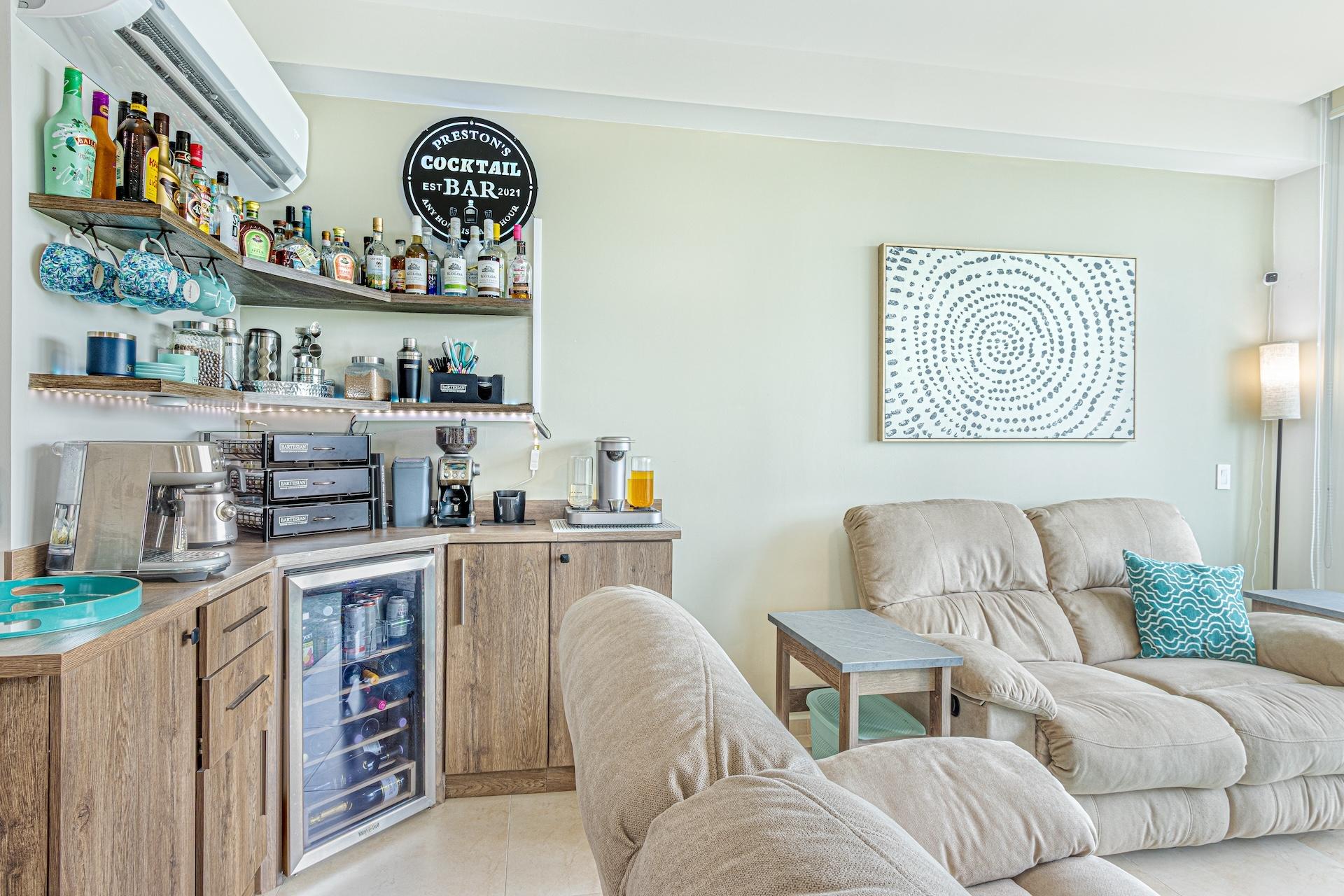Thoughtfully renovated and fully furnished 2-bedroom end unit with custom upgrades, stunning views, and premium appliances—priced the same as standard units! This beautifully upgraded 2-bedroom beachfront condo in the sought-after Royal Palm building in Gorgona is a rare find—an end unit with extra natural light, stylish finishes, and sweeping ocean and mountain views from the coveted sunset side of the building. Unlike typical rental-grade units, this home was designed to live in, not to rent. The owners relocated here and furnished it with intention, comfort, and quality in mind. Enjoy custom cabinetry throughout, a built-in bar in the living area, high-end appliances, and WiFi-enabled inverter A/C units in every room. The kitchen has been expanded with added storage and upgraded appliances, and the second bedroom offers smart built-ins that make it perfect as a guest room, office, or multipurpose space. Relax on your private balcony and watch the sun set behind the mountains while listening to the sound of the waves and sipping your favorite beverage—this is coastal living at its best. As a highly desirable end unit, you’ll enjoy added privacy, an extra window in both the guest bedroom and bathroom, and more natural light—a major bonus in smaller floor plans. Located in a well-maintained, amenity-rich beachfront building with swimmable beach access, multiple pools, gym, social areas, and a vibrant onsite community, this unit is truly turnkey and priced to sell—offered at the same price as other units without upgrades. Don't miss the opportunity to own one of the best-located and best-valued units in Royal Palm!Features