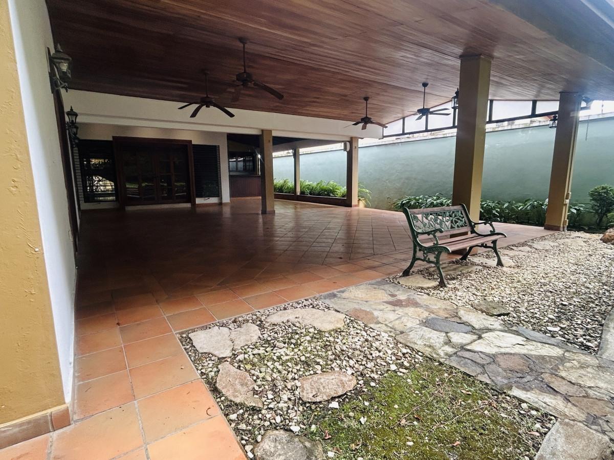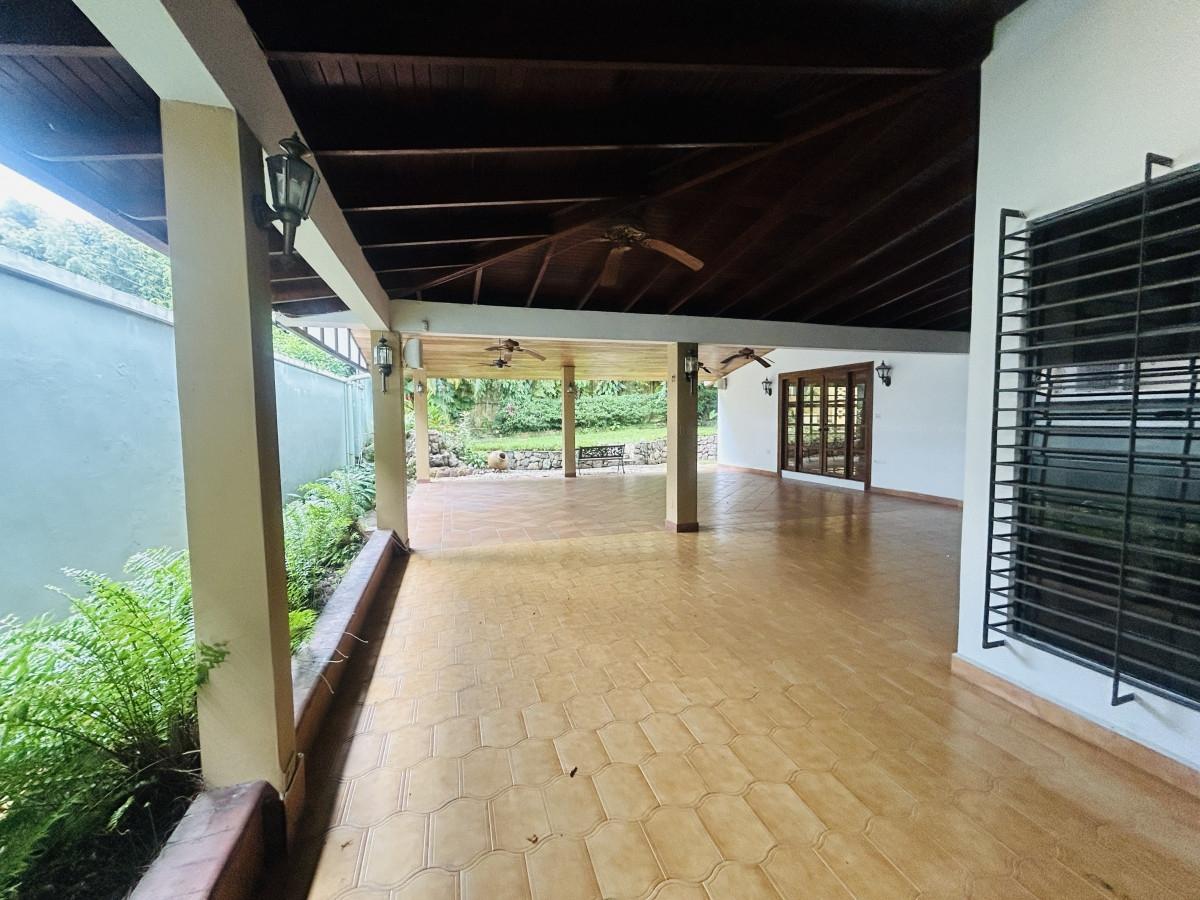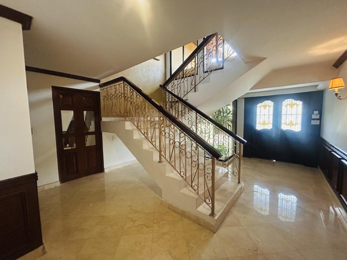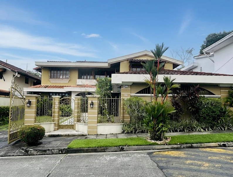 Living in La Alameda means enjoying a well-established residential area with high added value, where family life and urban comfort meet in one place. Surrounded by nature, wide streets, and elegant residences. A serene setting that invites you to walk, exercise, or simply relax. This residence is spread over two floors. The ground floor consists of a foyer, living room, dining room, kitchen, family room, study, guest bathroom, service bedroom and bathroom, laundry room, a large terrace with a bar, and four parking spaces and storage. The upper floor features three bedrooms, each with its own full bathroom, a den, and a balcony where you can enjoy nature. Outside, at the rear of the residence, you will find an annex with a bedroom and full bathroom, and a storage room. There is also a pump room for controlled watering of your plants. The residence features various finishes, including marble and granite floors, wood structures and a tongue-and-groove ceiling, and a gypsum ceiling in the family room. This exclusive neighborhood offers the perfect combination of exclusivity, tranquility, and a strategic location in Panama City.Features