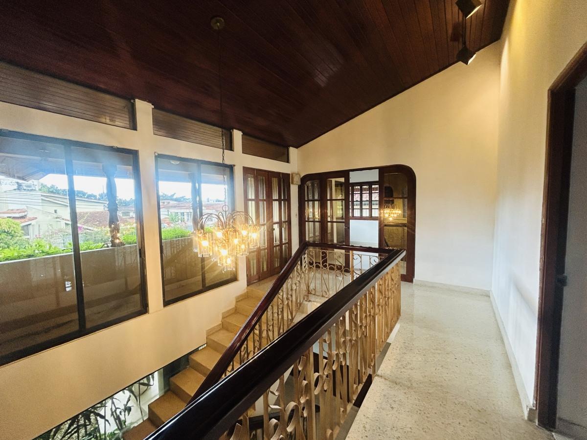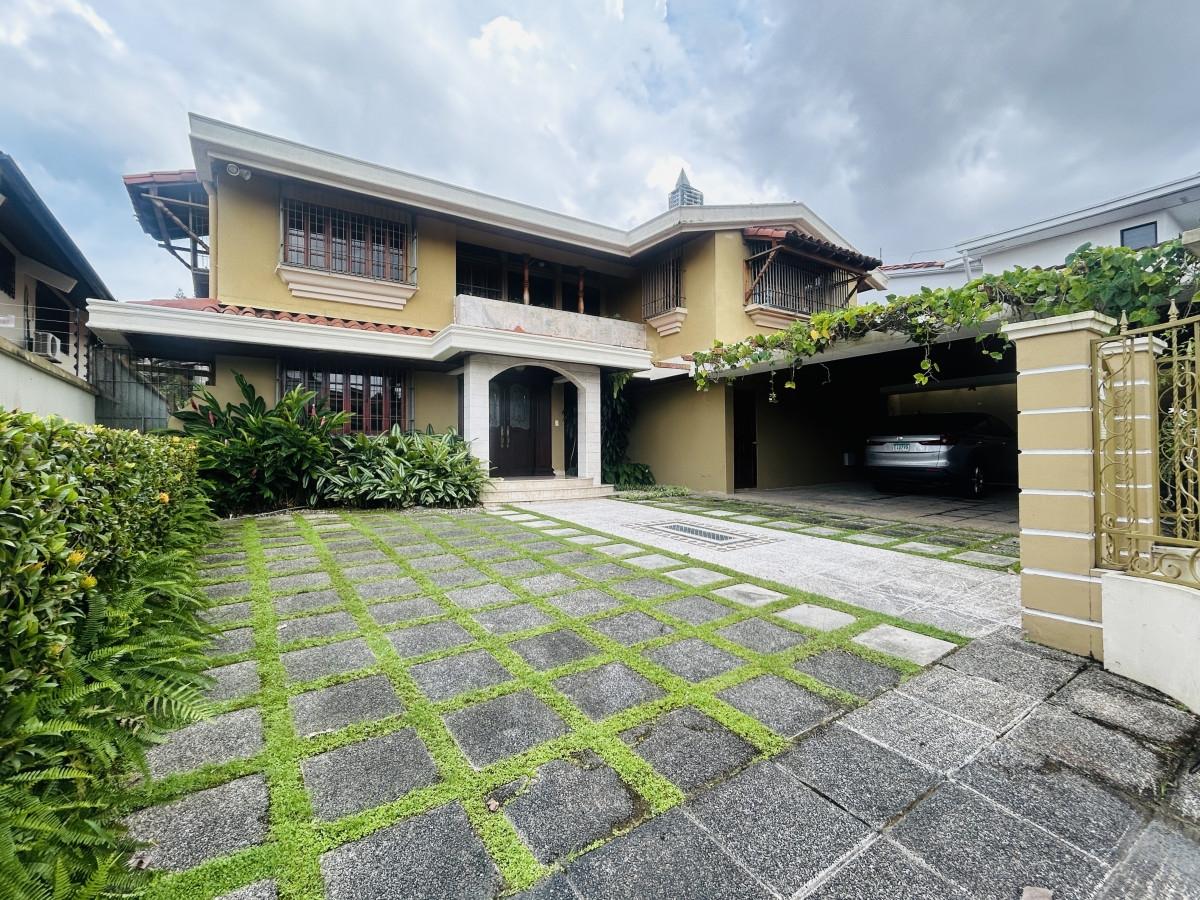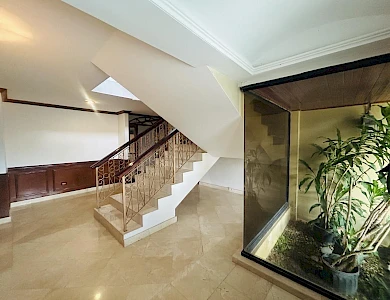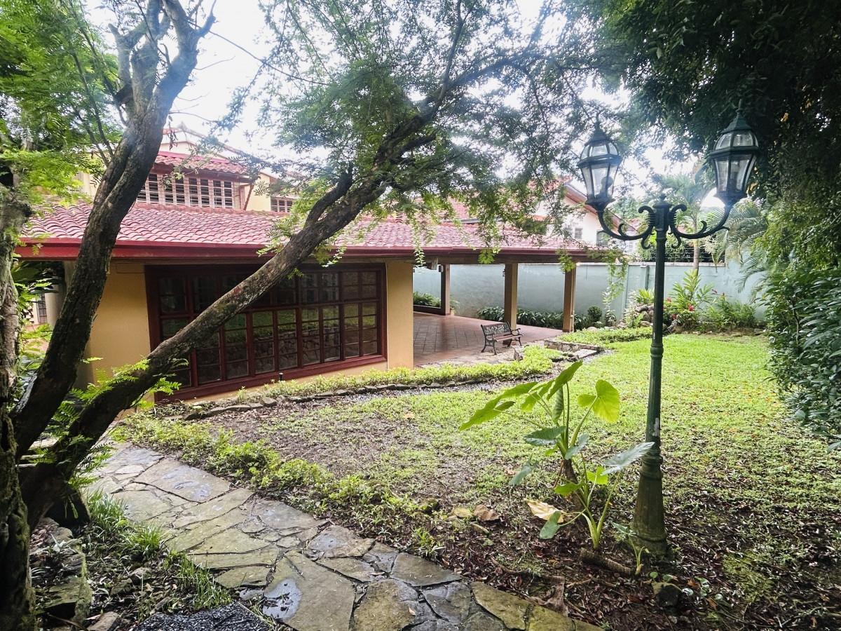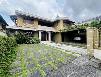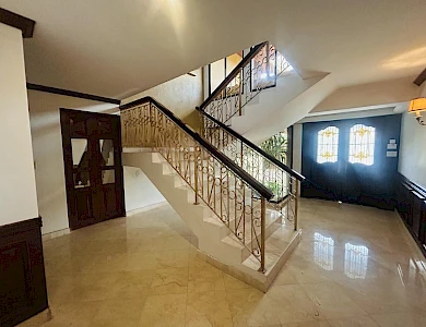 Living in La Alameda means enjoying a well-established residential area with high added value, where family life and urban comfort meet in one place. Surrounded by nature, wide streets, and elegant residences. A serene setting that invites you to walk, exercise, or simply relax. This residence is spread over two floors. The ground floor consists of a foyer, living room, dining room, kitchen, family room, study, guest bathroom, service bedroom and bathroom, laundry room, a large terrace with a bar, and four parking spaces and storage. The upper floor features three bedrooms, each with its own full bathroom, a den, and a balcony where you can enjoy nature. Outside, at the rear of the residence, you will find an annex with a bedroom and full bathroom, and a storage room. There is also a pump room for controlled watering of your plants. The residence features various finishes, including marble and granite floors, wood structures and a tongue-and-groove ceiling, and a gypsum ceiling in the family room. This exclusive neighborhood offers the perfect combination of exclusivity, tranquility, and a strategic location in Panama City.Features
