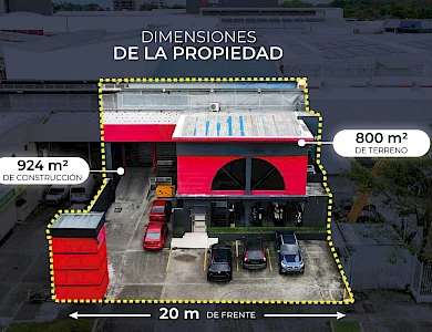 It consists of a rectangular plot of land with mostly flat topography, built in its entirety. It has 20 meters of front and 40 meters of depth. Its building type gallery, has a reception area, customer service area, offices and a battery of bathrooms. In its front part it has an open parking area, with a reinforced concrete floor. On the upper floor, whose access is through a concrete staircase, we find offices and a cubicle area, 2 restrooms for ladies and gentlemen with imported sanitary ware and a mechanical fan. The gallery built with a reinforced concrete floor measures approx. 540.70 m2 and includes a cafeteria area and a meeting and cubicle office. Among other improvements, it includes a loading and unloading area.Features