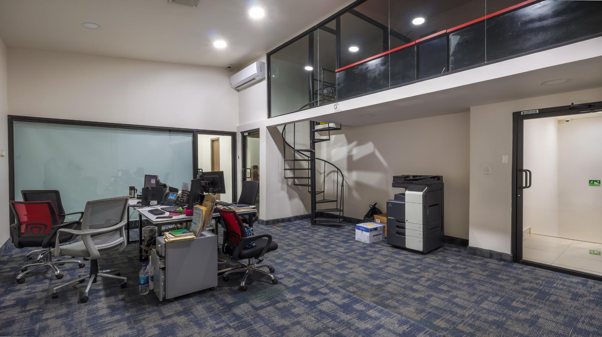 It consists of a rectangular plot of land with mostly flat topography, built in its entirety. It has 20 meters of front and 40 meters of depth. Its building type gallery, has a reception area, customer service area, offices and a battery of bathrooms. In its front part it has an open parking area, with a reinforced concrete floor. On the upper floor, whose access is through a concrete staircase, we find offices and a cubicle area, 2 restrooms for ladies and gentlemen with imported sanitary ware and a mechanical fan. The gallery built with a reinforced concrete floor measures approx. 540.70 m2 and includes a cafeteria area and a meeting and cubicle office. Among other improvements, it includes a loading and unloading area.Features
