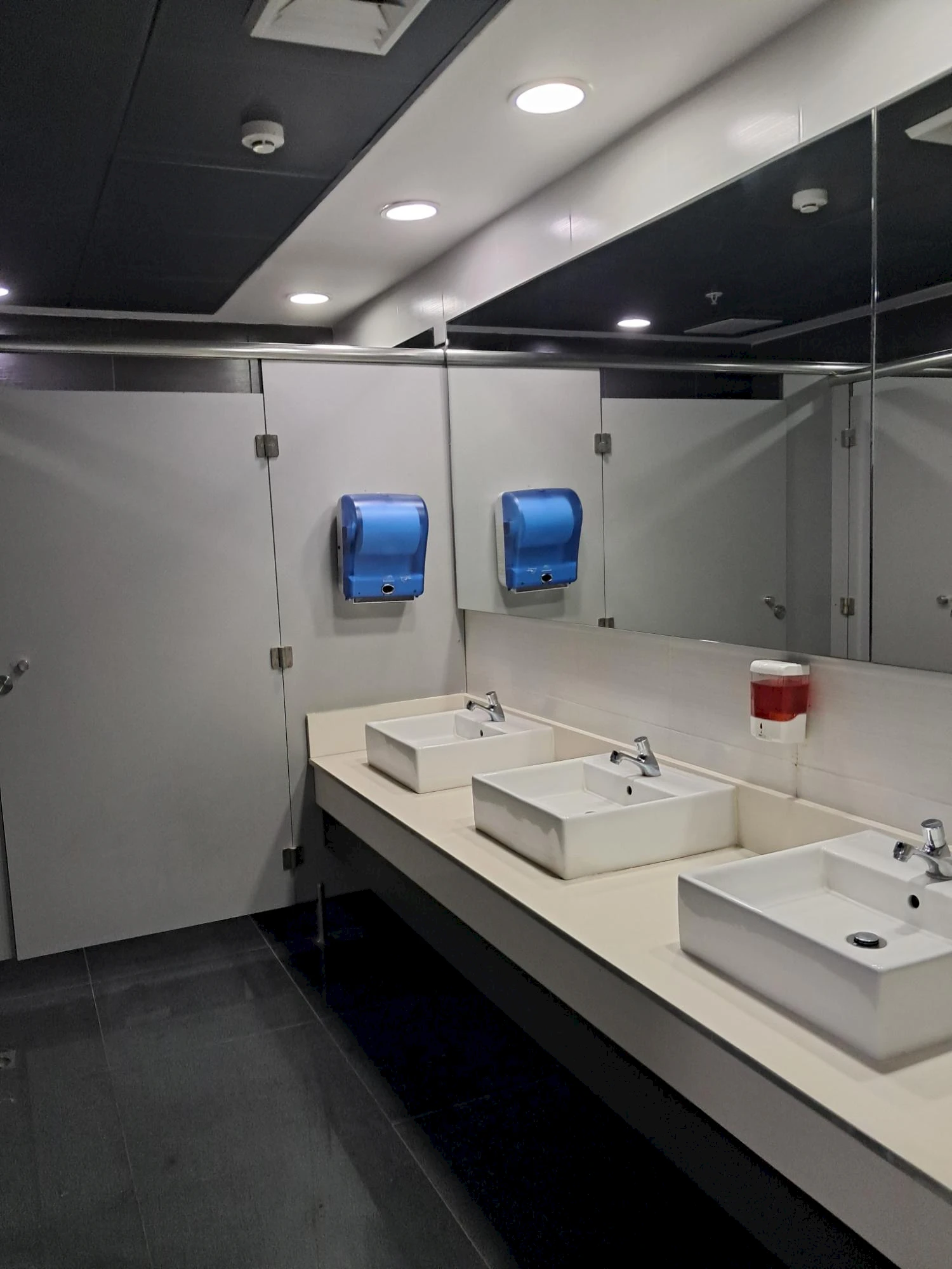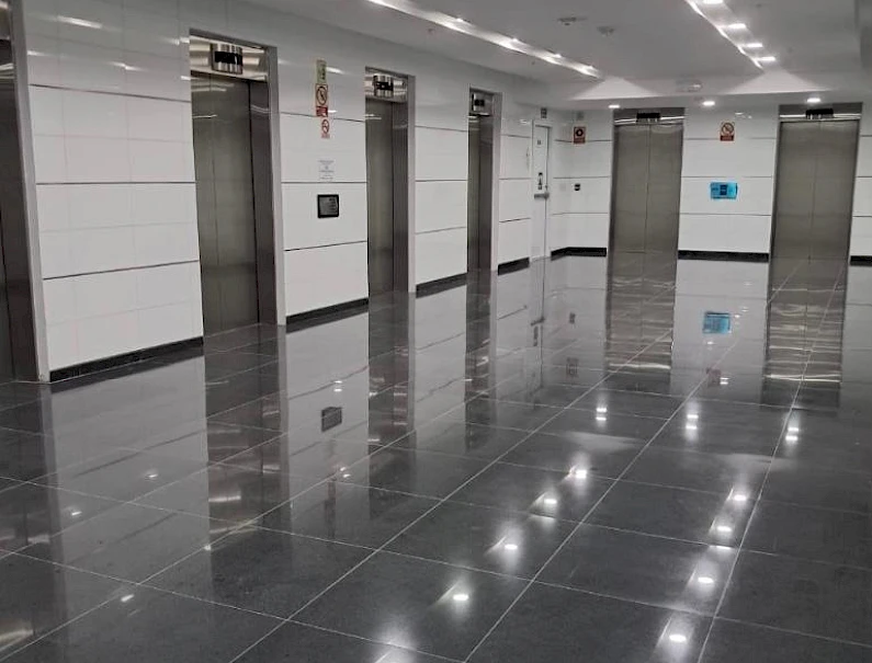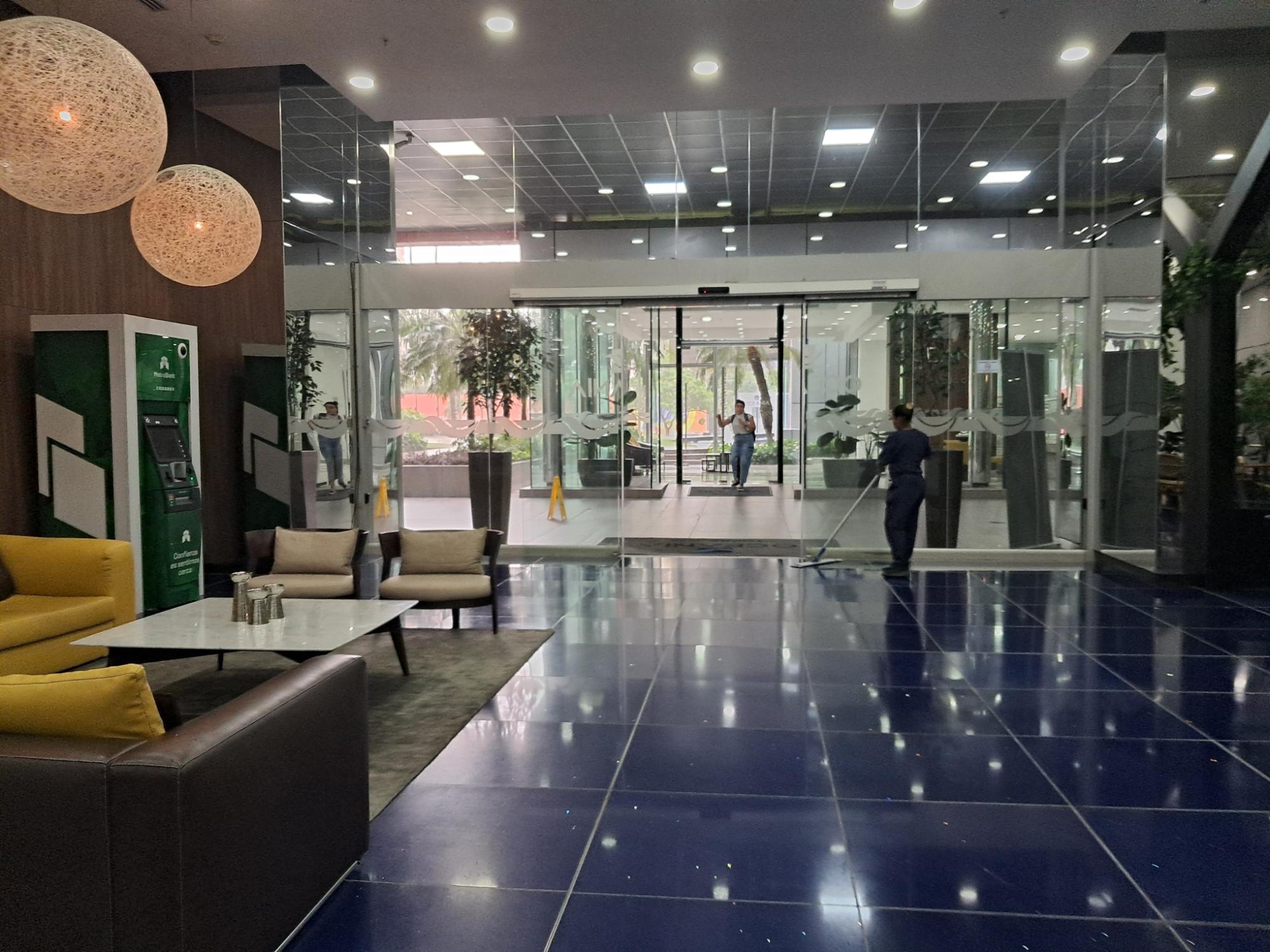 Two adjacent corner offices, each measuring 419 m², boast finishes including light fixtures, porcelain tile floors, a kitchen, two central air conditioners, a bathroom, seven parking spaces, good natural lighting, excellent views from all areas, and are in very good condition. Each floor has 10 high-speed elevators, men's and women's restrooms, visitor parking, restaurants, shopping centers, and banks, all within easy reach.Features